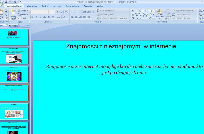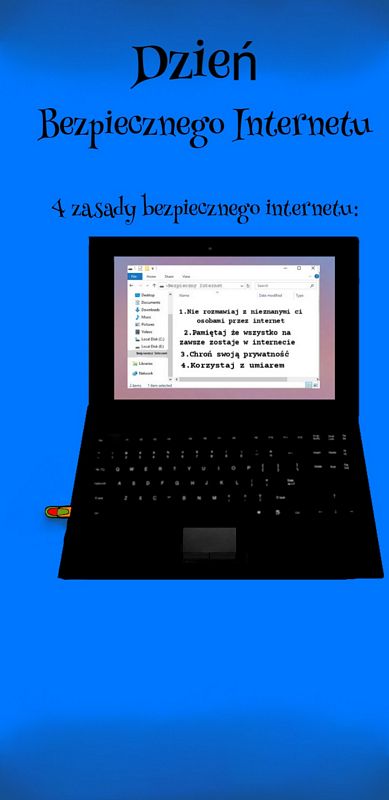 Dzień Bezpiecznego Internetu jest obchodzony w całej Europie w pierwszej połowie lutego. Został ustanowiony z inicjatywy Komisji Europejskiej, aby zwrócić uwagę na kwestię bezpiecznego dostępu dzieci i młodzieży do zasobów internetowych. W tym roku Dzień Bezpiecznego Internetu obchodzony był 9 lutego. Nasza szkoła również włączyła się w tę ważną akcję. Na lekcjach wychowawczych oraz informatyce odbyły się pogadanki, zostały zaprezentowane filmiki i animacje związane z tematyką bezpieczeństwa w sieci. Uczniowie wszystkich klas chętnie włączyli się w tę akcję. Powstało wiele prac, w których uchwycili najważniejsze zasady bezpiecznego korzystania z Internetu. Uczniowie klasy II a oraz III wykonali plakaty w tradycyjnej formie, a uczniowie klas IV–VIII plakaty w programie Paint i Gimp, prezentacje multimedialne oraz animacje w programie Scratch.