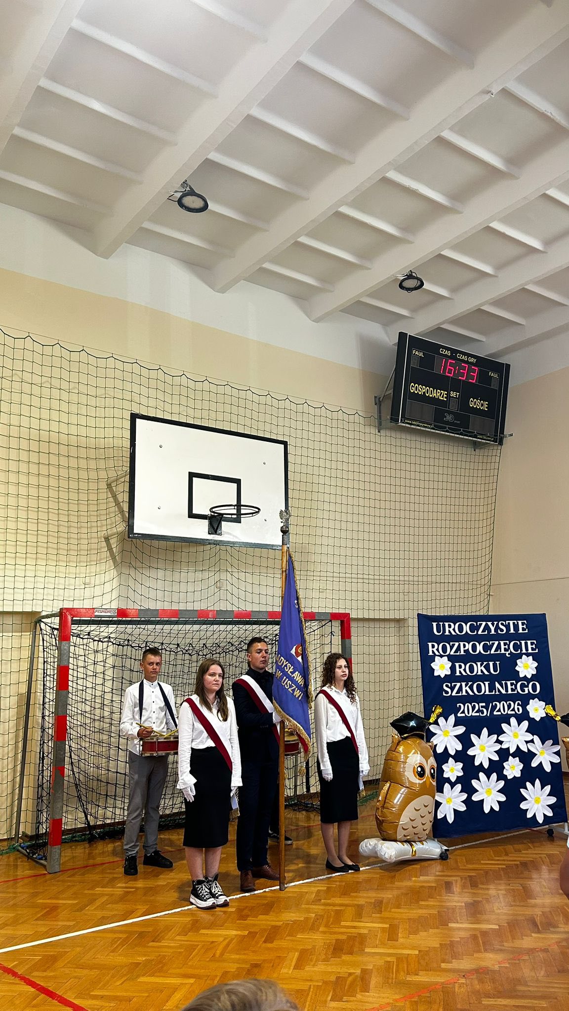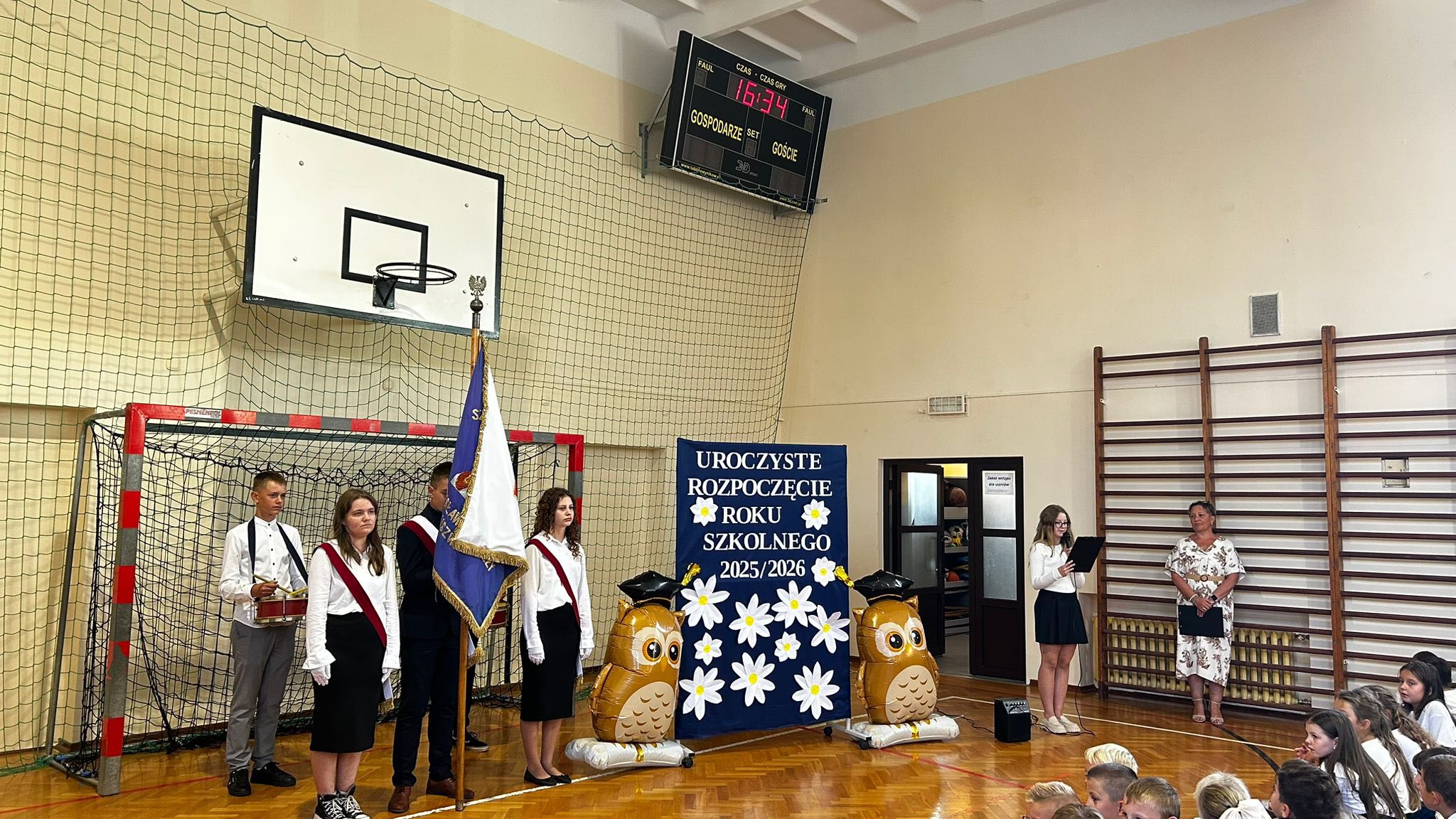 Nowy rok szkolny rozpoczęliśmy od udziału we Mszy św. sprawowanej w naszym parafialnym kościele. Następnie społeczność szkoły zgromadziła się na sali gimnastycznej. Po wprowadzeniu sztandaru i odśpiewaniu hymnu państwowego uczciliśmy chwilą ciszy ofiary II wojny światowej w 86. rocznicę jej wybuchu. Następnie Pani Dyrektor Lukrecja Chochlińska przekazała najważniejsze informacje dotyczące organizacji pracy szkoły oraz życzyła wielu sukcesów – uczniom w nauce, a pedagogom w pracy. Po zakończeniu uroczystości inauguracyjnej uczniowie poszczególnych klas spotkali się z wychowawcami.
