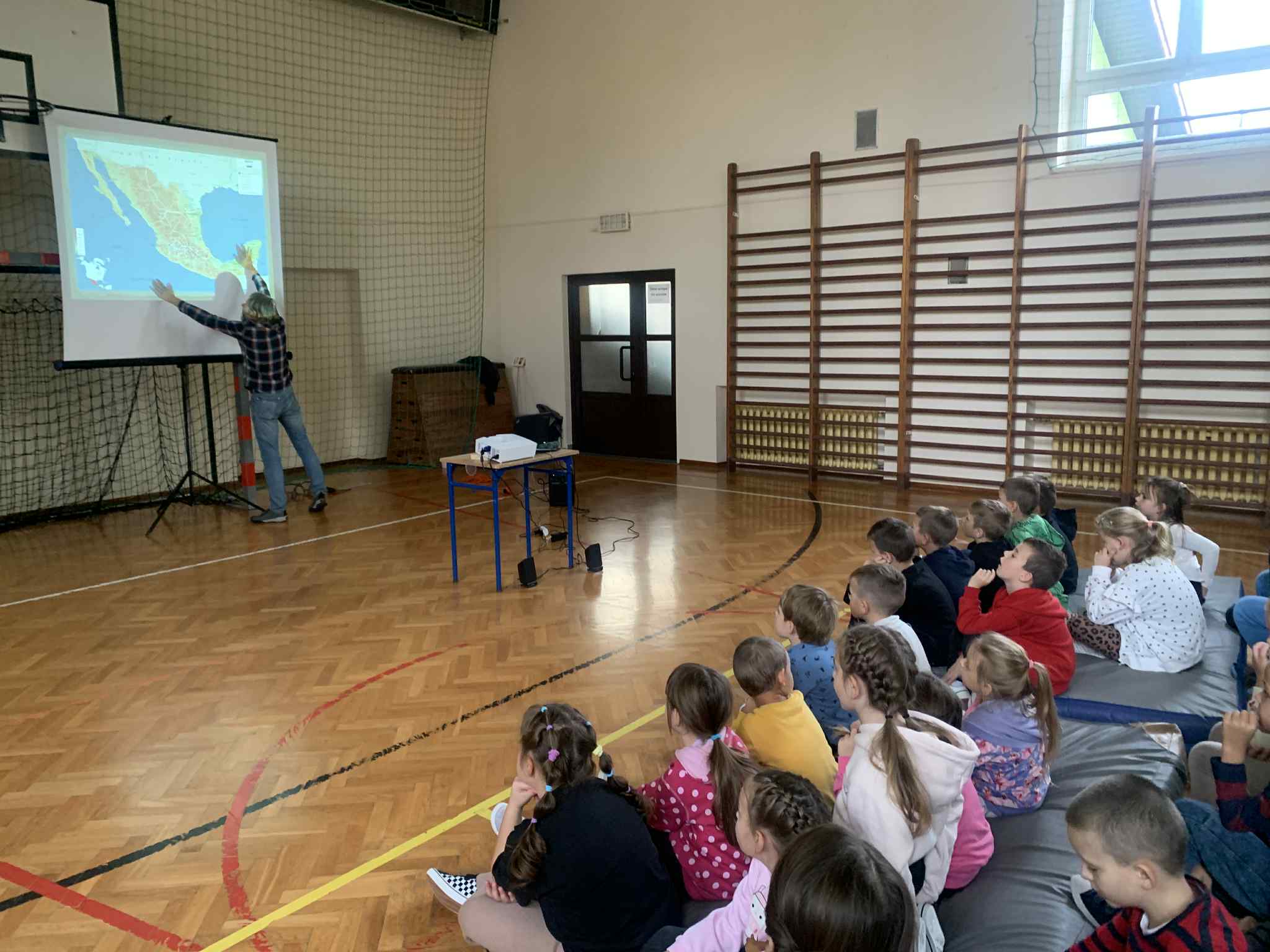 Dnia 9 października 2025 r. naszą szkołę odwiedził wyjątkowy gość - podróżnik. Zebrani na sali gimnastycznej uczniowie klas I - VIII wysłuchali prelekcji na temat Meksyku – państwa położonego na odległym kontynencie, w Ameryce Północnej. Zebrani mogli zapoznać się z wiedzą na temat historii tego kraju, jego kultury i tradycji oraz codziennego życia współczesnych mieszkańców. Wystąpienie ubarwiły zdjęcia obrazujące bogatą florę i faunę oraz piękno meksykańskiego krajobrazu. Kto wie, może kiedyś absolwenci naszej szkoły, zainspirowani podobnymi spotkaniami, sami postanowią w ten sposób poznawać świat.