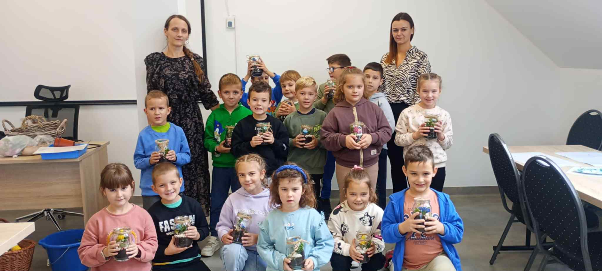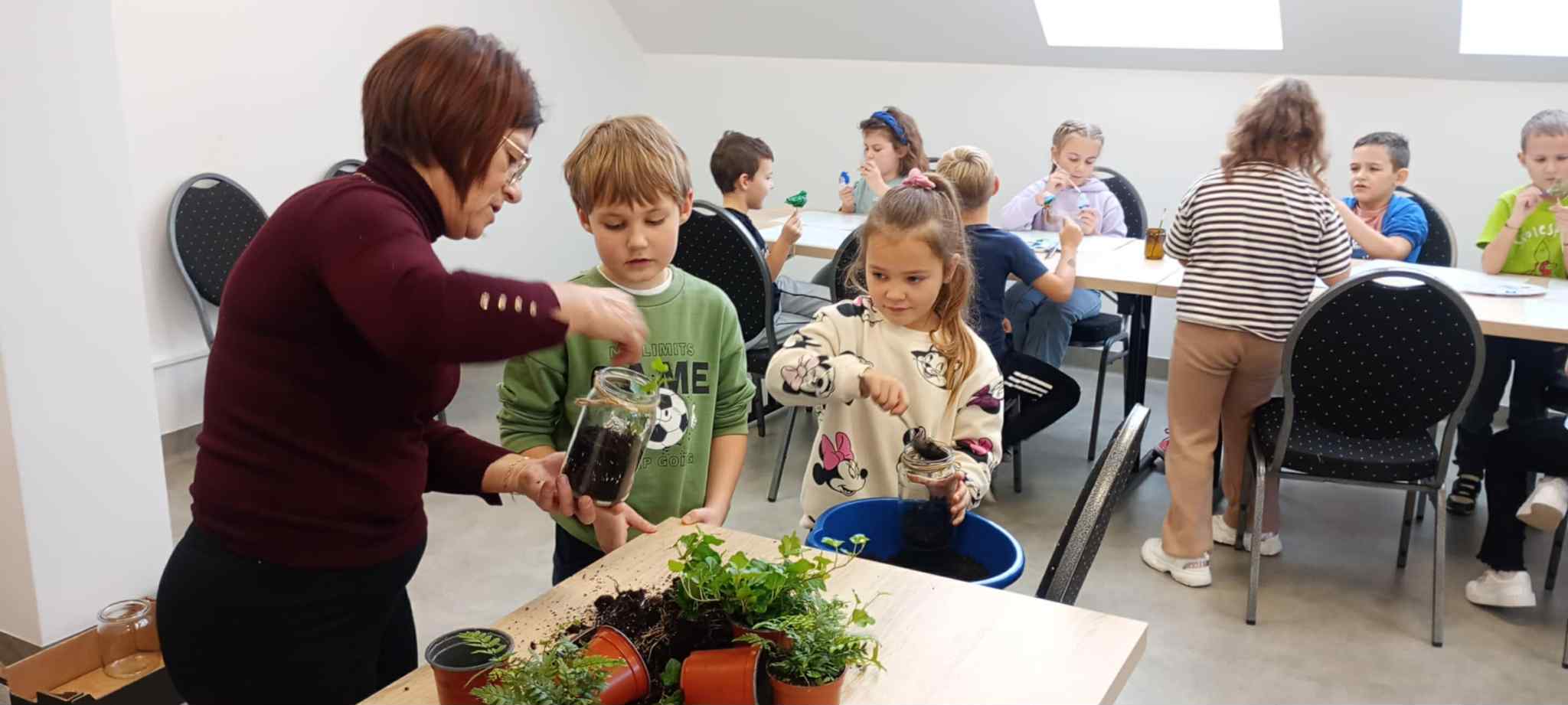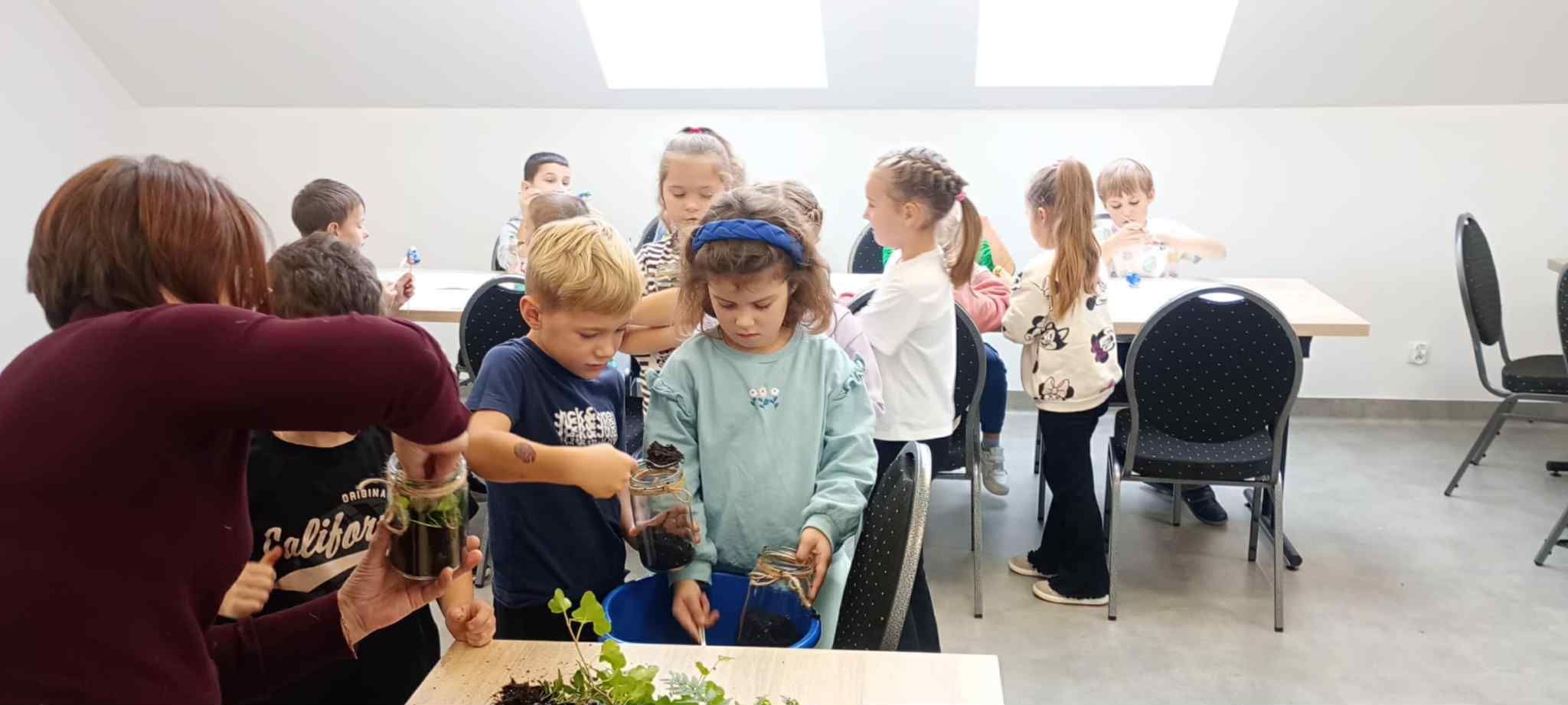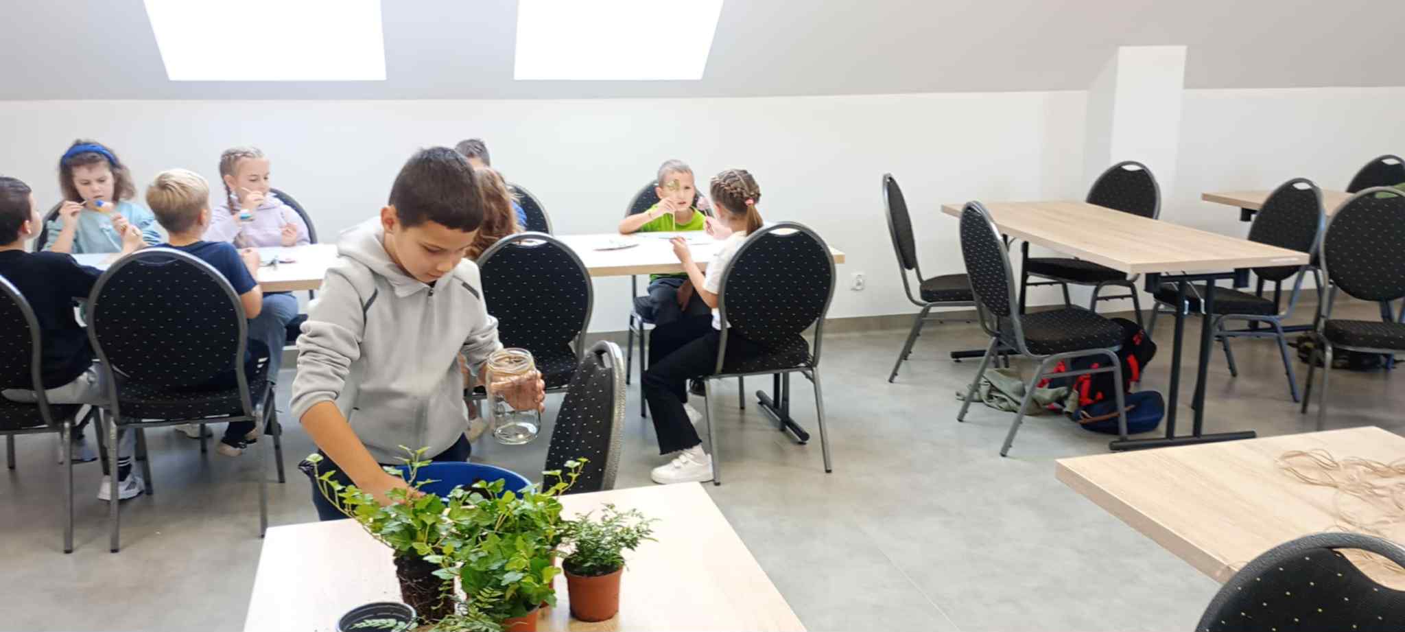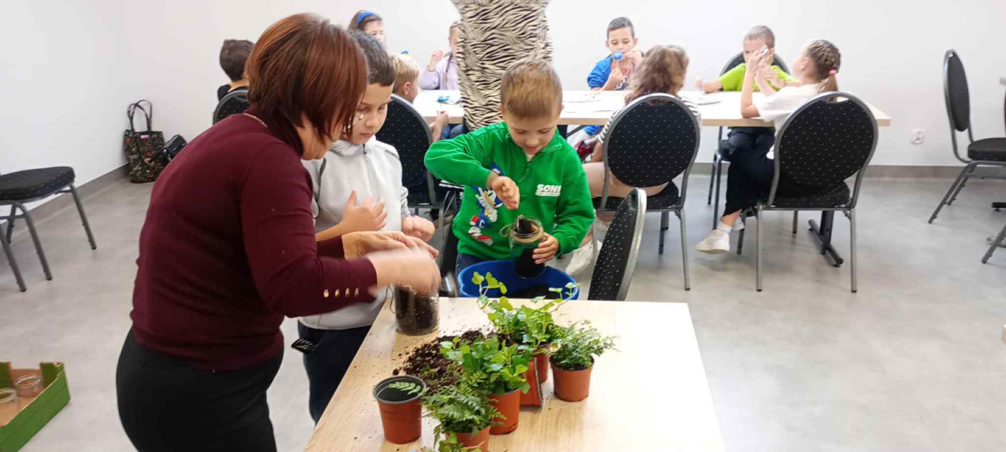 27 października uczniowie klas pierwszych wzięli udział w warsztatach ekologicznych pt. „Las w słoiku” zorganizowanych przez Stowarzyszenie „Na Śliwkowym Szlaku”. Zajęcia rozpoczęły się od ciekawej prelekcji, którą poprowadził ekodoradca z gminy Gnojnik. Uczniowie dowiedzieli się, czym jest powietrze i dlaczego jego czystość jest tak ważna dla życia na Ziemi. Rozmawiali o tym, co powoduje zanieczyszczenie powietrza, jakie są rodzaje dymów oraz jakie negatywne skutki dla naszego zdrowia i ogólnego samopoczucia ma smog. Poznali także sposoby, dzięki którym każdy z nas może przyczynić się do poprawy jakości powietrza. Dowiedzieli się, jak należy postępować w dniach, gdy ogłaszane są alerty smogowe. Po części teoretycznej odbyły się zajęcia praktyczne, które poprowadziła pani ze Stowarzyszenia „Na Śliwkowym Szlaku”. Każdy uczeń stworzył swój własny „las w słoiku” – wyjątkową, zieloną kompozycję z ziemią, kamieniami i roślinami. Dzieci również pomalowały farbami gipsowego ptaszka, którego następnie umieściły w swoim słoiku jako ozdobę. Spotkanie było nie tylko doskonałą lekcją ekologii, ale też świetną zabawą i okazją do rozwijania kreatywności.