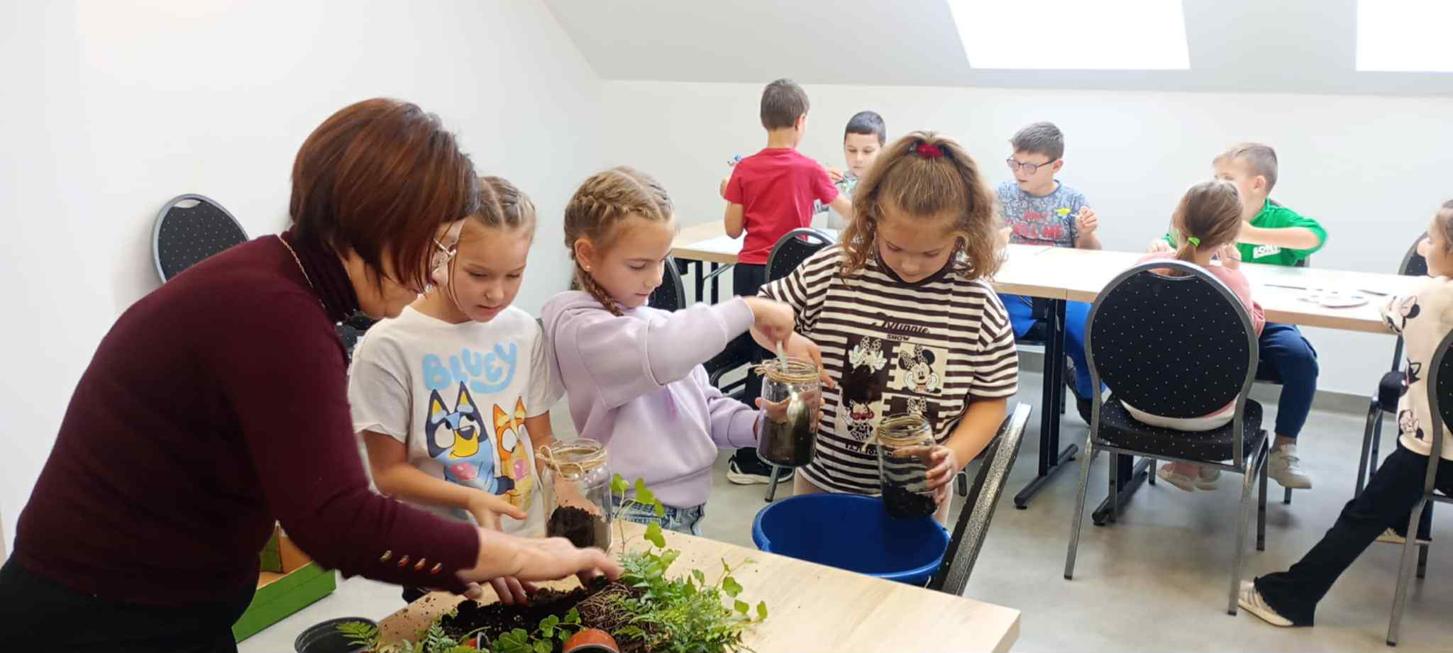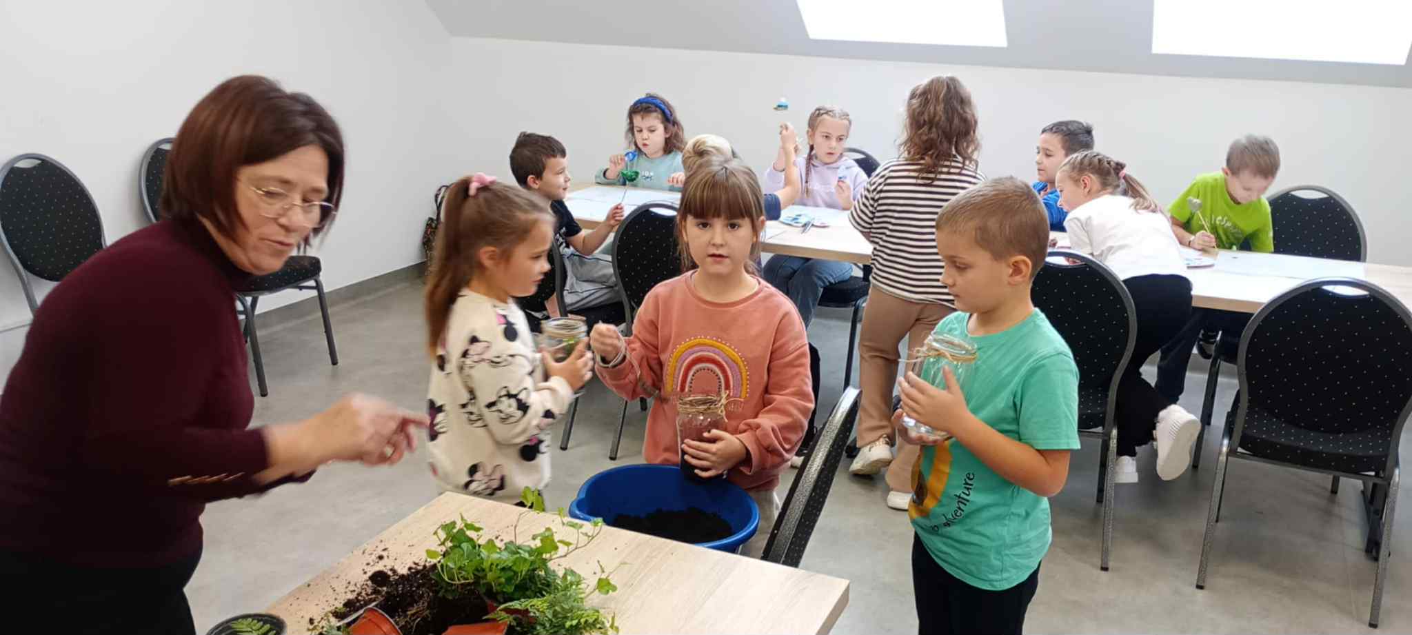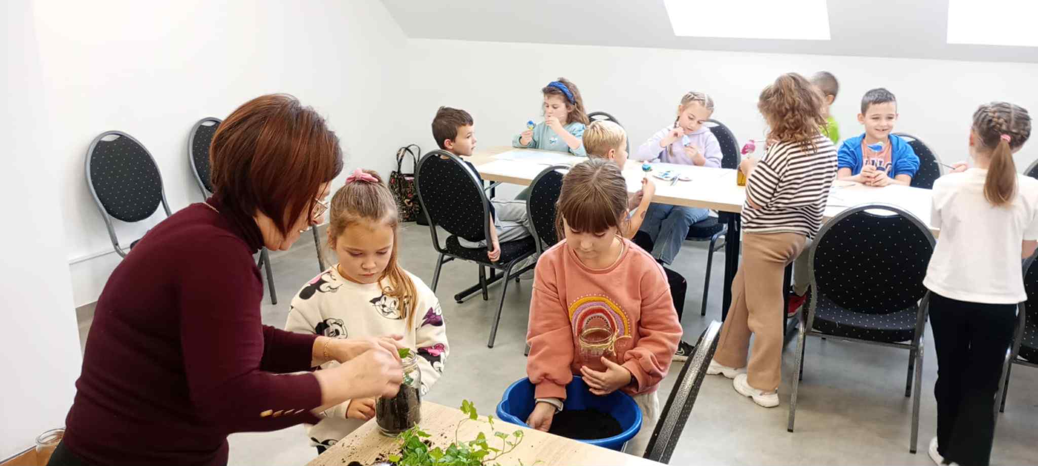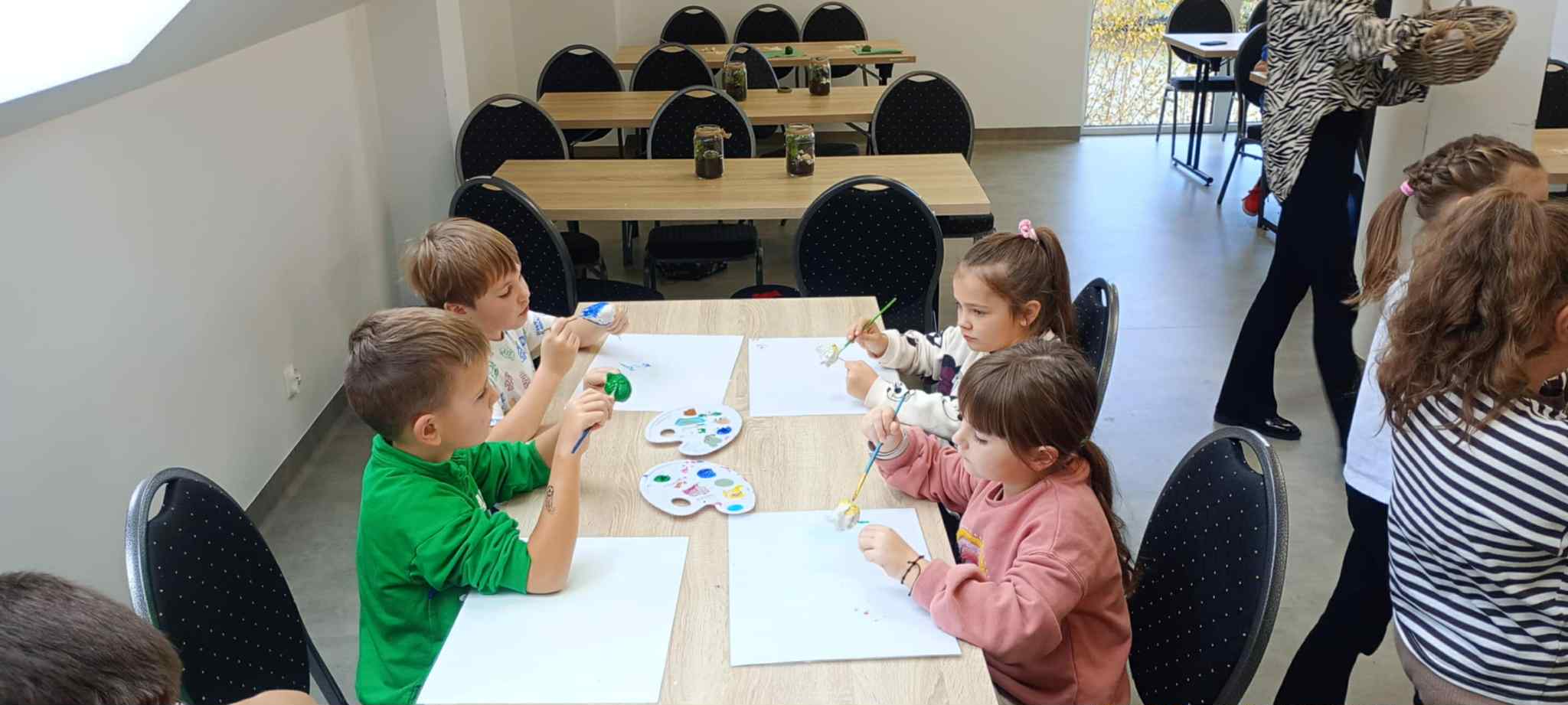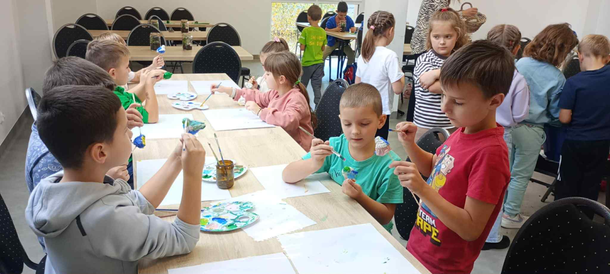 27 października uczniowie klas pierwszych wzięli udział w warsztatach ekologicznych pt. „Las w słoiku” zorganizowanych przez Stowarzyszenie „Na Śliwkowym Szlaku”. Zajęcia rozpoczęły się od ciekawej prelekcji, którą poprowadził ekodoradca z gminy Gnojnik. Uczniowie dowiedzieli się, czym jest powietrze i dlaczego jego czystość jest tak ważna dla życia na Ziemi. Rozmawiali o tym, co powoduje zanieczyszczenie powietrza, jakie są rodzaje dymów oraz jakie negatywne skutki dla naszego zdrowia i ogólnego samopoczucia ma smog. Poznali także sposoby, dzięki którym każdy z nas może przyczynić się do poprawy jakości powietrza. Dowiedzieli się, jak należy postępować w dniach, gdy ogłaszane są alerty smogowe. Po części teoretycznej odbyły się zajęcia praktyczne, które poprowadziła pani ze Stowarzyszenia „Na Śliwkowym Szlaku”. Każdy uczeń stworzył swój własny „las w słoiku” – wyjątkową, zieloną kompozycję z ziemią, kamieniami i roślinami. Dzieci również pomalowały farbami gipsowego ptaszka, którego następnie umieściły w swoim słoiku jako ozdobę. Spotkanie było nie tylko doskonałą lekcją ekologii, ale też świetną zabawą i okazją do rozwijania kreatywności.