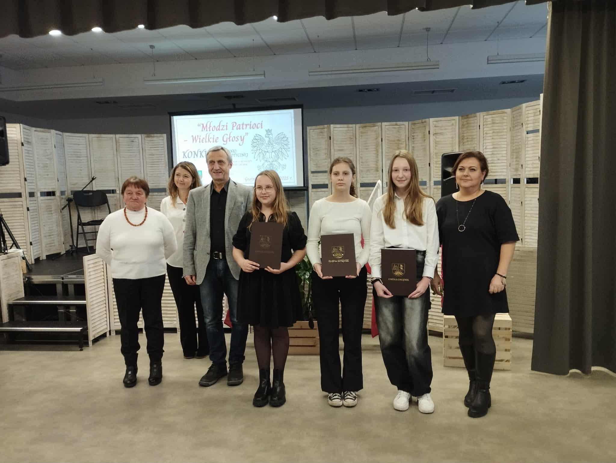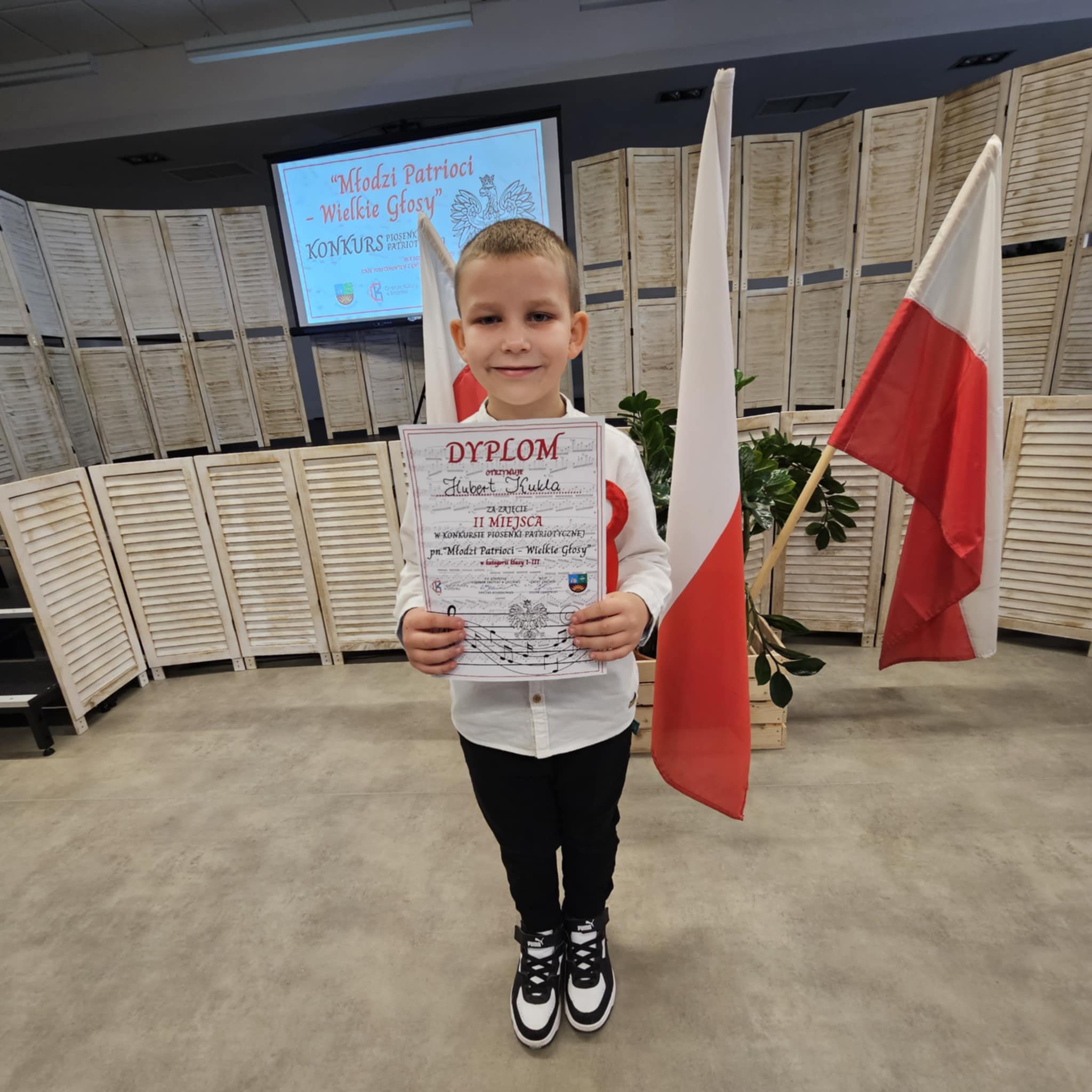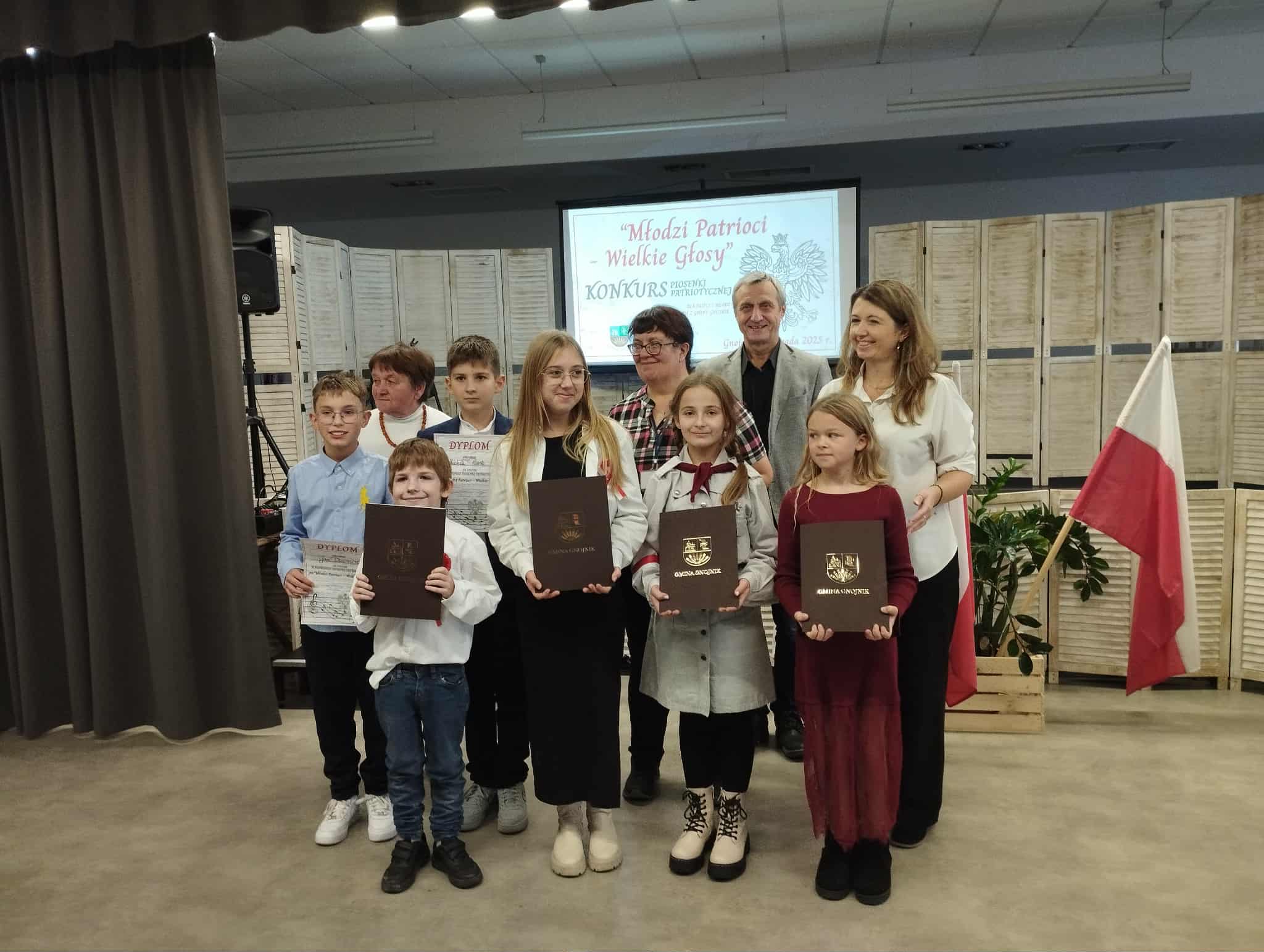 Dnia 4 listopada uczniowie naszej szkoły wzięli udział w gminnym Konkursie Piosenki Patriotycznej „Młodzi patrioci – wielkie głosy” zorganizowanym przez Centrum Kultury w Gnojniku. Celem wydarzenia było kształtowanie postawy patriotycznej oraz rozwijanie talentów artystycznych. Wykonawcy byli oceniani w trzech kategoriach wiekowych. Nasi uczniowie bardzo dobrze zaprezentowali swoje umiejętności wokalne i znaleźli się wśród laureatów konkursu.