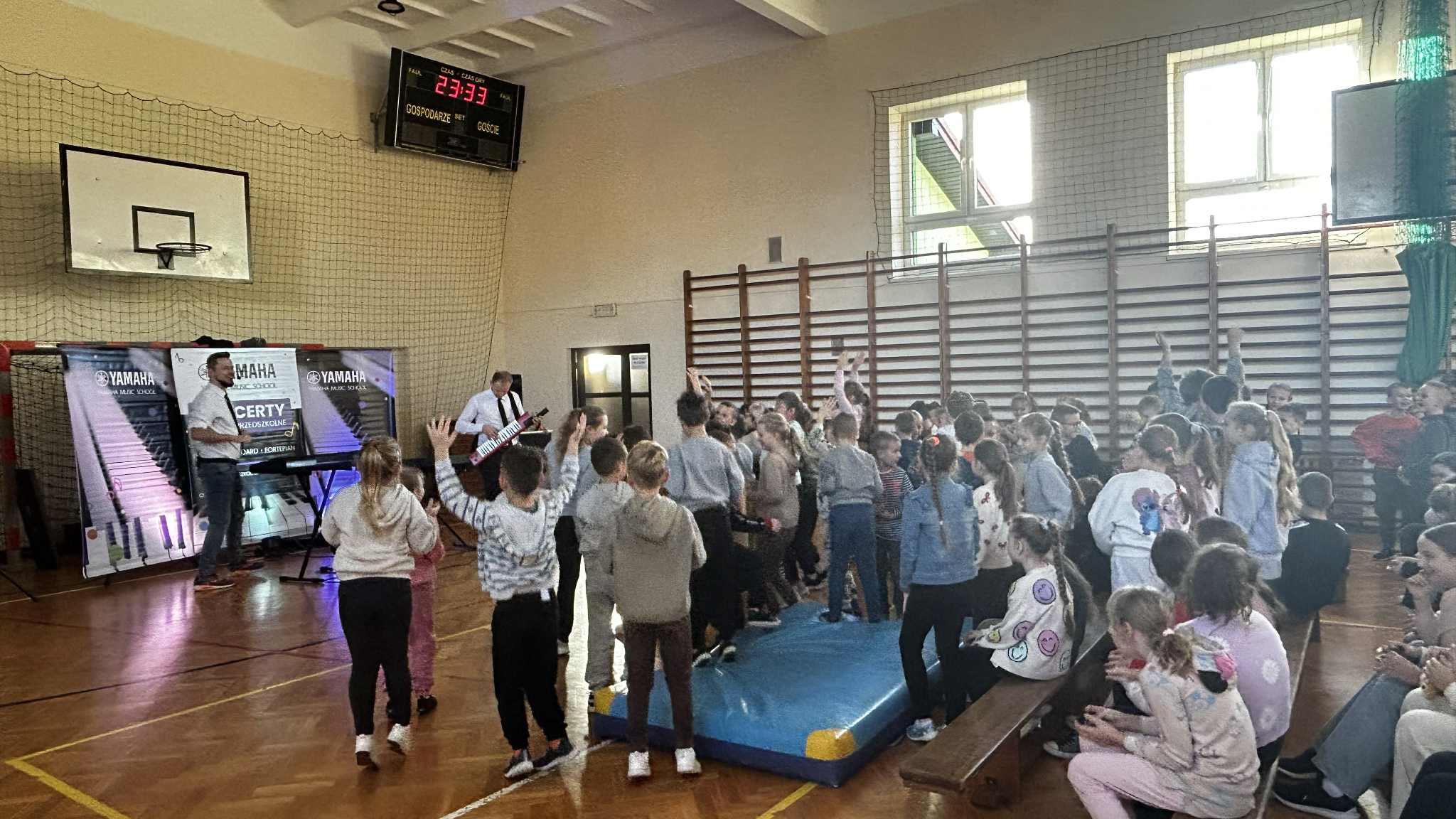 Dnia 14 listopada po raz kolejny gościliśmy w naszej szkole muzyków z Yamaha Music School. Artyści bardzo szybko nawiązali kontakt z publicznością, zachęcając ją do aktywności muzycznej. W ciekawy sposób, z dużą dozą humoru zaprezentowali instrumenty klawiszowe (pianino cyfrowe, syntezator, keyboard, keytar oraz klawiatura sterująca) co spotkało się z żywiołową reakcją uczniów, którzy mieli możliwość spróbowania swoich sił w grze na instrumentach. Koncert był ciekawą i angażującą formą edukacji muzycznej.