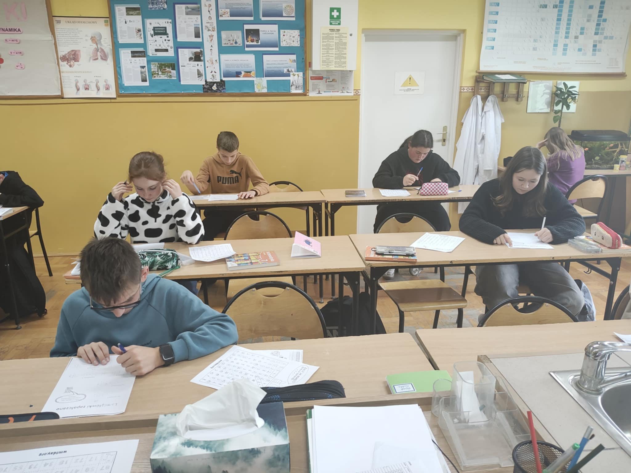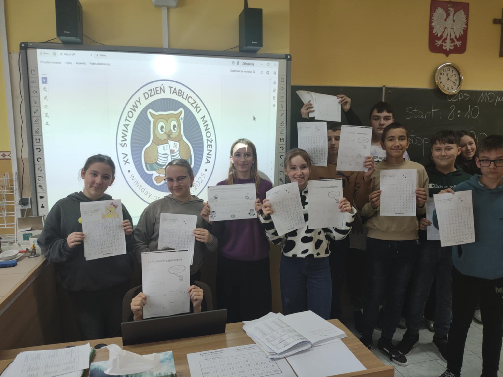 Uczniowie brali udział w różnych aktywnościach – rozwiązywali zadania, łamigłówki i krótkie quizy matematyczne. Dzięki wspólnej zabawie mogli sprawdzić swoją pamięć, poćwiczyć tabliczkę mnożenia oraz przekonać się, że matematyka może być ciekawa i przyjemna.