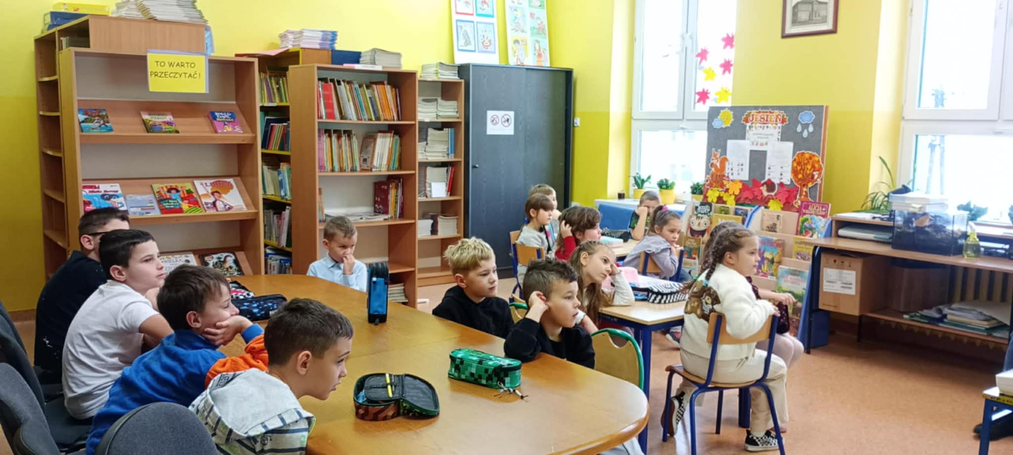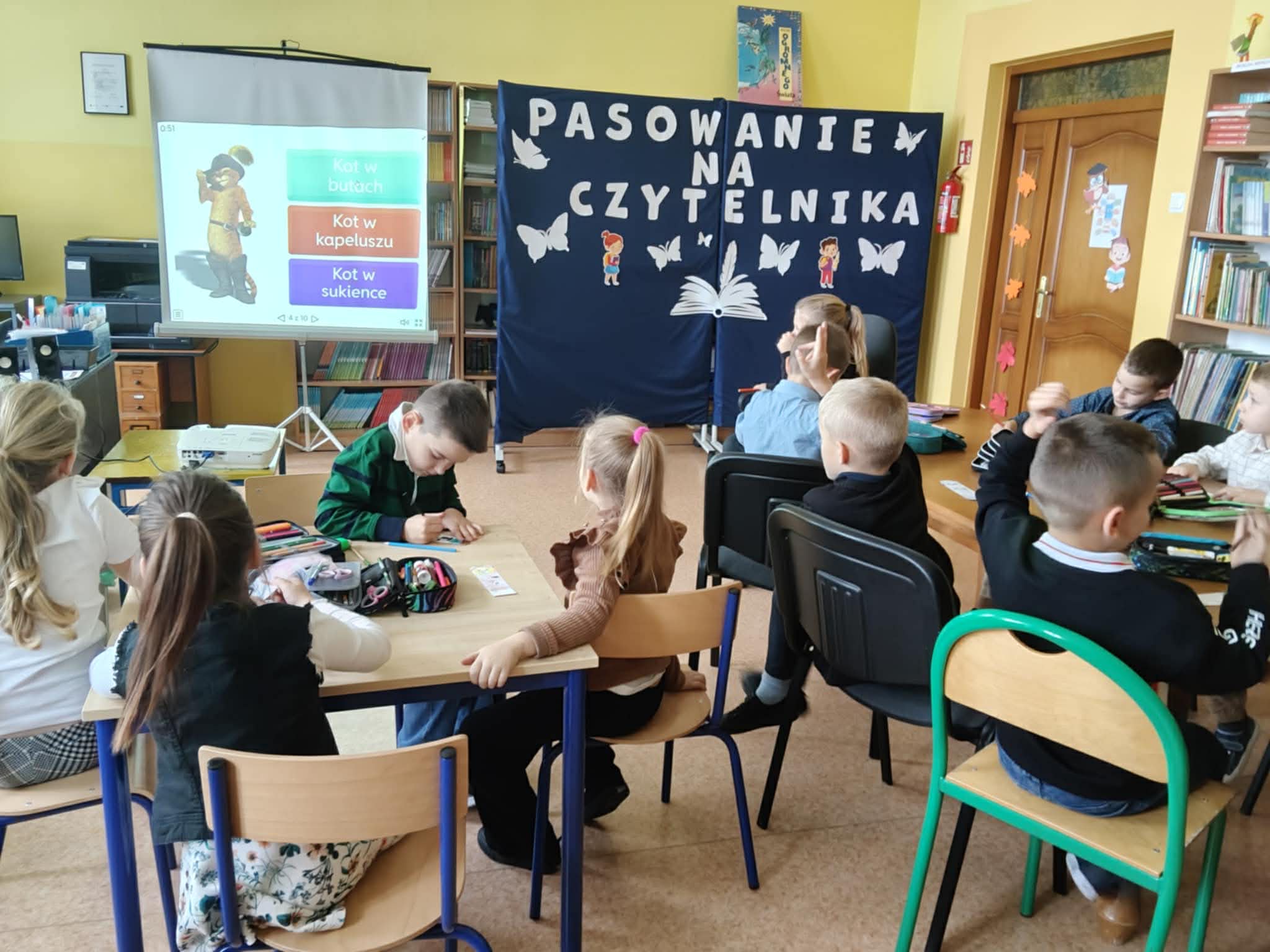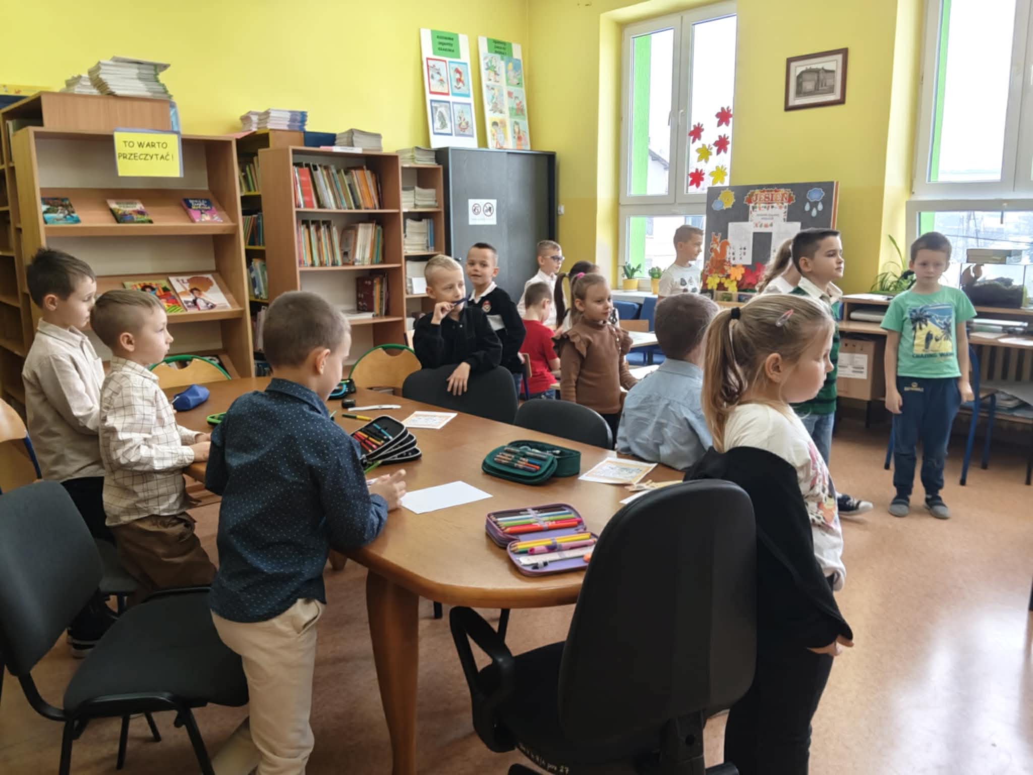25 listopada w bibliotece szkolnej odbyło się uroczyste pasowanie uczniów klasy 1a i 1b na czytelników. Pod opieką pana Piotra Rzepy dzieci wykonały własne zakładki, rozwiązywały zadania o alfabecie i bohaterach bajek oraz przypomniały sobie zasady korzystania z biblioteki. Najważniejszym momentem było wspólne złożenie ślubowania. Na zakończenie uczniowie otrzymali dyplomy i zrobili pamiątkowe zdjęcie.