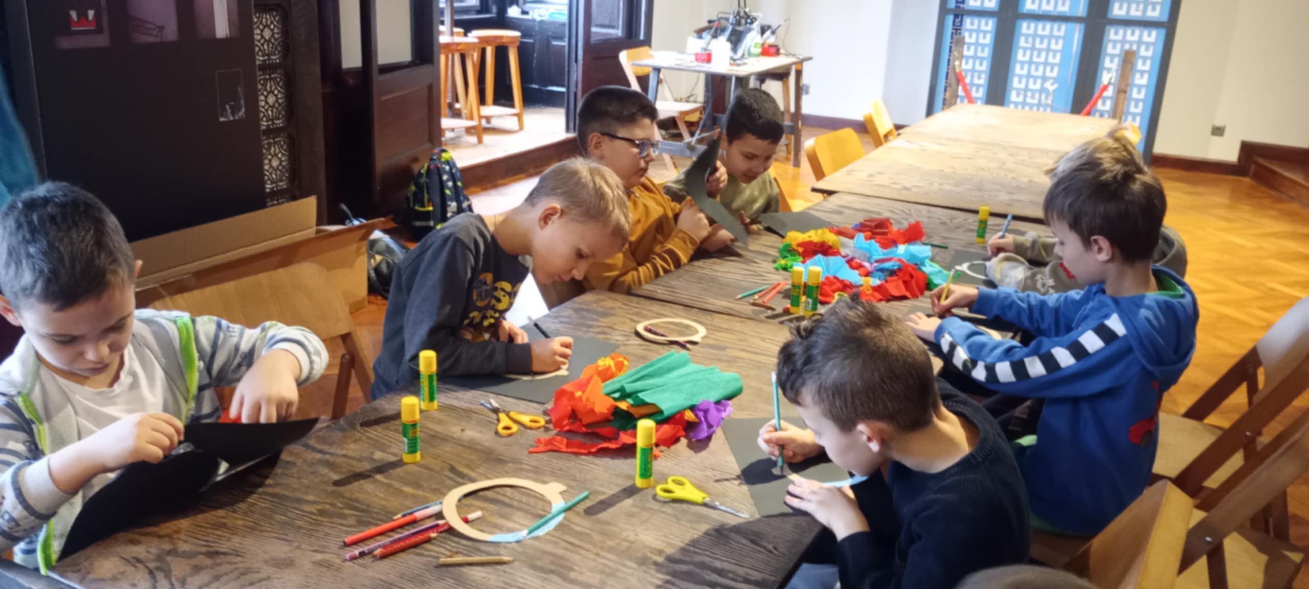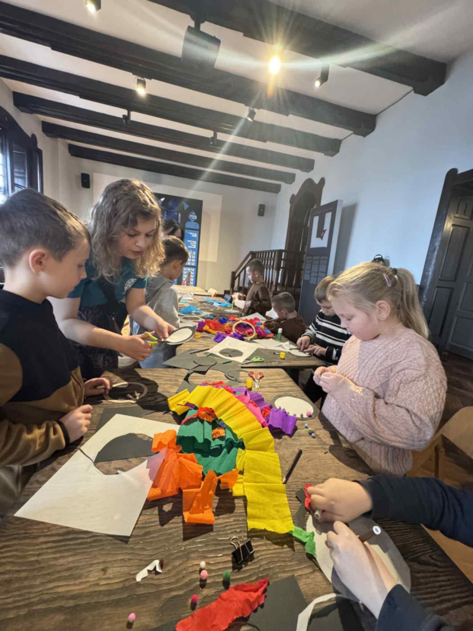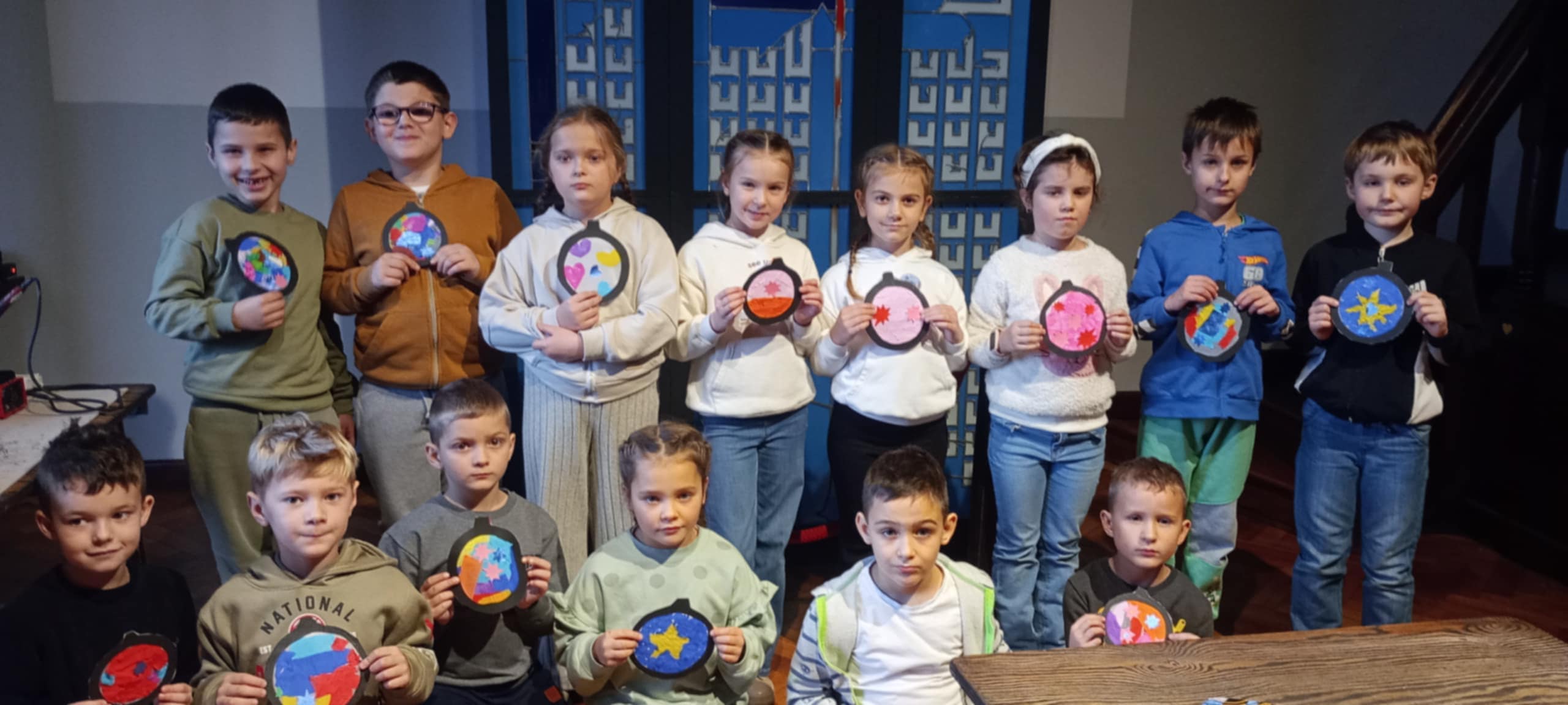 Po zwiedzaniu przyszedł czas na twórczą aktywność. W ramach warsztatów plastycznych każdy uczeń wykonał własną, świąteczną pracę – bombkę stworzoną metodą witrażu. Była to nie tylko świetna zabawa, lecz także okazja do rozwijania wyobraźni, kreatywności oraz zdolności manualnych.