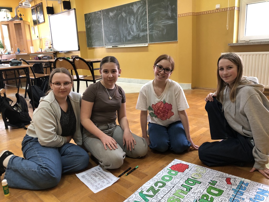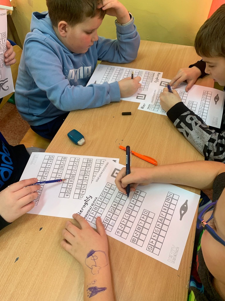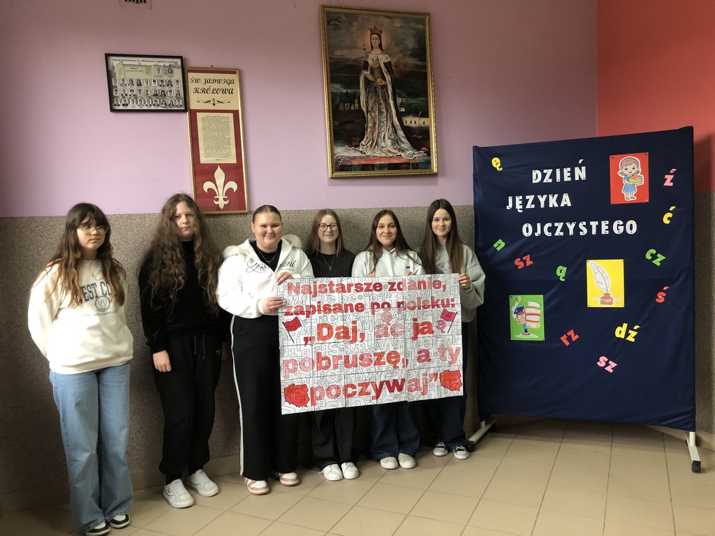 Uczniowie naszej szkoły w ostatni tydzień lutego brali udział w różnego rodzaju działaniach zwiększających świadomość na temat tego, jak ważna jest troska o prawidłowe posługiwanie się polszczyzną. Po zapoznaniu się z prezentacją ukazującą historię języka polskiego, jego bogactwo i piękno, a także ciekawostki z nim związane, poszczególne klasy przystąpiły do działań praktycznych. Młodsi uczniowie utrwalali znajomość alfabetu, odgadywali polskie powiedzenia i przysłowia. Starsi zmagali się m.in. z rozszyfrowaniem hieroglifów. Dzięki nim mogli poznać zaskakujące archaizmy, kiedyś powszechnie używane, a obecnie niewiele mówiące wyrazy, których znaczenia dziś trudno się nawet domyślić. Wspólnymi siłami próbowali także wykonać plakat, by odgadnąć najstarsze zapisane w języku polskim zdanie: „Daj, ać ja pobruszę, a ty poczywaj.” Dodatkowo na drzwiach sal lekcyjnych na uczniów czekała niespodzianka w postaci karteczek do zerwania, zawierających wyrazy z trudnościami ortograficznymi.