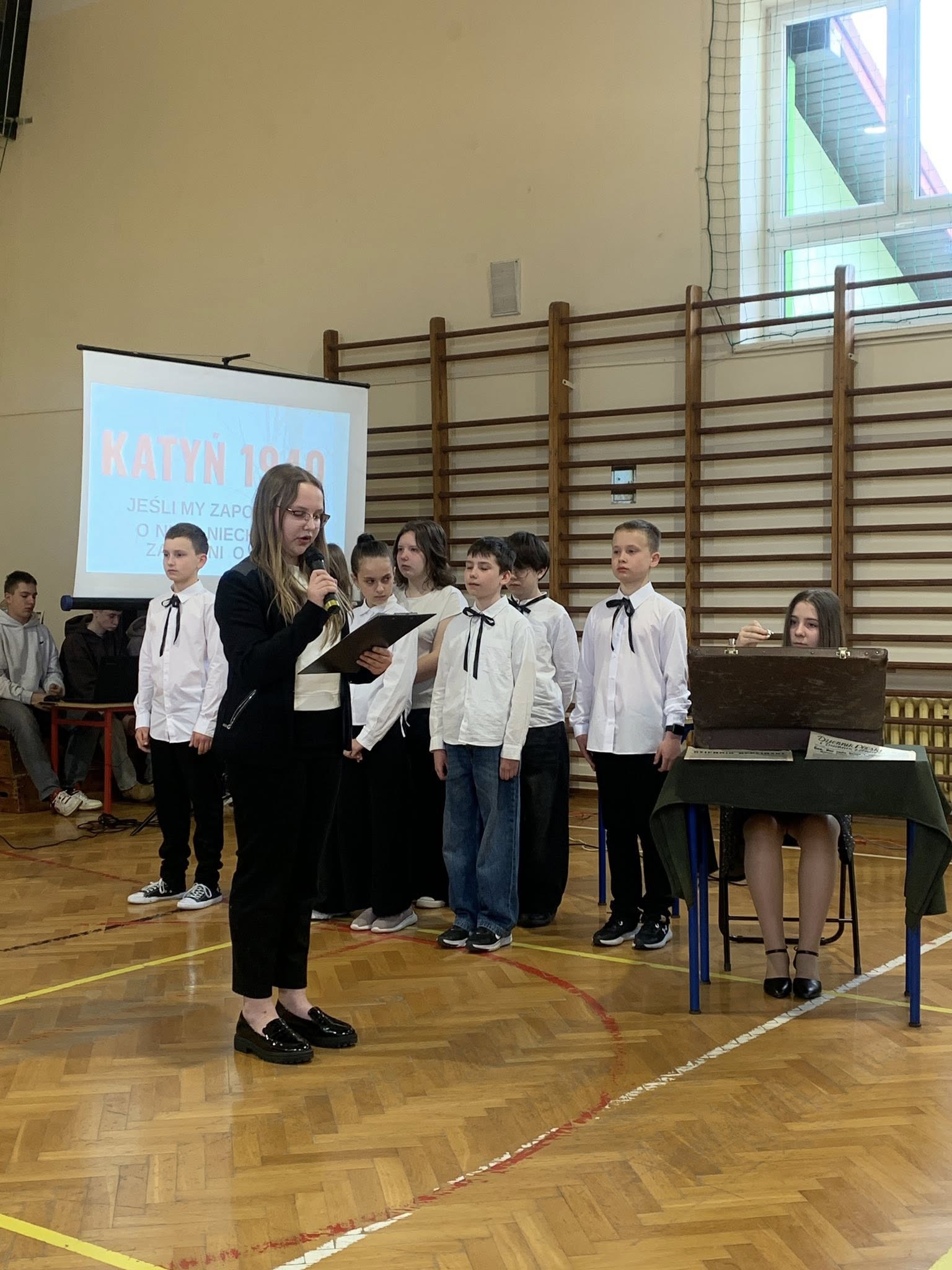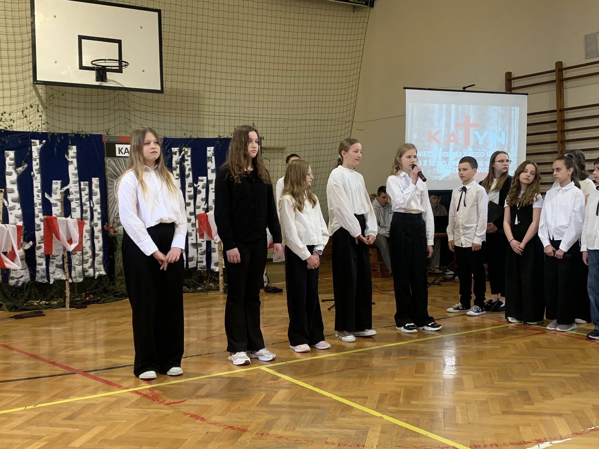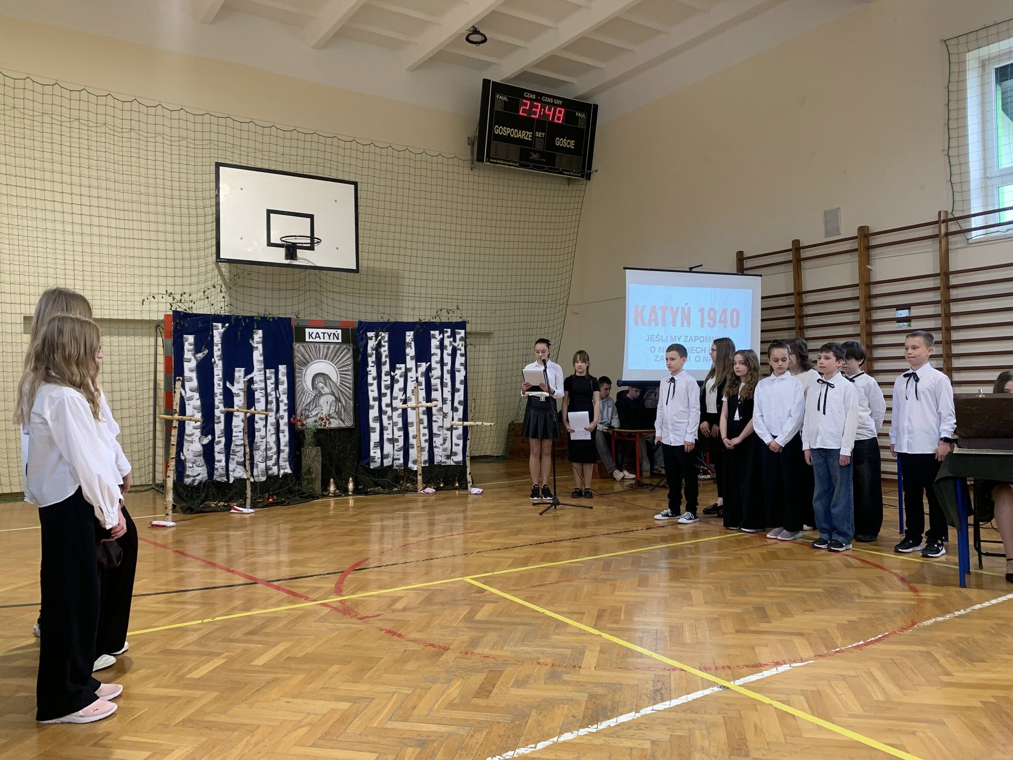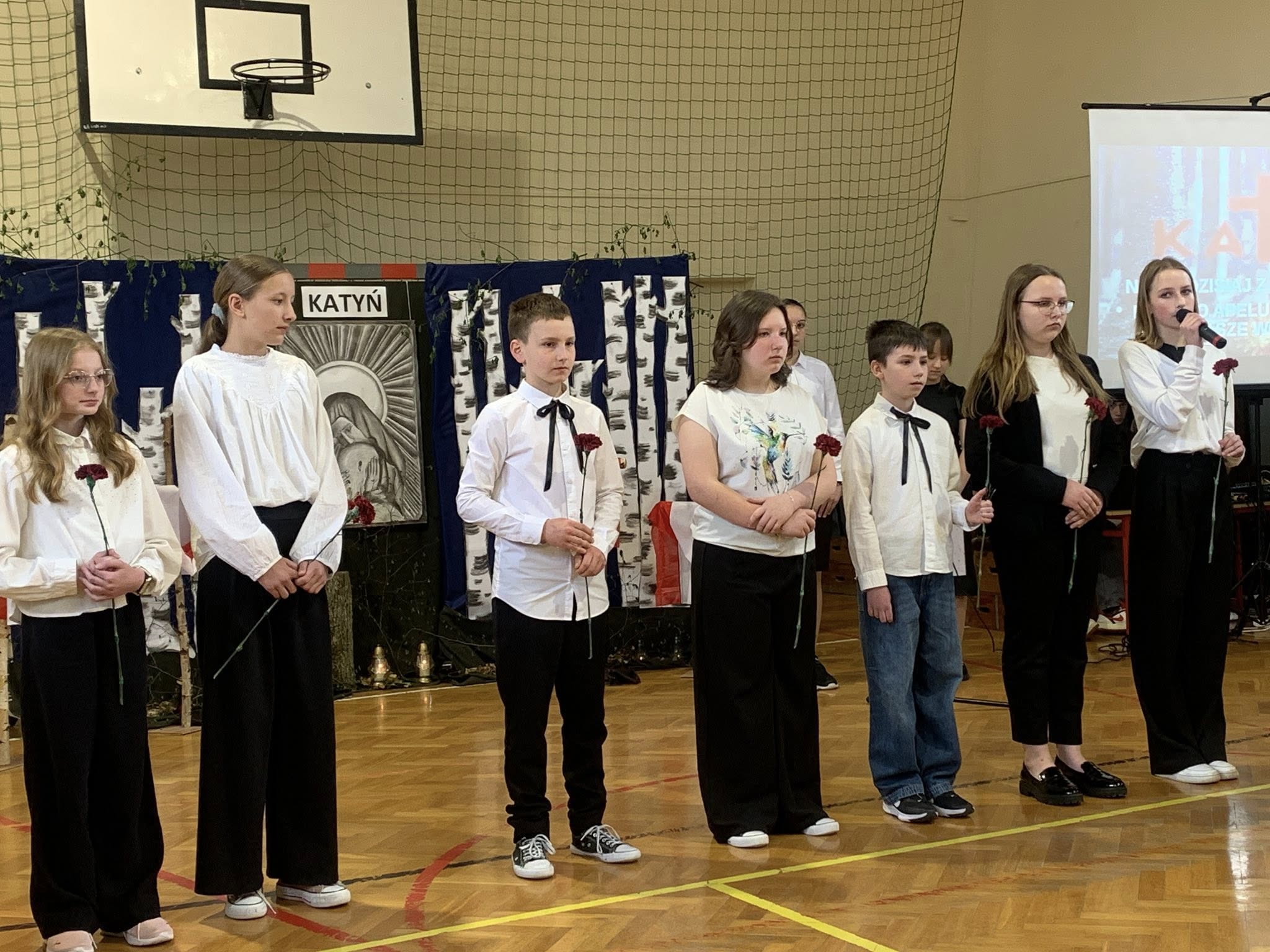 W środę 15 kwietnia społeczność naszej szkoły wzięła udział w akademii poświęconej pamięci polskich jeńców wojennych zamordowanych w 1940 roku w Katyniu, Charkowie, Miednoje i innych miejscach zbrodni. Wzruszający montaż słowno – muzyczny pt. „Katyń” przygotowali uczniowie klasy V a, V b oraz klasy VII b. Do aktu ludobójstwa ponad 22 tysięcy polskich obywateli: oficerów, policjantów, ale też lekarzy, naukowców, artystów, którego dopuściło się strzałem w tył głowy NKWD, Związek Radziecki przyznał się dopiero 13 kwietnia 1990 r. Prawda o jednym z najsmutniejszych wydarzeń w historii Polski nie może być zapomniana.