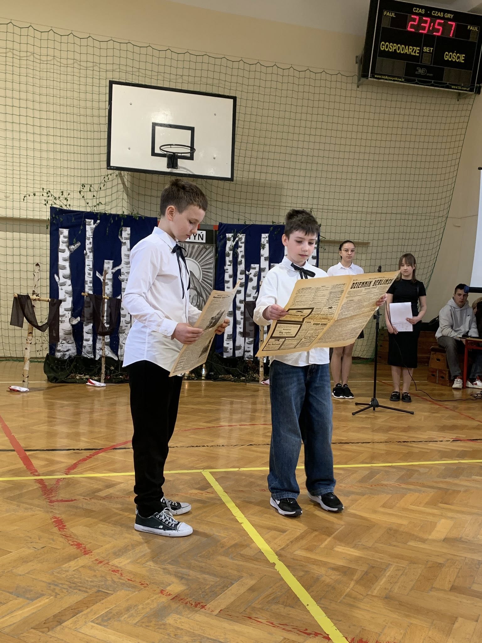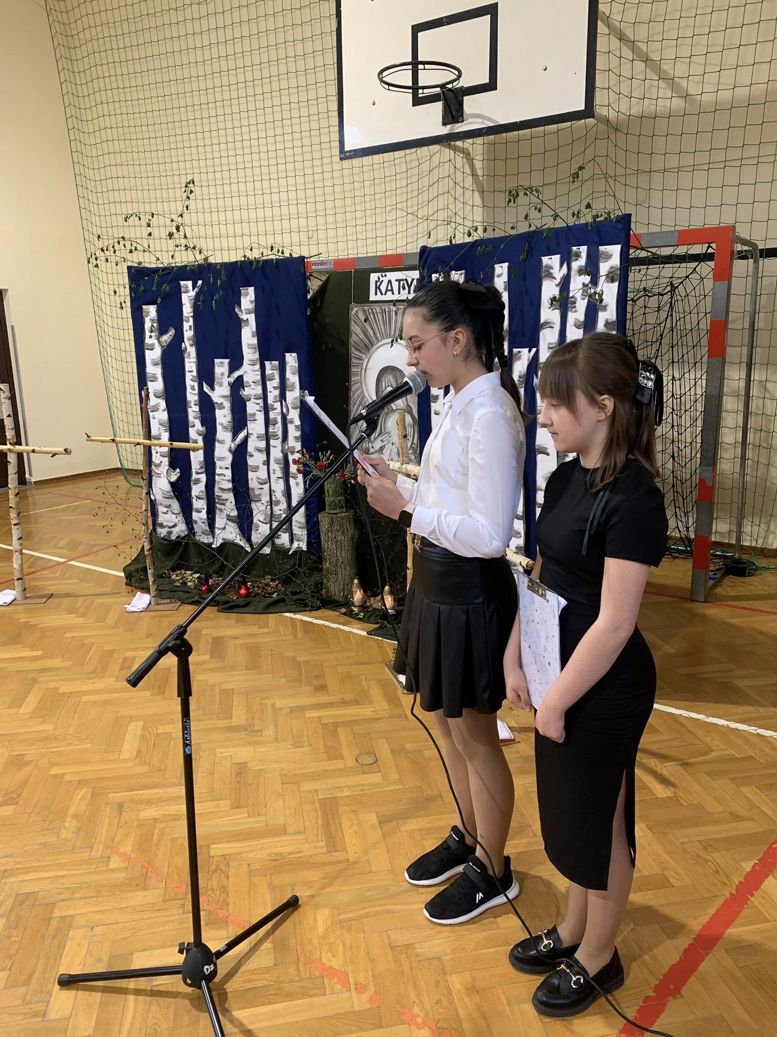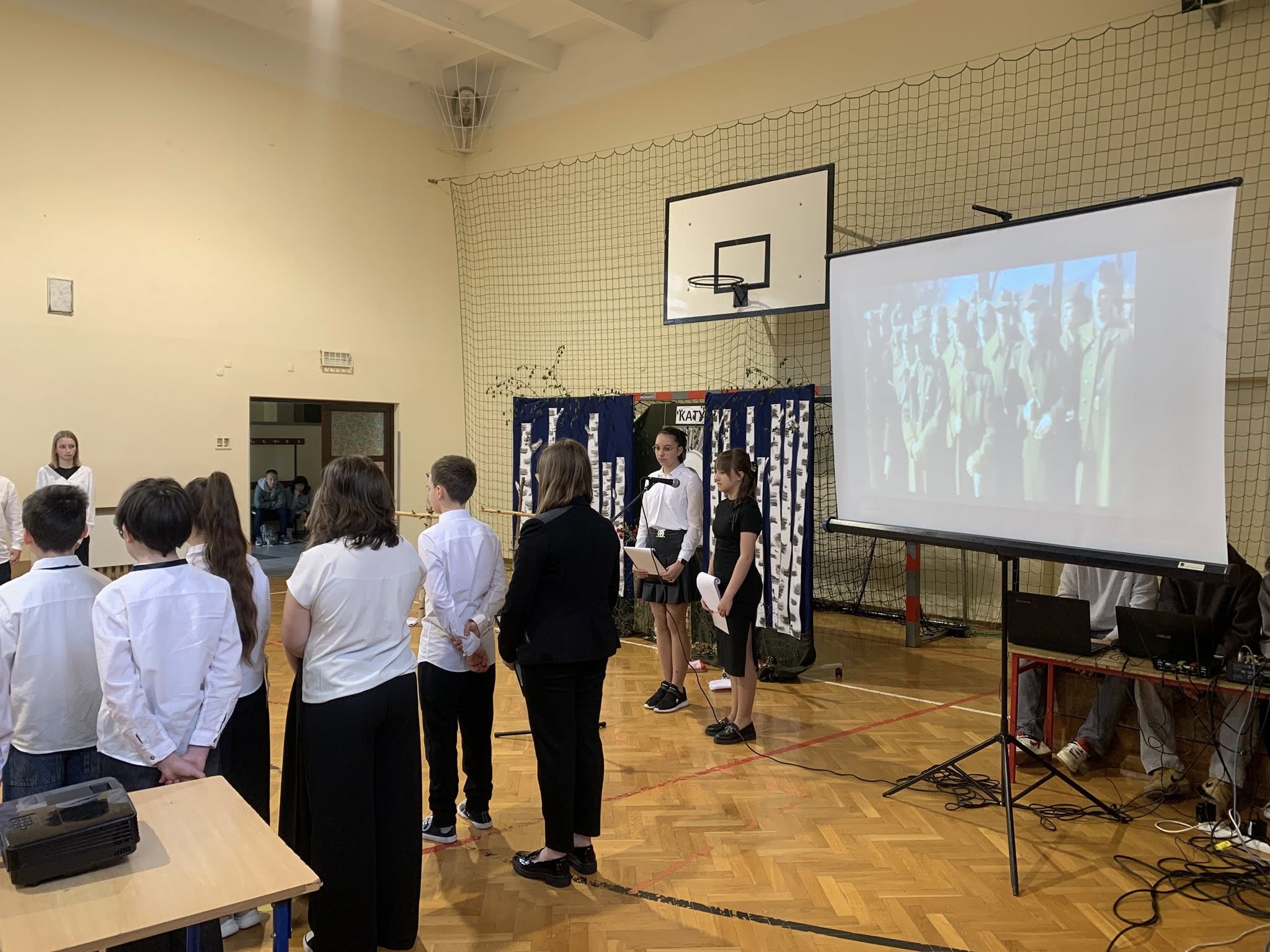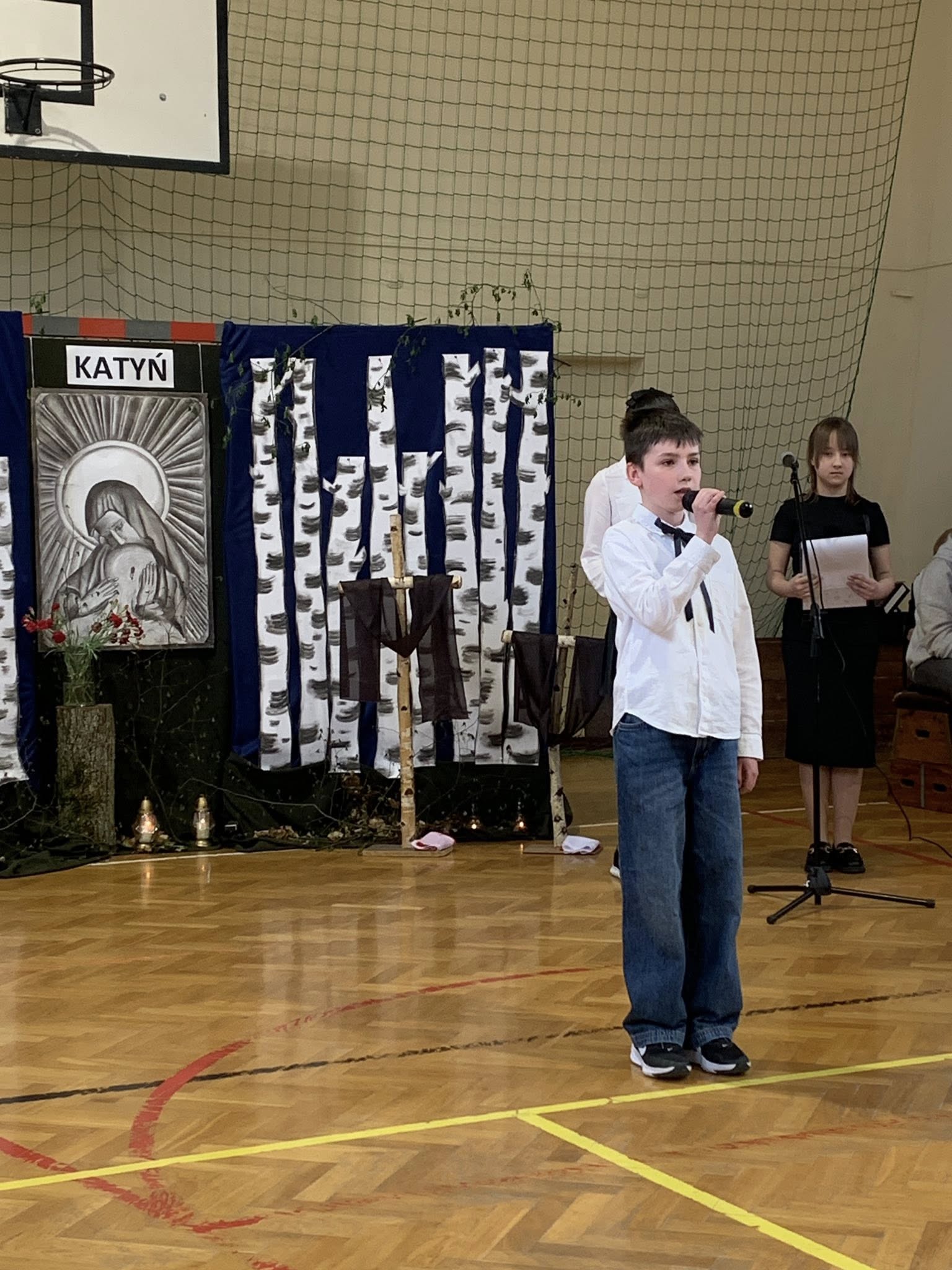 W środę 15 kwietnia społeczność naszej szkoły wzięła udział w akademii poświęconej pamięci polskich jeńców wojennych zamordowanych w 1940 roku w Katyniu, Charkowie, Miednoje i innych miejscach zbrodni. Wzruszający montaż słowno – muzyczny pt. „Katyń” przygotowali uczniowie klasy V a, V b oraz klasy VII b. Do aktu ludobójstwa ponad 22 tysięcy polskich obywateli: oficerów, policjantów, ale też lekarzy, naukowców, artystów, którego dopuściło się strzałem w tył głowy NKWD, Związek Radziecki przyznał się dopiero 13 kwietnia 1990 r. Prawda o jednym z najsmutniejszych wydarzeń w historii Polski nie może być zapomniana.