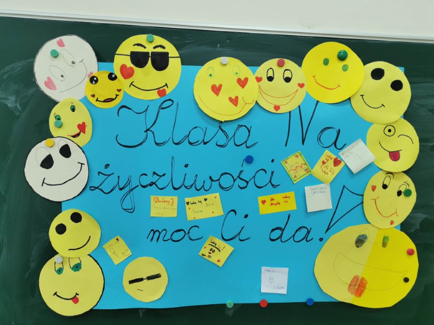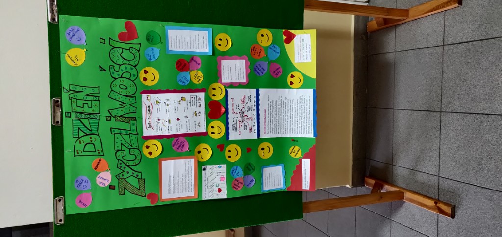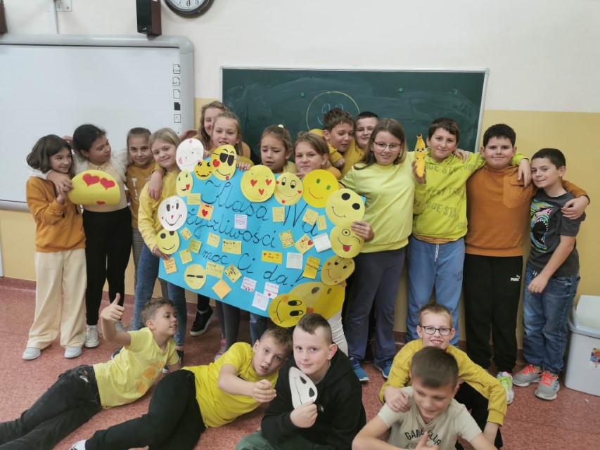 21 listopada obchodziliśmy Światowy Dzień Życzliwości i Pozdrowień. To nietypowe święto stało się okazją do uświadomienia całej społeczności szkolnej, jak ważna jest wzajemna serdeczność. Zwykły uśmiech, ciepłe słowo czy miły gest potrafią rozjaśnić komuś nawet najsmutniejszy dzień. Samorząd Uczniowski podjął szereg działań, które sprzyjały integracji społeczności szkolnej i klasowej. Każdy z nas swoją radość i entuzjazm wyraził poprzez żółte akcenty w ubiorze. Kolejną atrakcją była Skrzynka Życzliwości, za pośrednictwem której uczniowie i nauczyciele mogli przesłać pozdrowienia i życzenia do wybranych osób. Na korytarzu zawisł plakat dotyczący życzliwości oraz tygodniowy plan bycia życzliwym. Ponadto nauczyciele przeprowadzili pogadanki na temat życzliwości. W klasach IV-VIII odbyły się plebiscyty na najżyczliwszego ucznia w klasie.