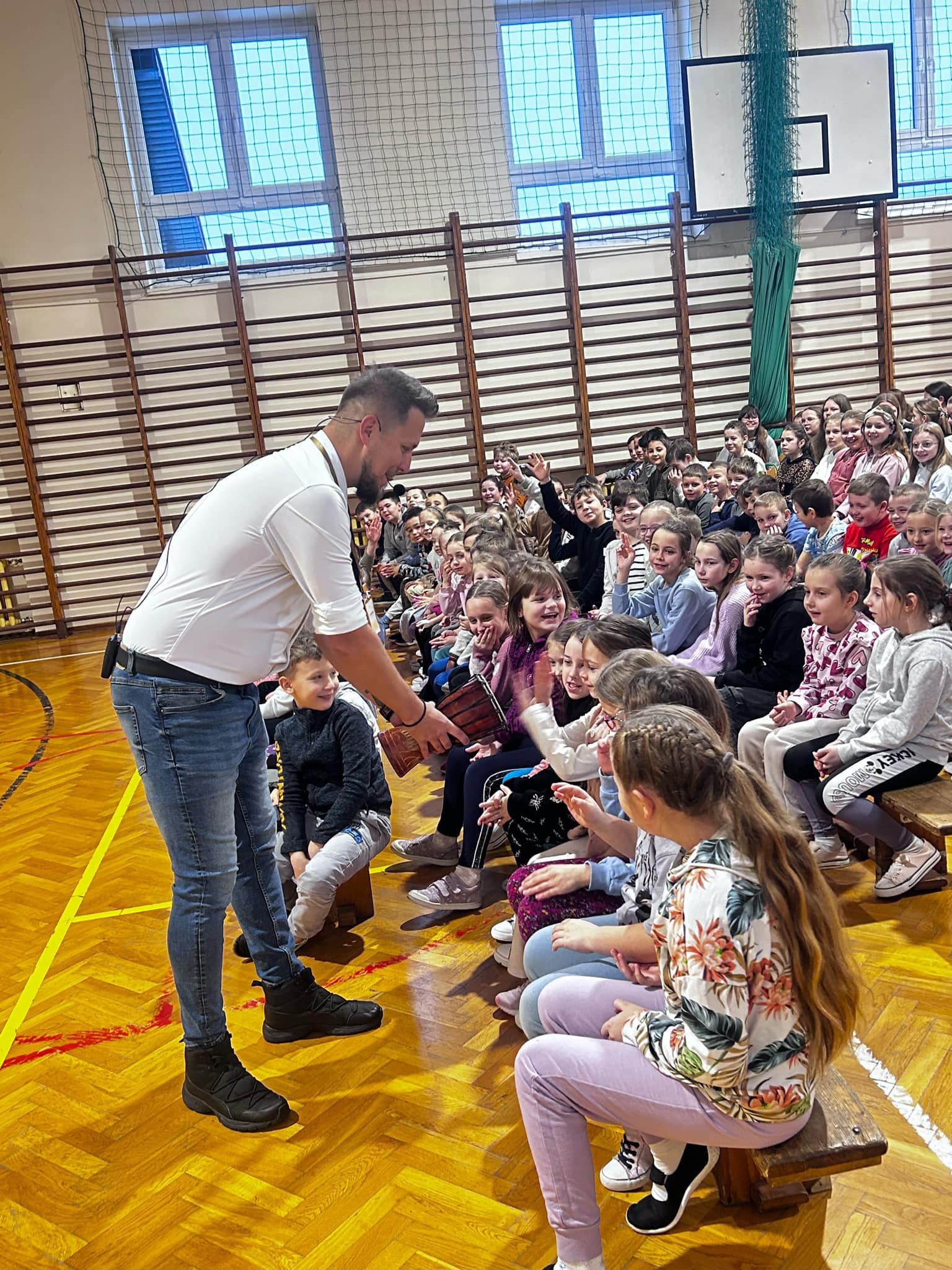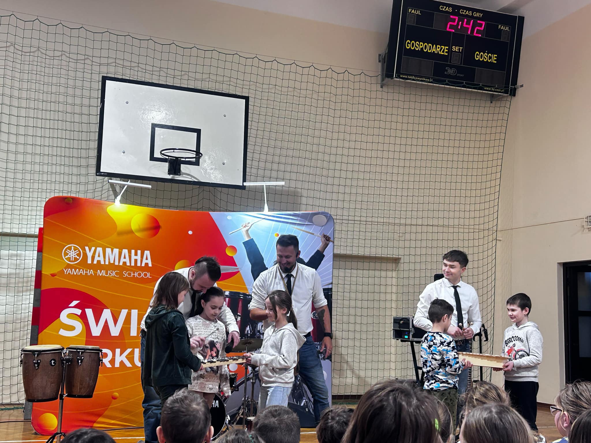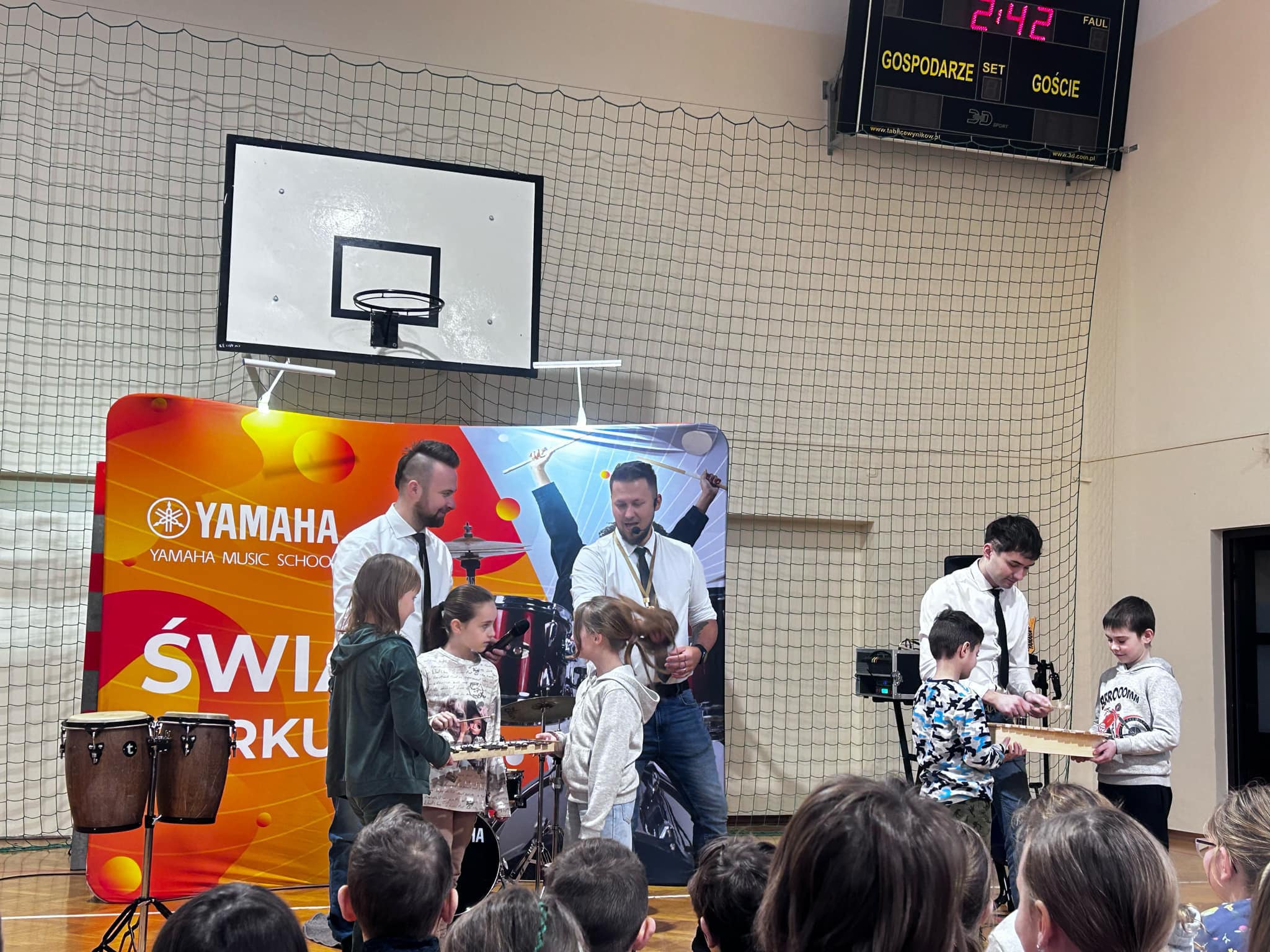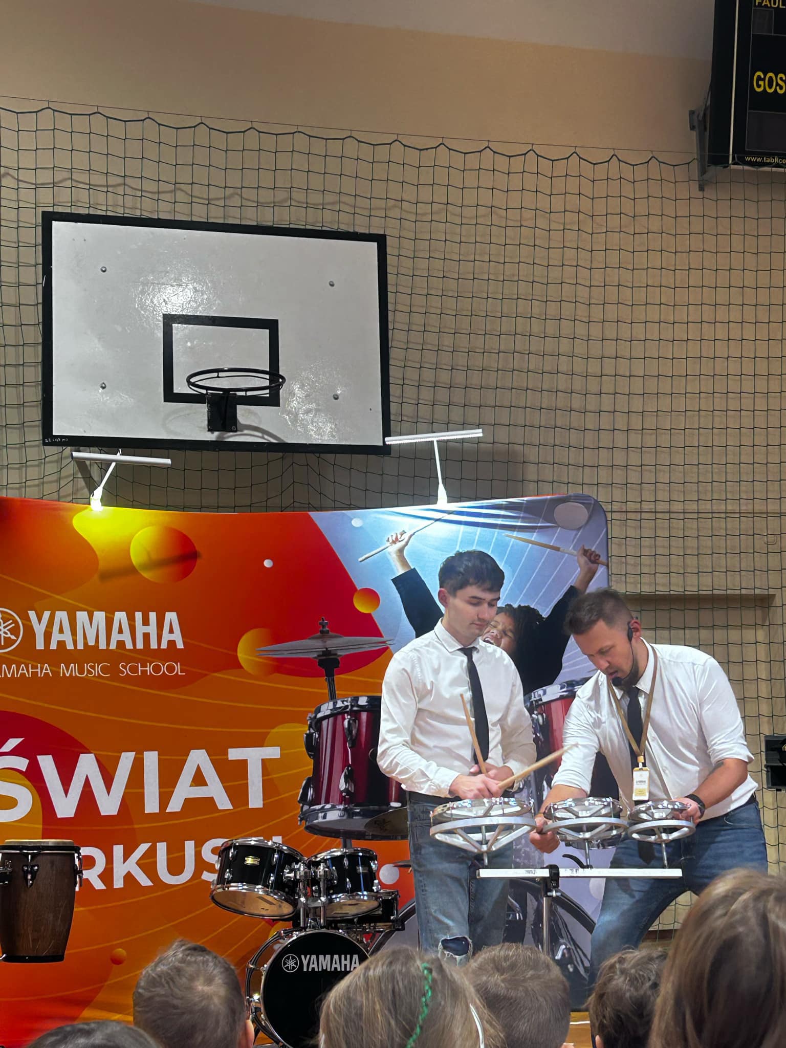 Dnia 13 stycznia uczestniczyliśmy w koncercie „Świat perkusji” w wykonaniu artystów z Yamaha Music School. Muzycy zaprezentowali różne instrumenty perkusyjne, m. in. djembe, dzwonki chromatyczne, ksylofon, perkusję elektroniczną i nawiązali bardzo dobry kontakt z publicznością. Uczniowie mieli okazję posłuchać brzmienia instrumentów, zagrać, zaśpiewać, a nawet wykonać afrykański taniec. Spotkanie upłynęło w radosnej atmosferze i już czekamy na kolejne.