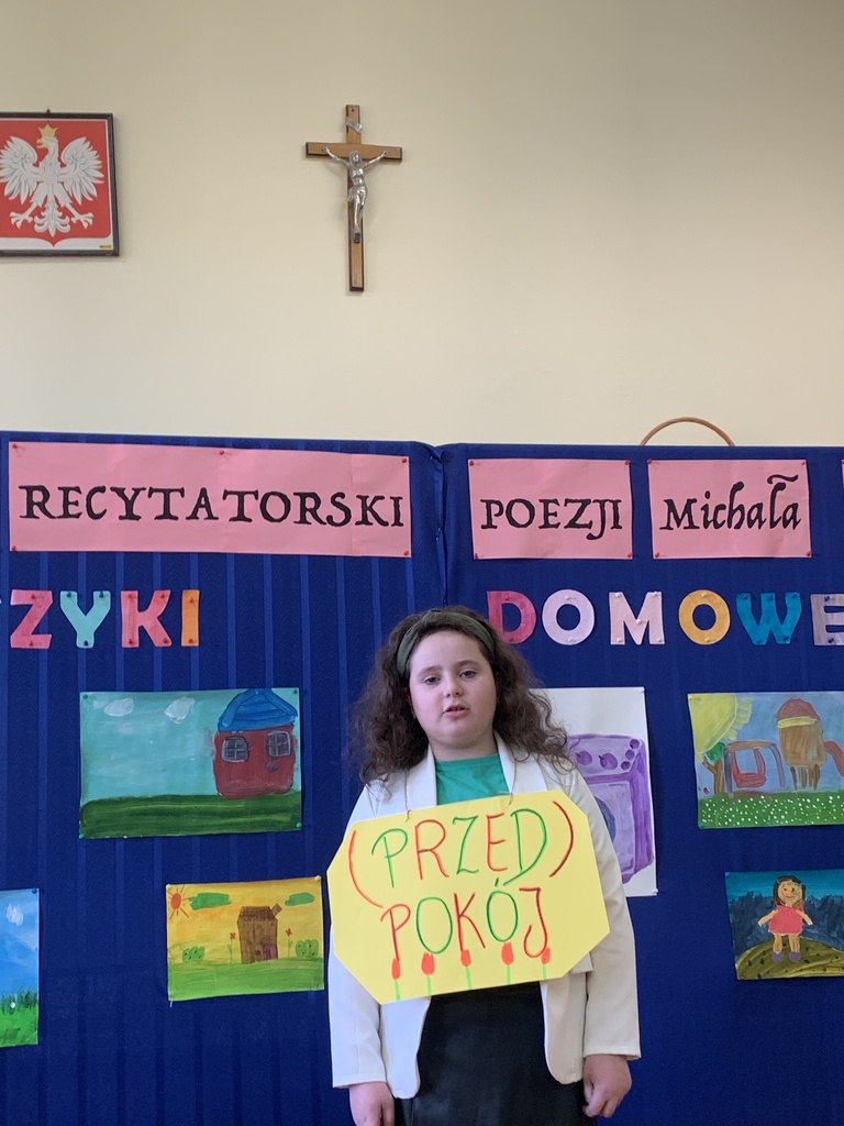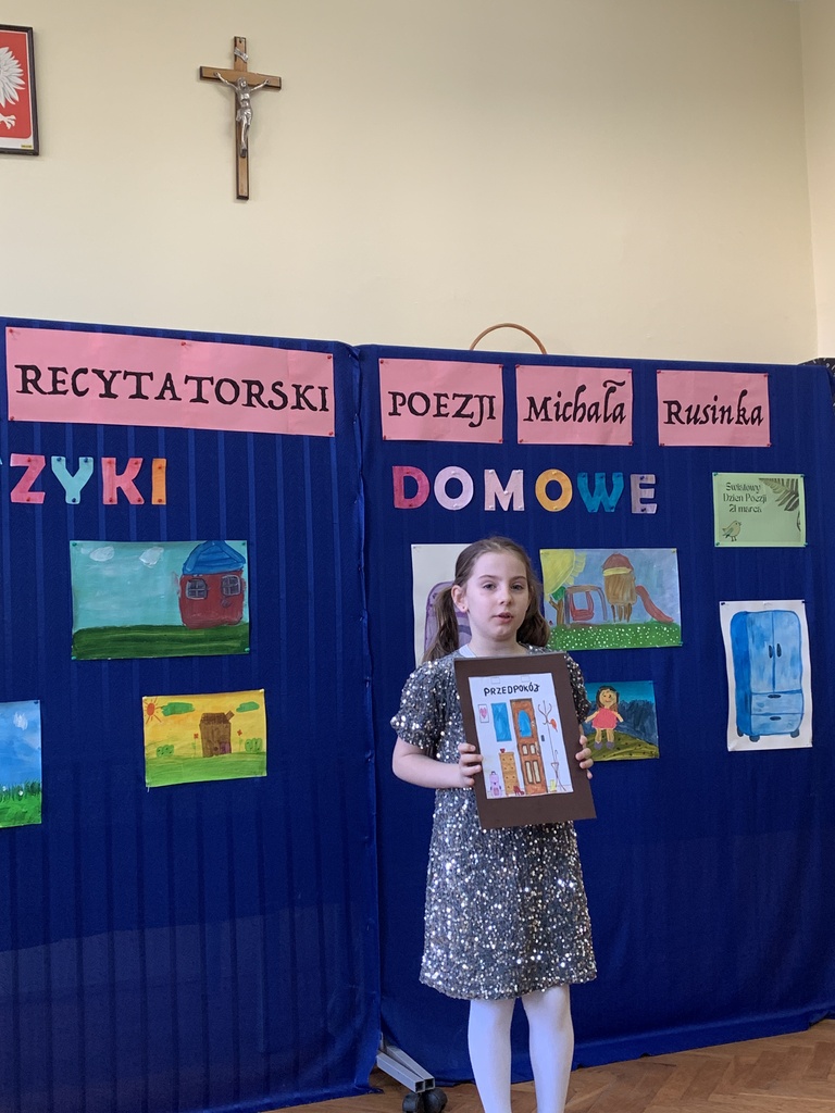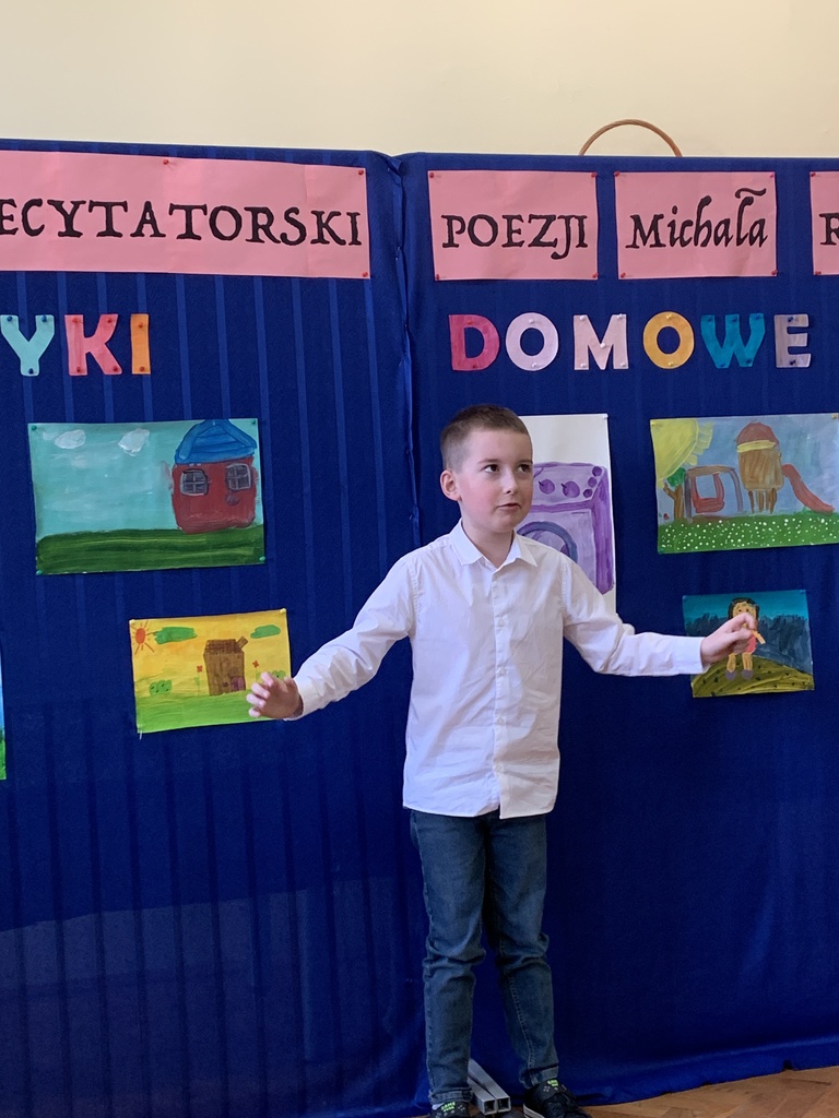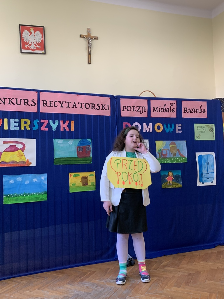 21 marca 2025r. obchodziliśmy Światowy Dzień Poezji, z tej okazji w naszej szkole odbył się Konkurs Recytatorski Poezji Michała Rusinka. Wzięły w nim udział dzieci z klas I-III. Recytowały wiersze z serii "Wierszyki domowe". Były więc wiersze o misiu, łopacie do śniegu, pralce, tosterze czy progu. Komisja konkursowa, pod przewodnictwem pani dyrektor Lukrecji Chochlińskiej, po przeliczeniu punktów przyznała: