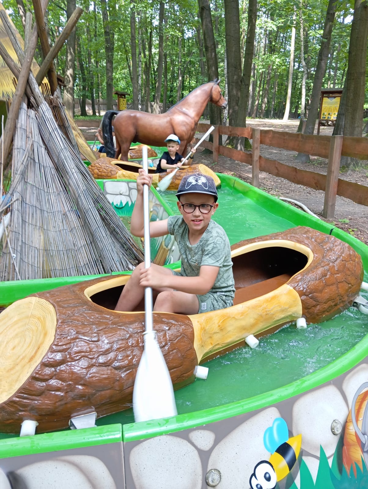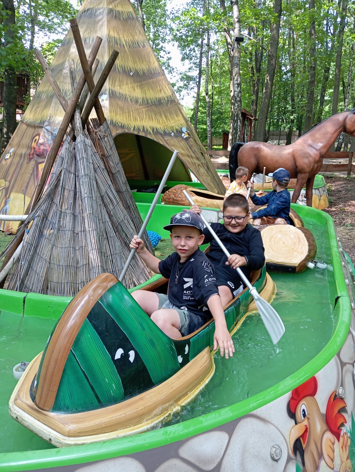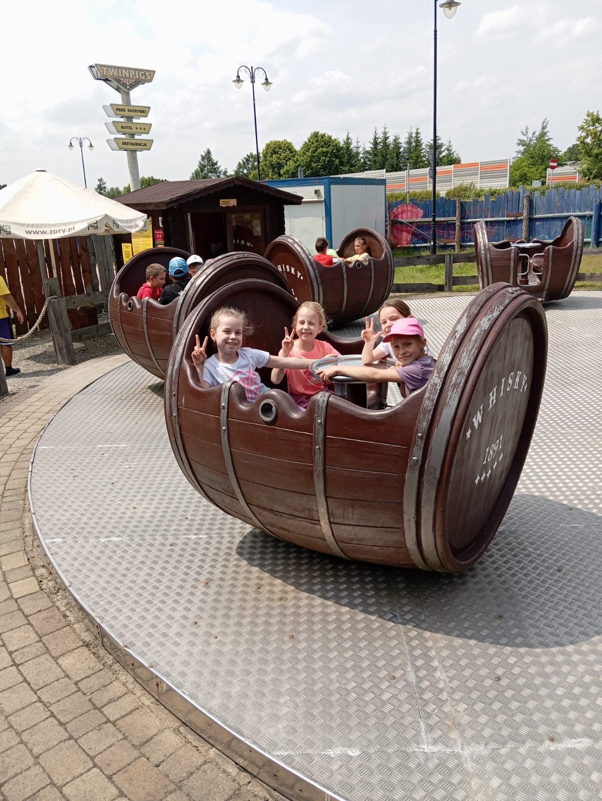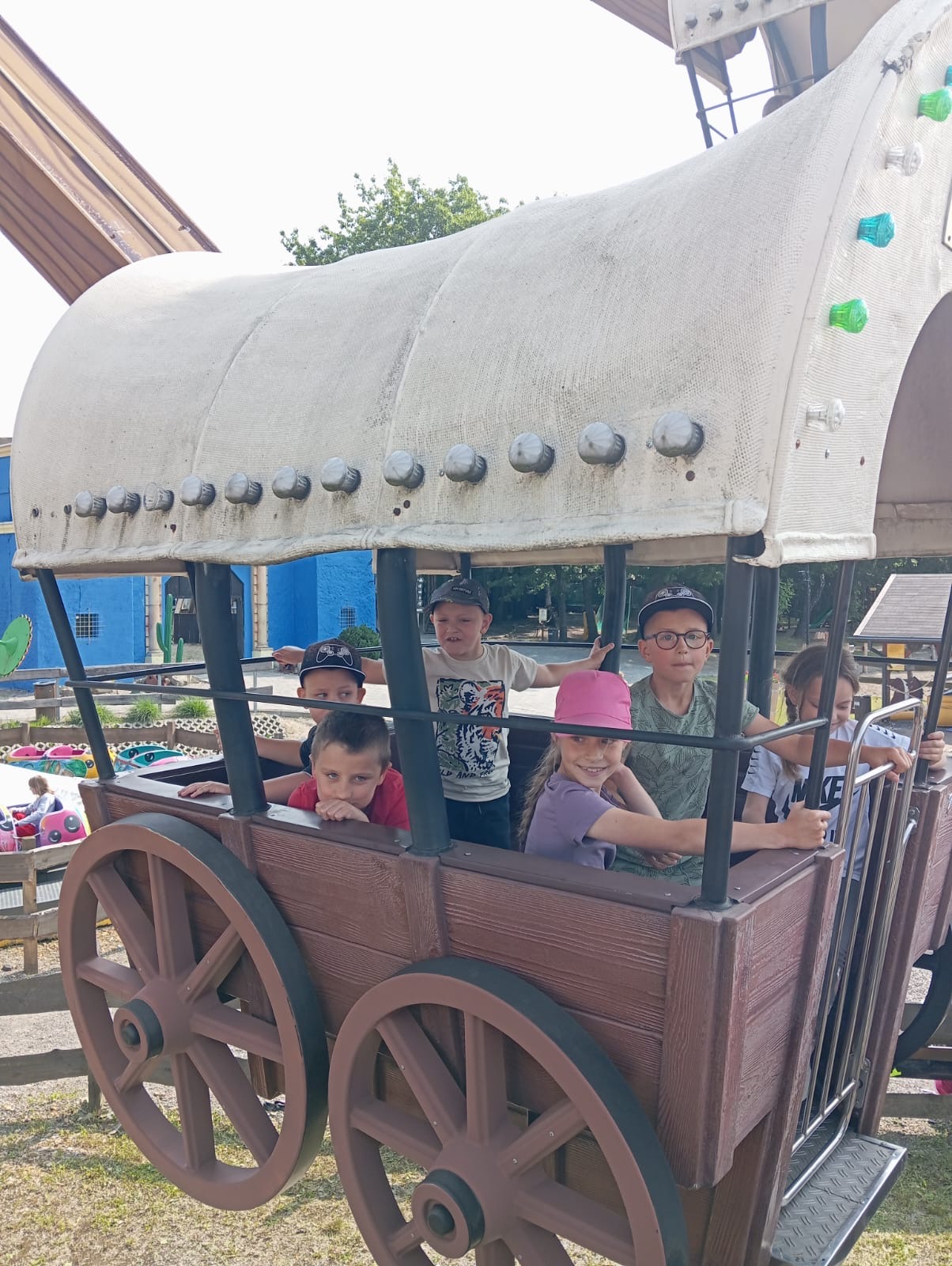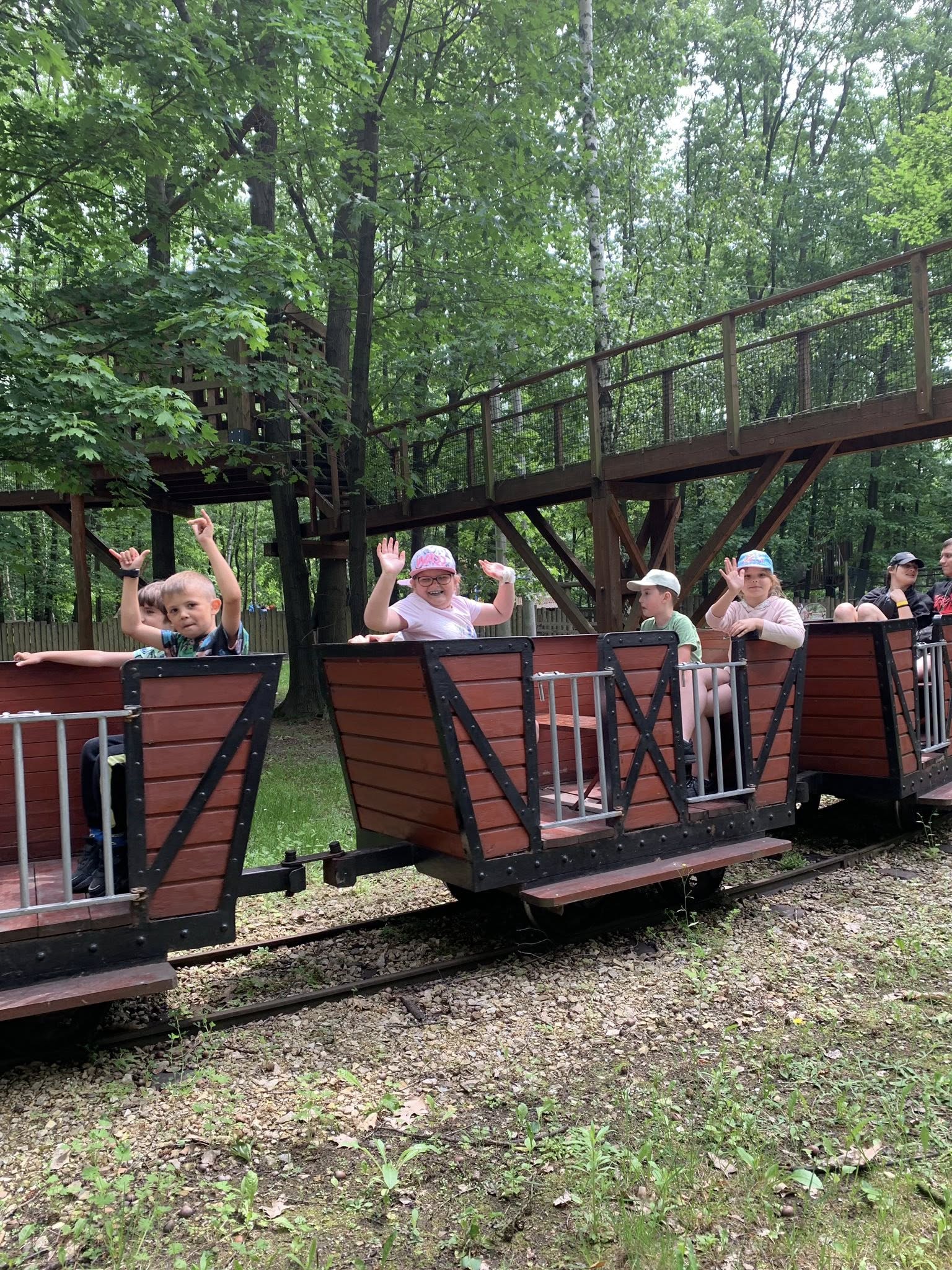 10 czerwca uczniowie z klas I–IV pojechali na wycieczkę do Parku Rozrywki TWINPIGS. Dzieci przez cały dzień korzystały z atrakcji znajdujących się w różnych strefach tematycznych. Poznawały Dziki Zachód, m.in. strzelnicę, ogródek farmera, ranczo. W strefie Powrót do przyszłości jeździły na karuzelach, oglądały filmy w kuli parowej oraz podziwiały widoki na kole młyńskim. Z kolei w Lesie Przygód podróżowały koleją wąskotorową, wspinały się na linach, spacerowały po leśnym molo i pływały łódkami w wiosce indiańskiej. Dzięki wielu różnorodnym atrakcjom uczniowie nie tylko świetnie się bawili, ale przede wszystkim rozwijali zręczność, koordynację ruchową, równowagę oraz uczyli się pokonywać własne lęki.