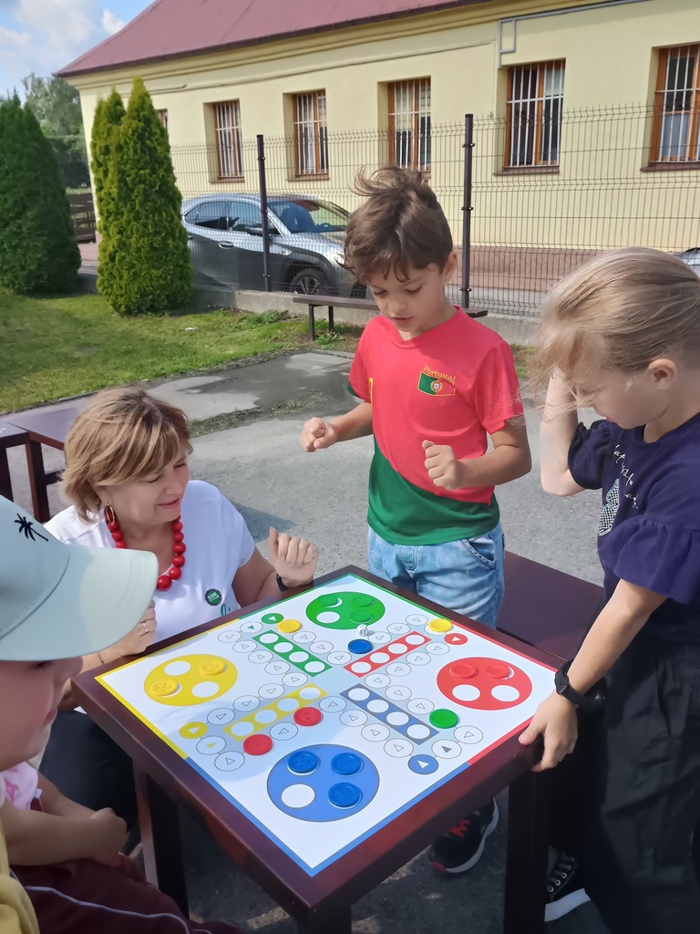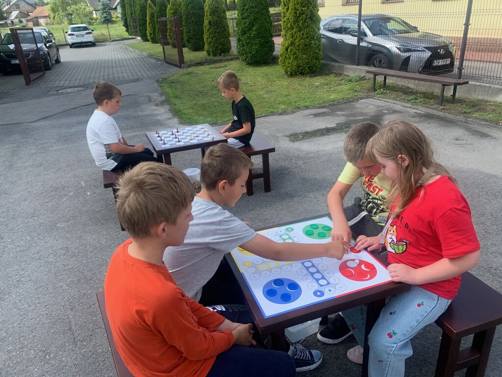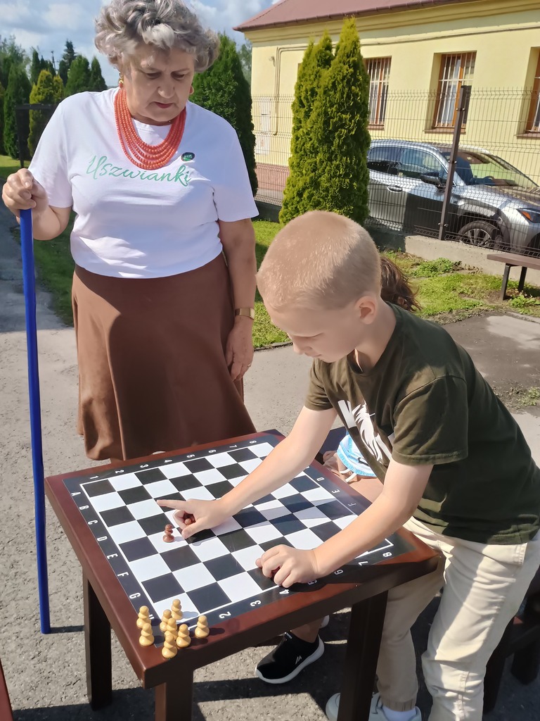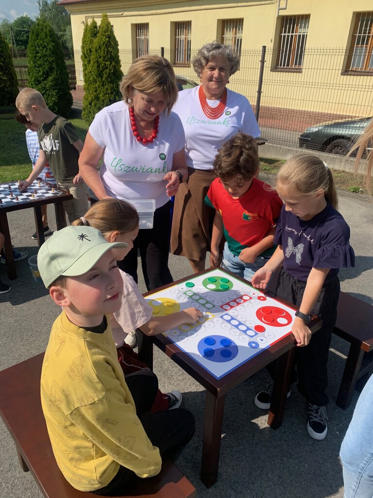 Zabawom uczniów klas I–III towarzyszyli zaproszeni goście. Swoją obecnością zaszczyciła nas Pani Kamila Bielak przedstawicielka głównego sponsora projektu – CRS CANPACK, Panie z Koła Gospodyń Wiejskich Uszwianki oraz Rodzice. Dzieci poznały gry i zabawy swoich babć i dziadków i mogły doświadczyć emocji podczas gry w kapsle, w klasy czy w chińczyka oraz posłuchać opowiadań na temat spędzania czasu wolnego w dzieciństwie swoich przodków.