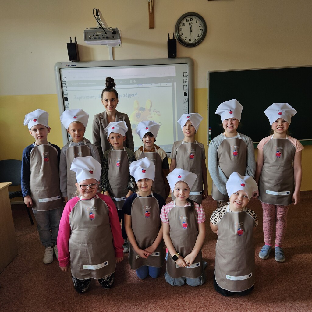 Na zakończenie każdy uczestnik otrzymał fartuszek i kucharską czapkę, co sprawiło dzieciom ogromną radość i pozwoliło poczuć się jak prawdziwi kucharze.