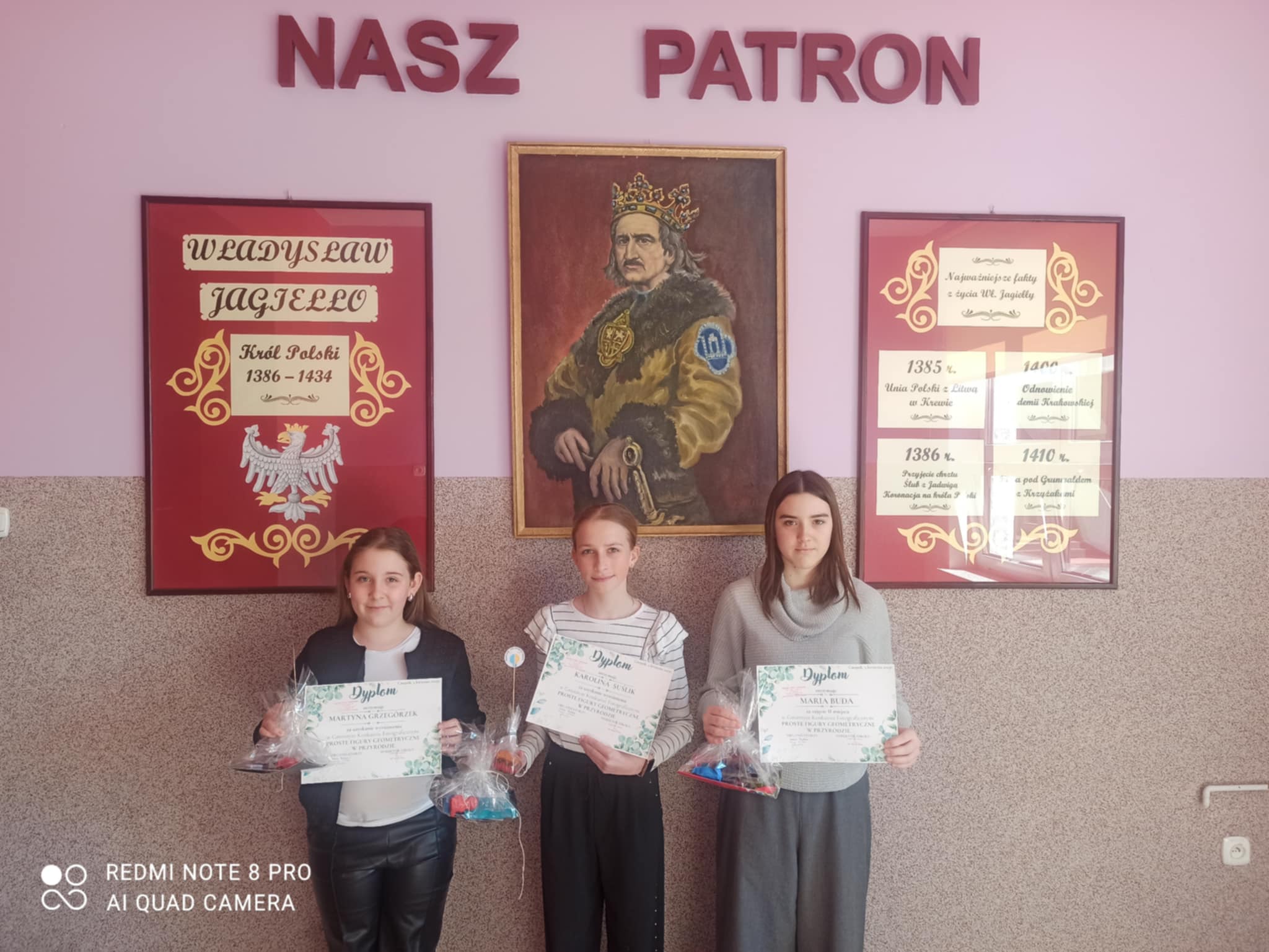 Nasi uczniowie chętnie biorą udział w konkursach organizowanych na terenie naszej gminy. W Gminnym Konkursie Fotograficznym „Proste figury geometryczne w przyrodzie” sukces odniosły trzy uczennice. Maria Buda z klasy VII zajęła II miejsce, a uczennice klasy VI b Martyna Grzegórzek oraz Karolina Suślik zdobyły wyróżnienia.