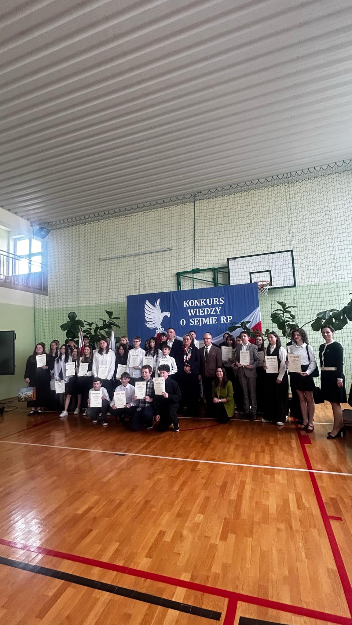 10 kwietnia uczniowie klasy VIII: Aleksandra Rabjasz, Blanka Mech, Mikołaj Świerczek i Kacper Dobranowski reprezentowali naszą szkołę w Konkursie Wiedzy o Sejmie RP, który odbył się w Zespole Szkolno-Przedszkolnym w Lewniowej. Konkurs poprzedziły wykłady dotyczące architektury sejmowej oraz trybu ustawodawczego prowadzone przez przedstawicieli organizatora. Mimo że nie udało się zająć miejsca na podium, udział w konkursie na pewno poszerzył wiedzę naszych uczniów na temat polskiego parlamentaryzmu.