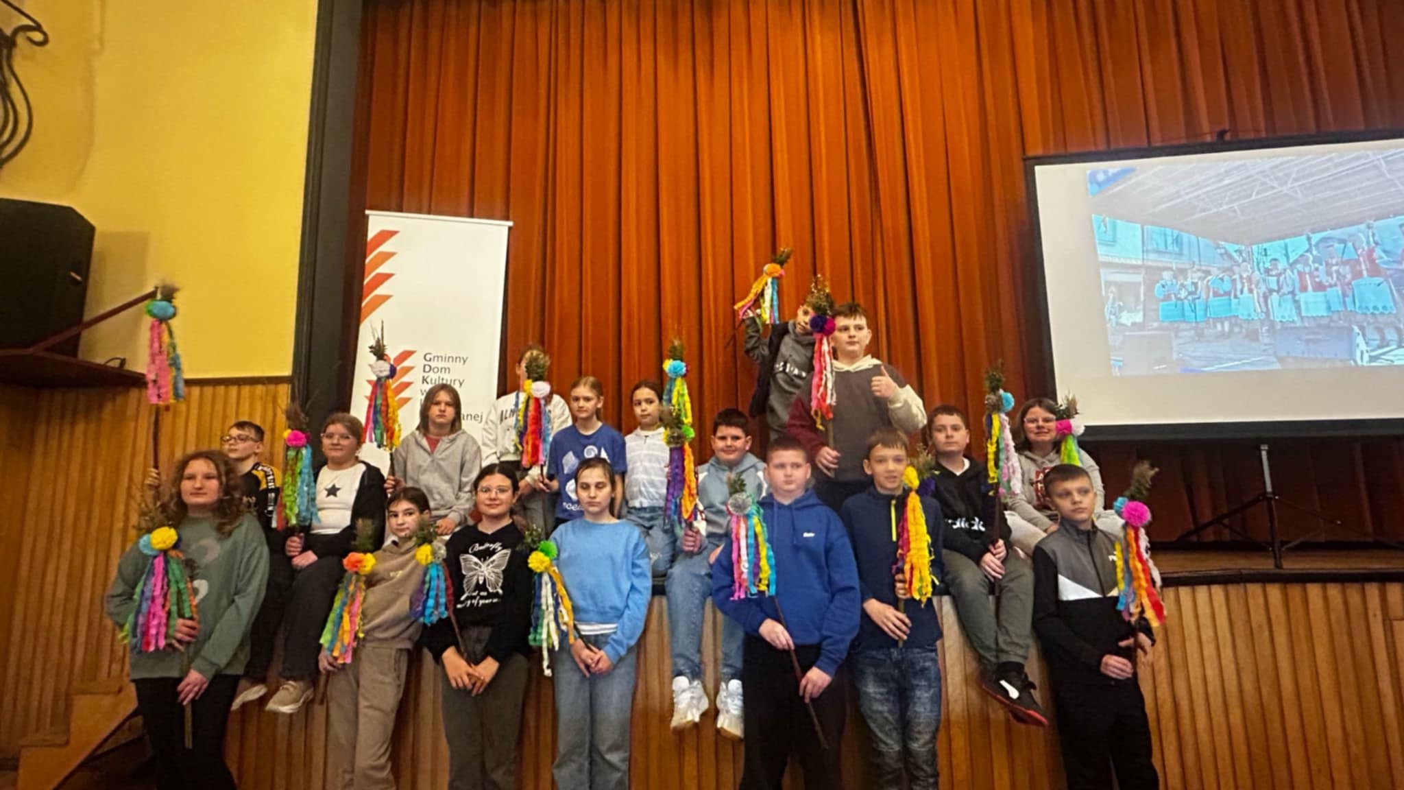 Dnia 2 kwietnia uczniowie klasy 5 wzięli udział w warsztatach regionalnych „Lipnicka palma w tradycji i kulturze” zorganizowanych przez Gminny Dom Kultury w Lipnicy Murowanej. Zapoznali się z historią lipnickiego konkursu palm, obejrzeli archiwalne filmy z Niedzieli Palmowej oraz pod okiem pań instruktorek wykonali palmę, wykorzystując tradycyjne materiały, takie jak: wiklina, trawa stawowa, bazie, bukszpan oraz kwiaty z bibuły. Po zakończeniu warsztatów uczniowie odbyli spacer po centrum Lipnicy i poznali lokalne zabytki.
