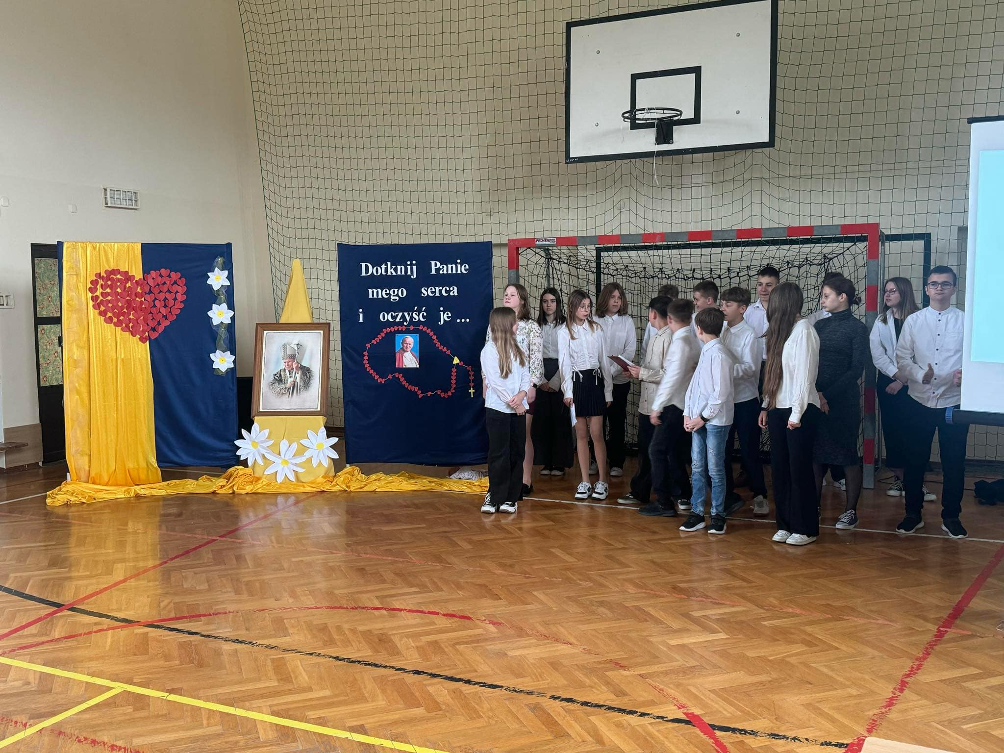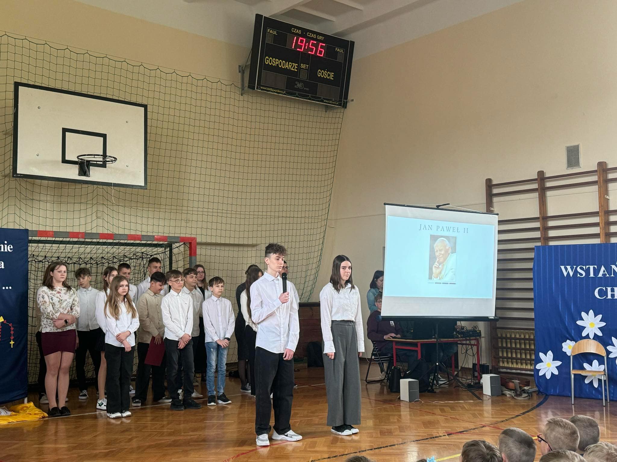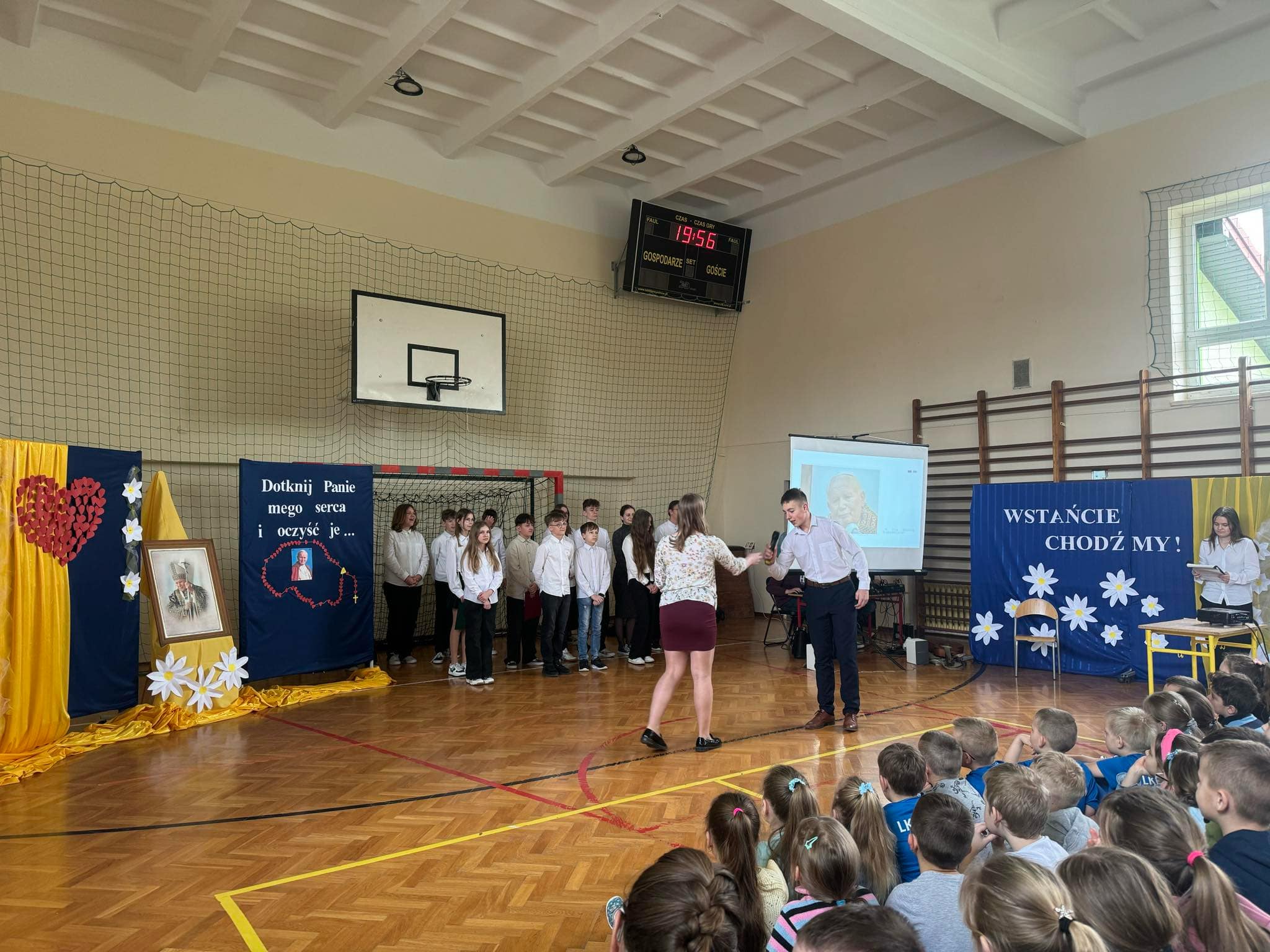 Dnia 2 kwietnia 2025 roku minęło 20 lat od śmierci św. Jana Pawła II, jednej z najbardziej niezwykłych postaci współczesnego świata. Z tej okazji odbyła się w naszej szkole okolicznościowa akademia przygotowana przez uczniów klasy VII. To wyjątkowe wydarzenie miało na celu przypomnienie życia i nauczania Papieża Polaka, które do dziś pozostają inspiracją dla milionów ludzi na całym świecie. Uczniowie zaprezentowali program słowno-muzyczny, na który złożyły się wiersze św. Jana Pawła II, jego wypowiedzi, fragmenty homilii, pieśni bliskie sercu papieża oraz muzyczne interpretacje utworów związanych z jego pontyfikatem wykonane przez młodych artystów.