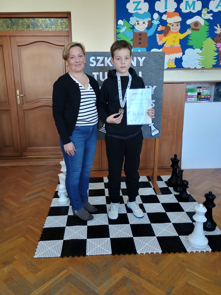 Tytuł Szachowego Mistrza Szkoły klas IV-VI zdobył Jakub Bober ucz. kl.VIa