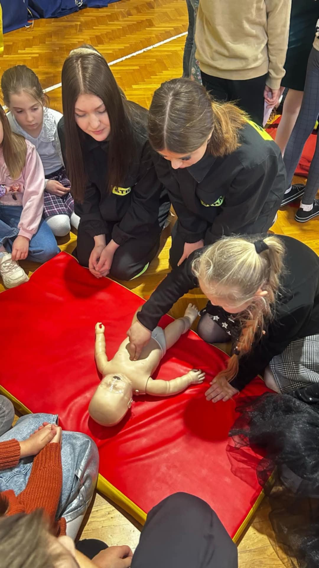 Ostatnim etapem konkursu były warsztaty z pierwszej pomocy, które odbyły się 13 lutego 2025 r. Uczniowie klas I-IV pod okiem strażaków uczyli się podstawowych zasad udzielania pierwszej pomocy. Poznali techniki sprawdzania przytomności, ułożenia w pozycji bocznej bezpiecznej oraz podstawy resuscytacji krążeniowo-oddechowej. Było to niezwykle wartościowe doświadczenie, które może okazać się nieocenione w przyszłości.