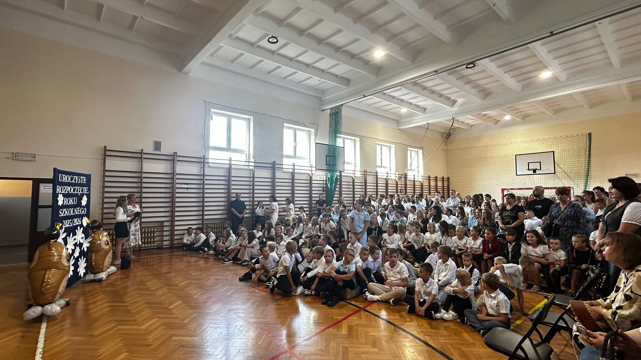 Nowy rok szkolny rozpoczęliśmy od udziału we Mszy św. sprawowanej w naszym parafialnym kościele. Następnie społeczność szkoły zgromadziła się na sali gimnastycznej. Po wprowadzeniu sztandaru i odśpiewaniu hymnu państwowego uczciliśmy chwilą ciszy ofiary II wojny światowej w 86. rocznicę jej wybuchu. Następnie Pani Dyrektor Lukrecja Chochlińska przekazała najważniejsze informacje dotyczące organizacji pracy szkoły oraz życzyła wielu sukcesów – uczniom w nauce, a pedagogom w pracy. Po zakończeniu uroczystości inauguracyjnej uczniowie poszczególnych klas spotkali się z wychowawcami.