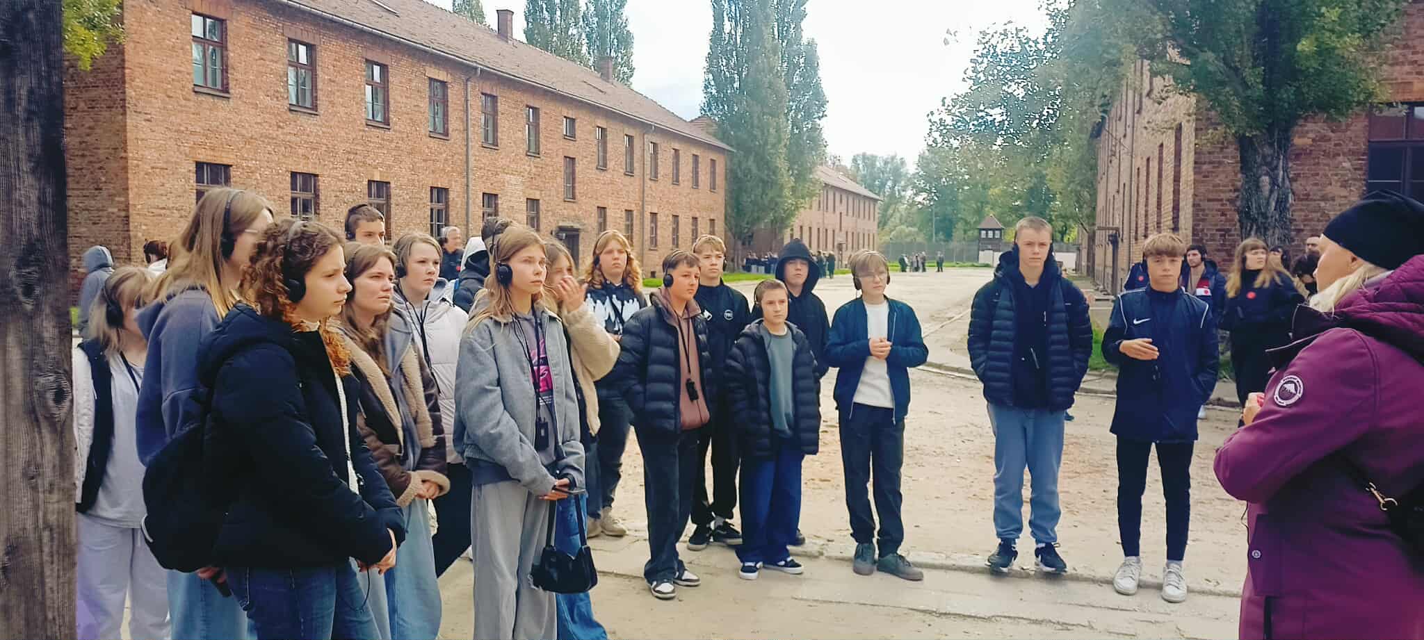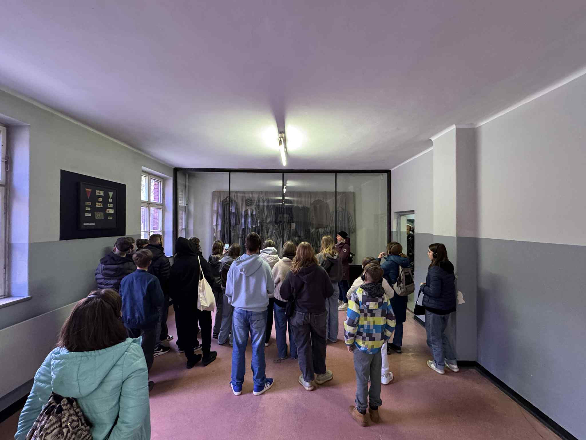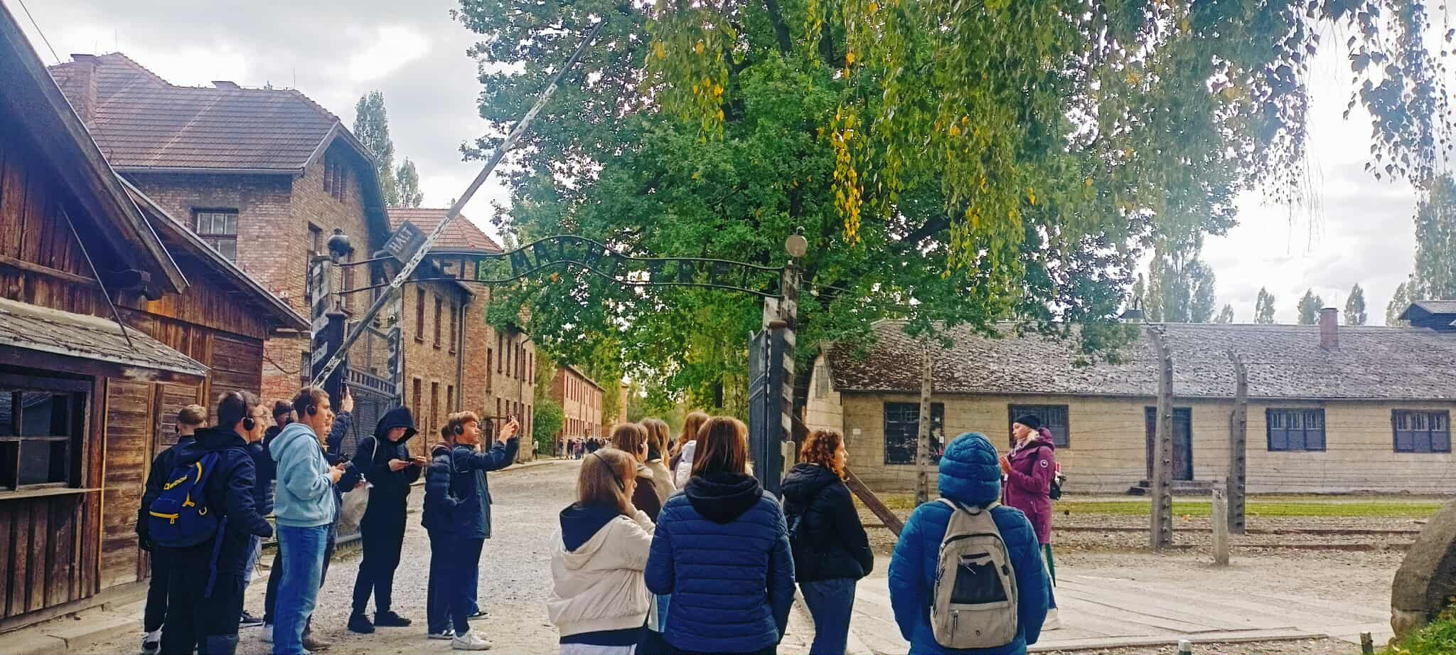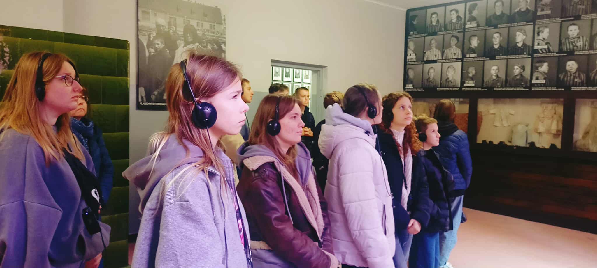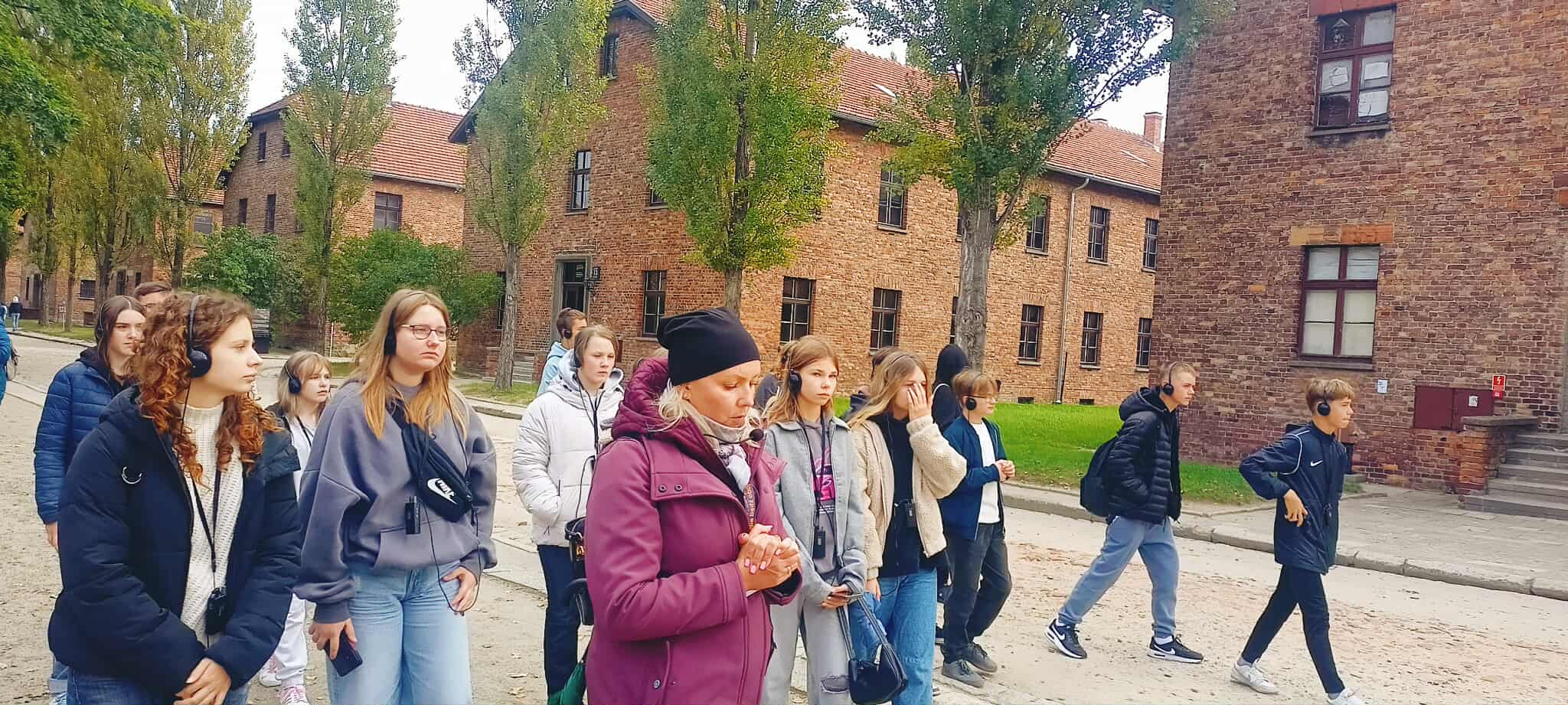 Po przejściu przez bramę z niemieckim napisem „Arbeit macht frei” uczniowie pod opieką przewodnika rozpoczęli zwiedzanie wystawy stałej oraz obiektów na terenie obozu macierzystego Auschwitz I. Następnie udali się do obozu Auschwitz II-Birkenau, gdzie zwiedzili najważniejsze obiekty poobozowe: rampę wyładowczą, ruiny komór gazowych i krematoriów oraz baraki więźniarskie. Odwiedzane miejsca i eksponaty muzealne wywarły ogromne wrażenie na zwiedzających. Była to prawdziwa lekcja historii o tragicznych wydarzeniach z okresu II wojny światowej. Następnie uczniowie wzięli udział w warsztatach „Historia zaklęta w przedmiocie”. W czasie tych zajęć, pod okiem pracownika Muzeum Auschwitz-Birkenau, mieli możliwość poznać historie osób, które przebywały w obozie.