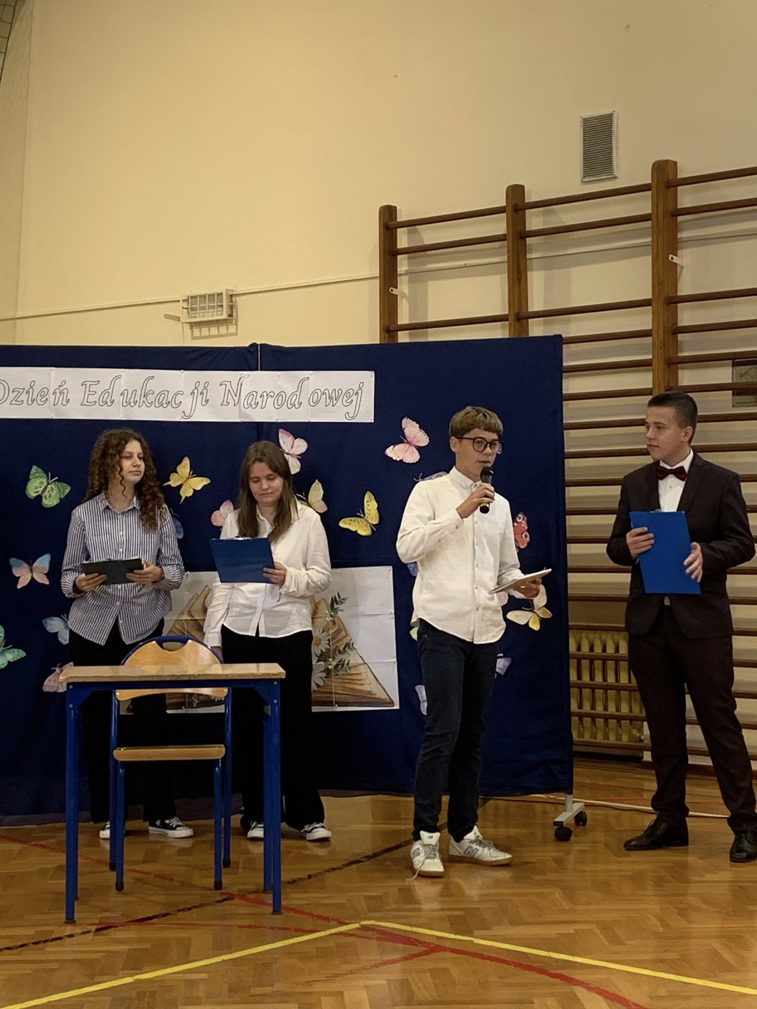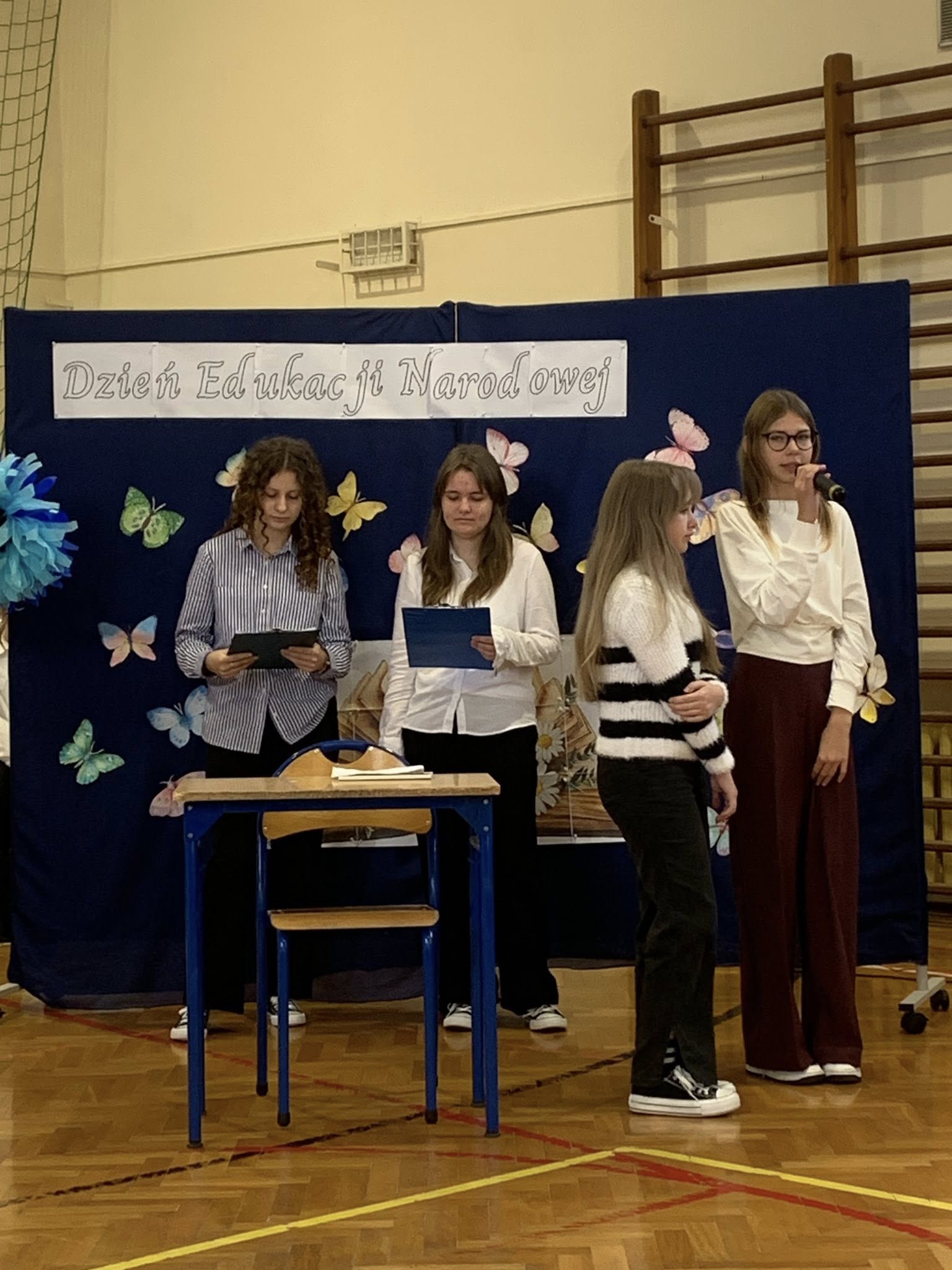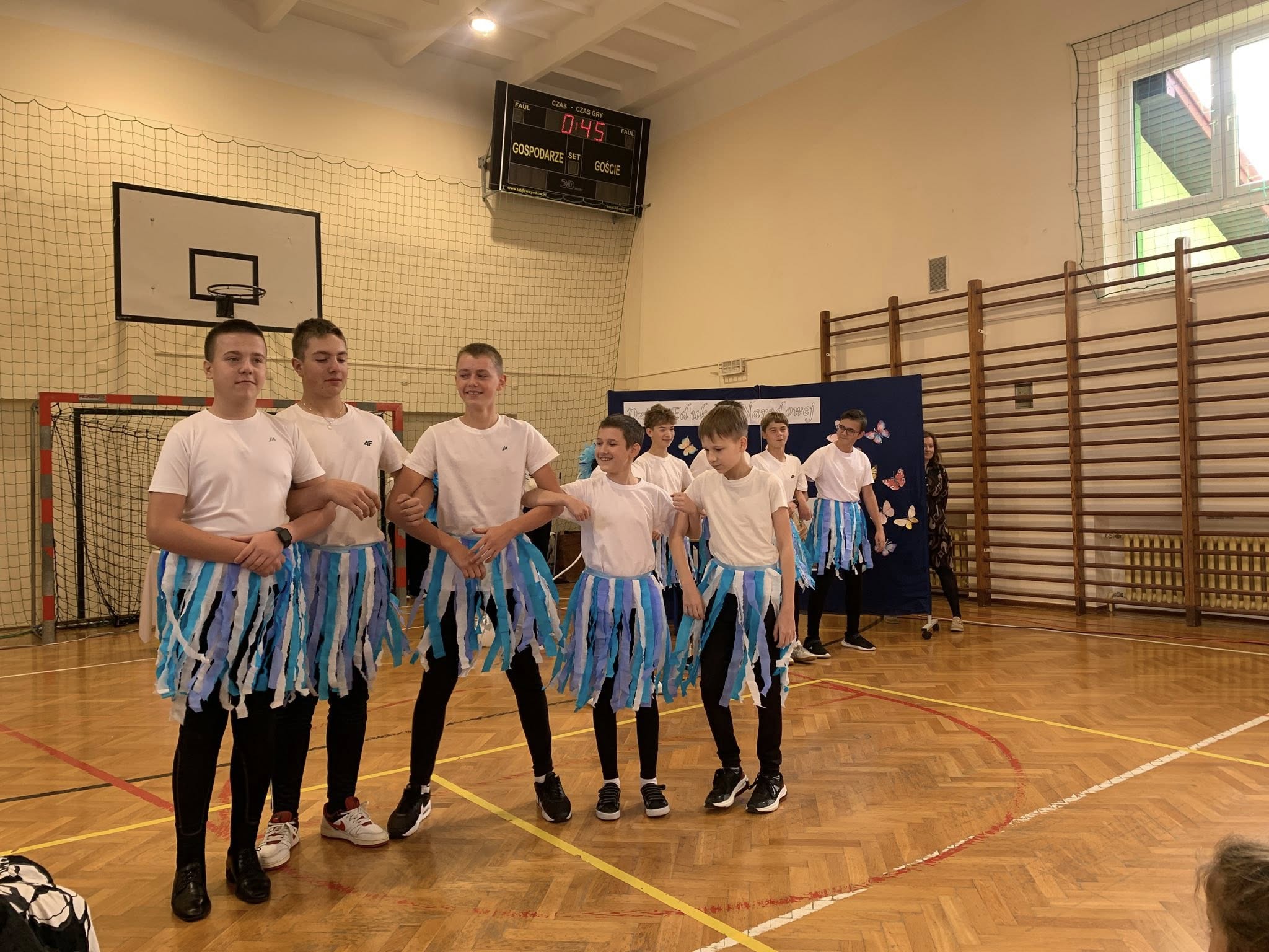 Dnia 13 października w naszej szkole odbyła się uroczysta akademia z okazji Dnia Edukacji Narodowej. Była to doskonała okazja, by wyrazić wdzięczność i szacunek wszystkim pracownikom oświaty za ich codzienny trud, cierpliwość i poświęcenie. Część artystyczną przygotowali ósmoklasiści. Zaprezentowali wiersze, piosenki oraz krótką scenkę, która z przymrużeniem oka pokazała szkolną rzeczywistość. Całość zwieńczył taniec z baletu „Jezioro łabędzie” w wykonaniu chłopców z klasy 8. Podczas uroczystości nie zabrakło więc wzruszających słów i humorystycznych akcentów. Wspólne świętowanie upłynęło w ciepłej, serdecznej atmosferze.