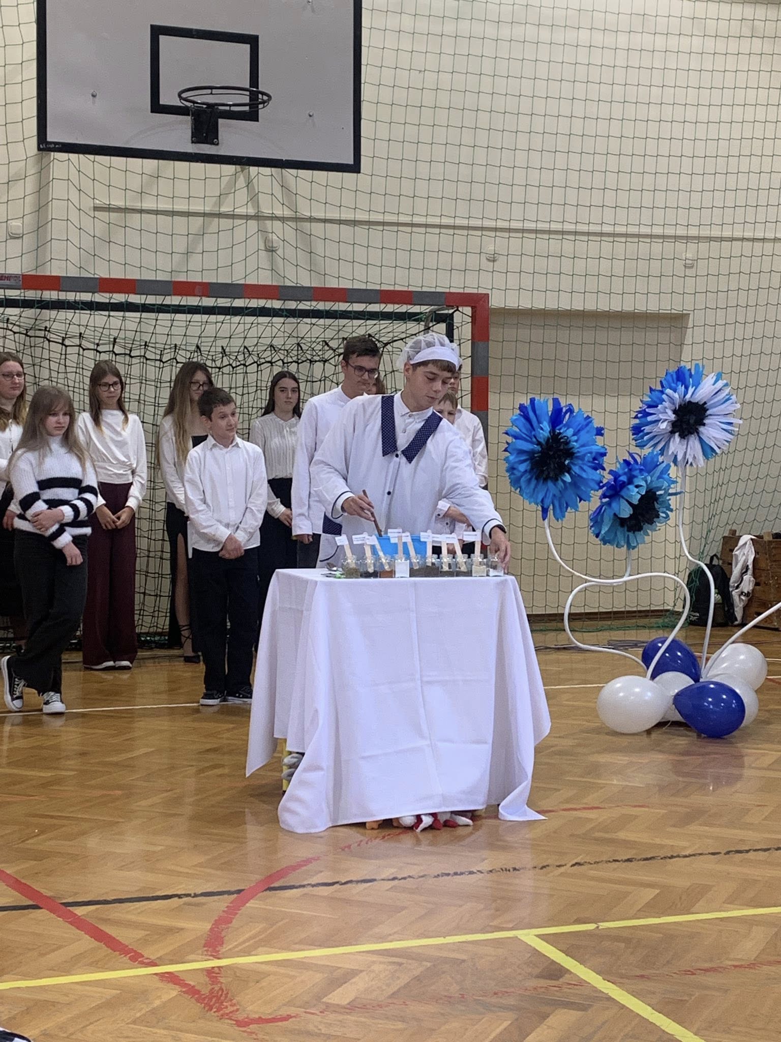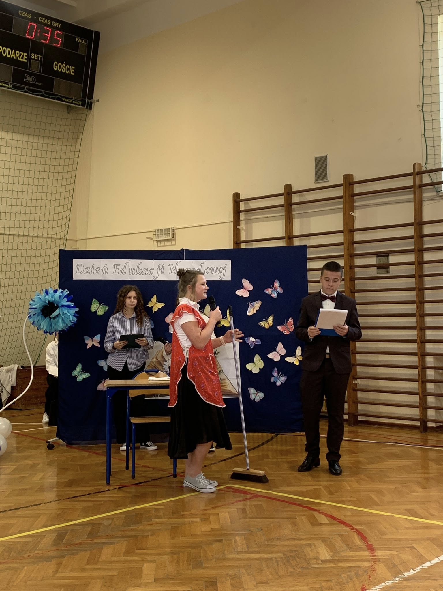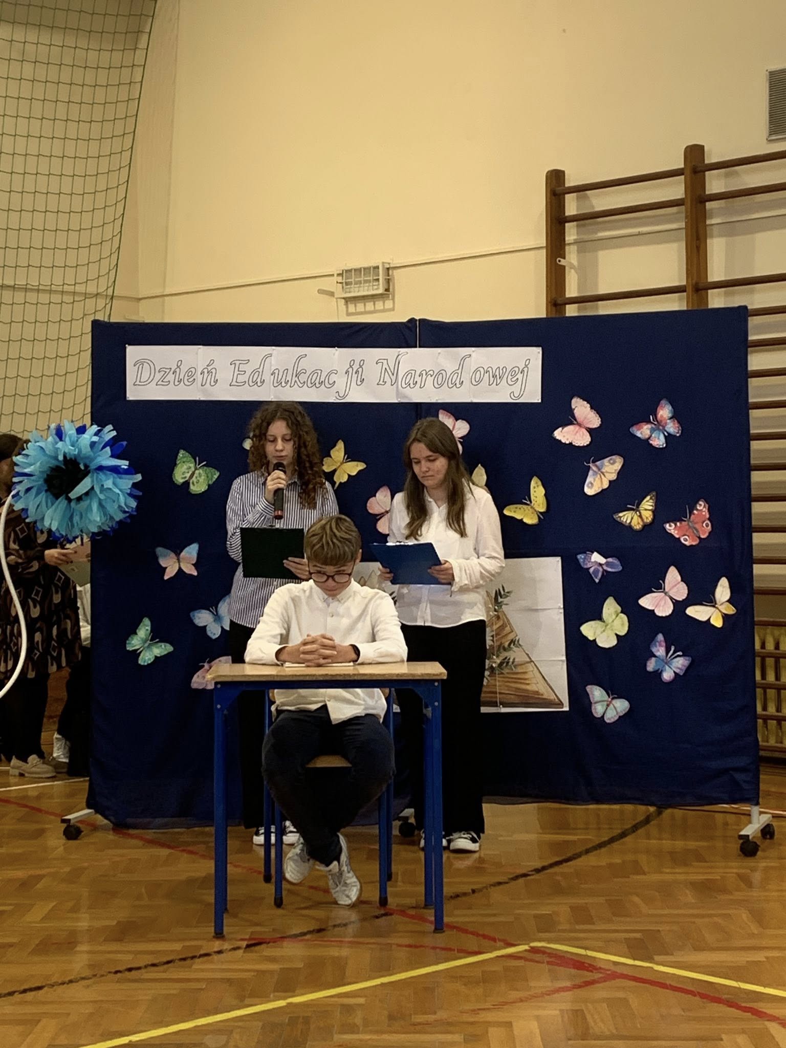 Dnia 13 października w naszej szkole odbyła się uroczysta akademia z okazji Dnia Edukacji Narodowej. Była to doskonała okazja, by wyrazić wdzięczność i szacunek wszystkim pracownikom oświaty za ich codzienny trud, cierpliwość i poświęcenie. Część artystyczną przygotowali ósmoklasiści. Zaprezentowali wiersze, piosenki oraz krótką scenkę, która z przymrużeniem oka pokazała szkolną rzeczywistość. Całość zwieńczył taniec z baletu „Jezioro łabędzie” w wykonaniu chłopców z klasy 8. Podczas uroczystości nie zabrakło więc wzruszających słów i humorystycznych akcentów. Wspólne świętowanie upłynęło w ciepłej, serdecznej atmosferze.