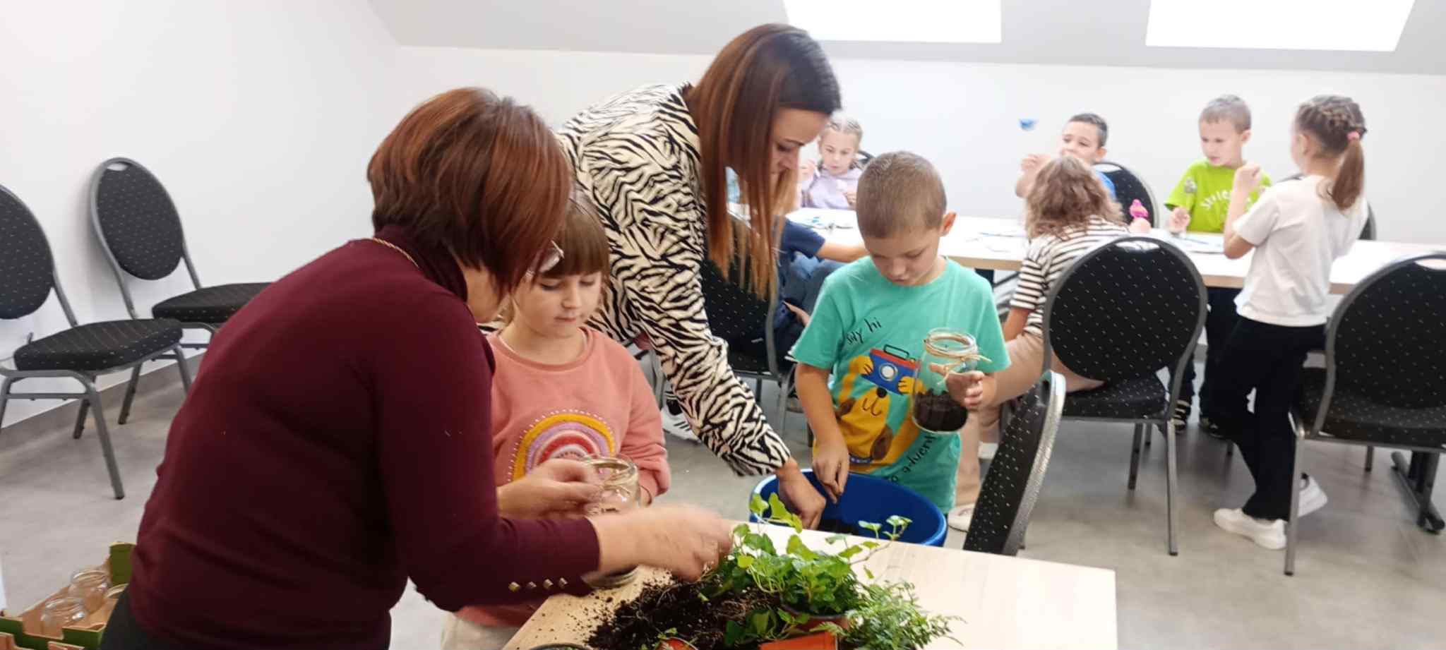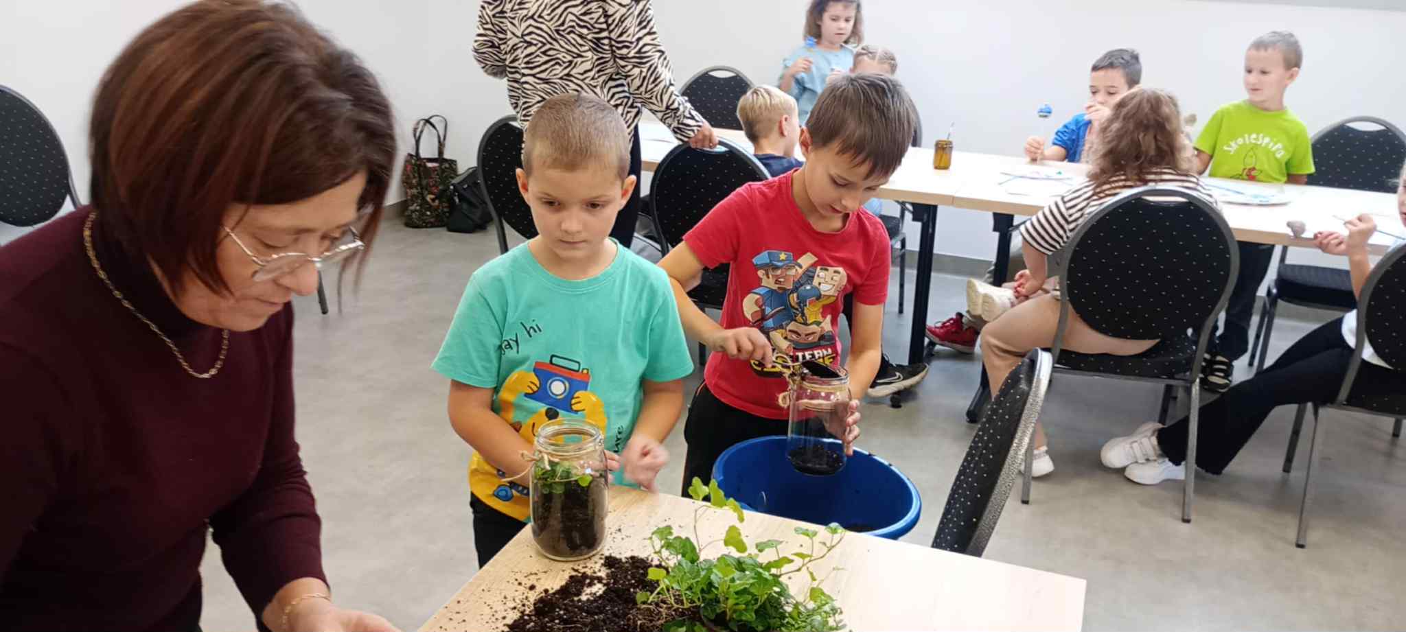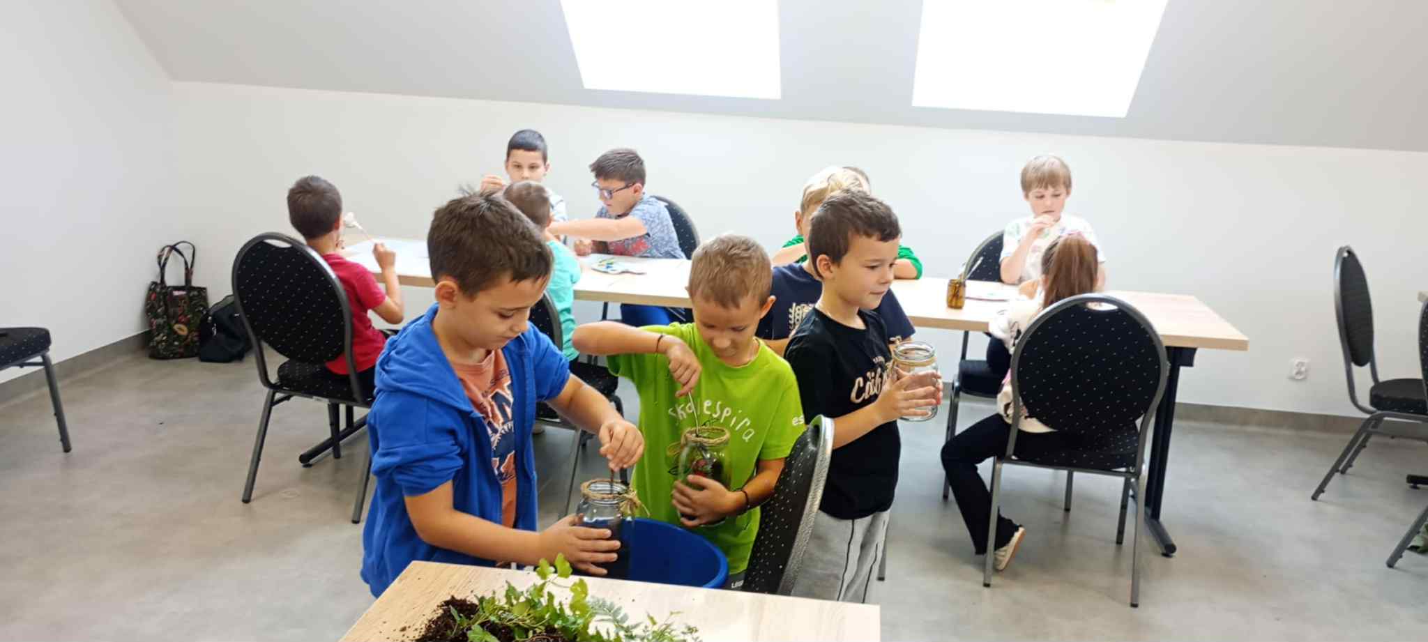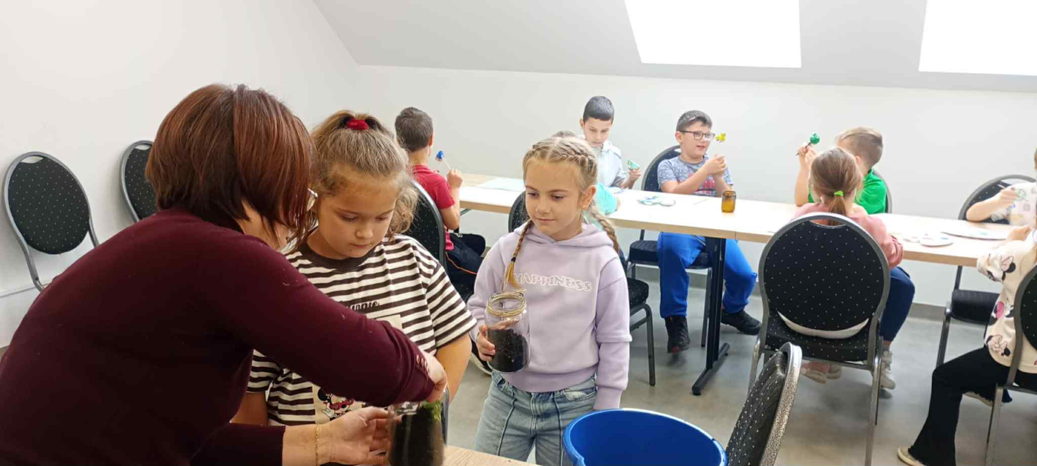27 października uczniowie klas pierwszych wzięli udział w warsztatach ekologicznych pt. „Las w słoiku” zorganizowanych przez Stowarzyszenie „Na Śliwkowym Szlaku”. Zajęcia rozpoczęły się od ciekawej prelekcji, którą poprowadził ekodoradca z gminy Gnojnik. Uczniowie dowiedzieli się, czym jest powietrze i dlaczego jego czystość jest tak ważna dla życia na Ziemi. Rozmawiali o tym, co powoduje zanieczyszczenie powietrza, jakie są rodzaje dymów oraz jakie negatywne skutki dla naszego zdrowia i ogólnego samopoczucia ma smog. Poznali także sposoby, dzięki którym każdy z nas może przyczynić się do poprawy jakości powietrza. Dowiedzieli się, jak należy postępować w dniach, gdy ogłaszane są alerty smogowe. Po części teoretycznej odbyły się zajęcia praktyczne, które poprowadziła pani ze Stowarzyszenia „Na Śliwkowym Szlaku”. Każdy uczeń stworzył swój własny „las w słoiku” – wyjątkową, zieloną kompozycję z ziemią, kamieniami i roślinami. Dzieci również pomalowały farbami gipsowego ptaszka, którego następnie umieściły w swoim słoiku jako ozdobę. Spotkanie było nie tylko doskonałą lekcją ekologii, ale też świetną zabawą i okazją do rozwijania kreatywności.