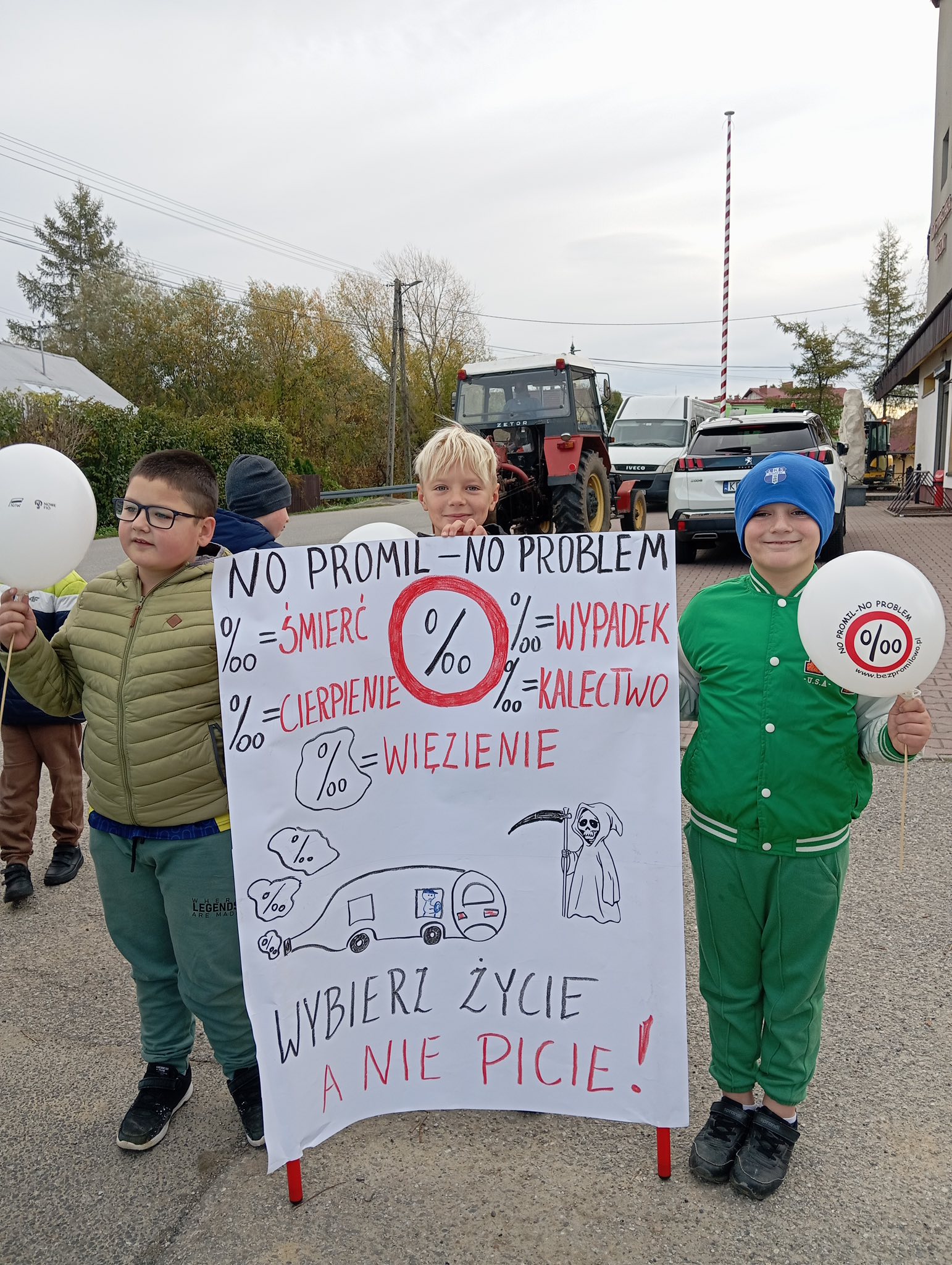 Drugoklasiści z wielkim zaangażowaniem włączyli się również w część plastyczną kampanii – wykonali kolorowe plakaty i hasła promujące trzeźwość, które zachęcały dorosłych do bezpiecznych i rozsądnych decyzji. Ich prace ozdobiły szkolne korytarze i stały się pięknym przypomnieniem, że bezpieczeństwo na drodze zaczyna się od każdego z nas.