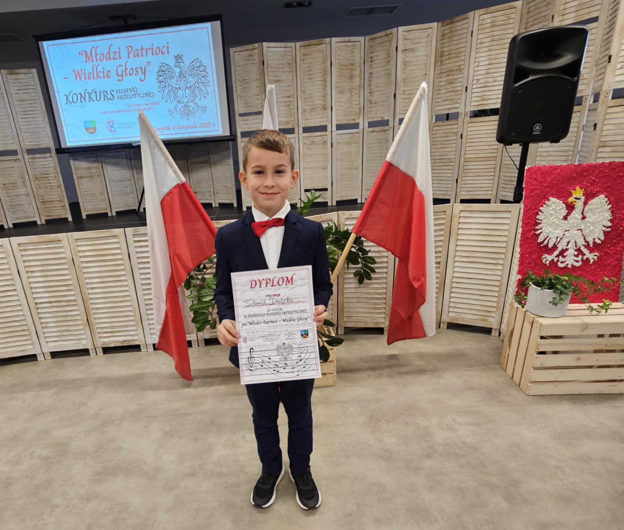 Dnia 4 listopada uczniowie naszej szkoły wzięli udział w gminnym Konkursie Piosenki Patriotycznej „Młodzi patrioci – wielkie głosy” zorganizowanym przez Centrum Kultury w Gnojniku. Celem wydarzenia było kształtowanie postawy patriotycznej oraz rozwijanie talentów artystycznych. Wykonawcy byli oceniani w trzech kategoriach wiekowych. Nasi uczniowie bardzo dobrze zaprezentowali swoje umiejętności wokalne i znaleźli się wśród laureatów konkursu.