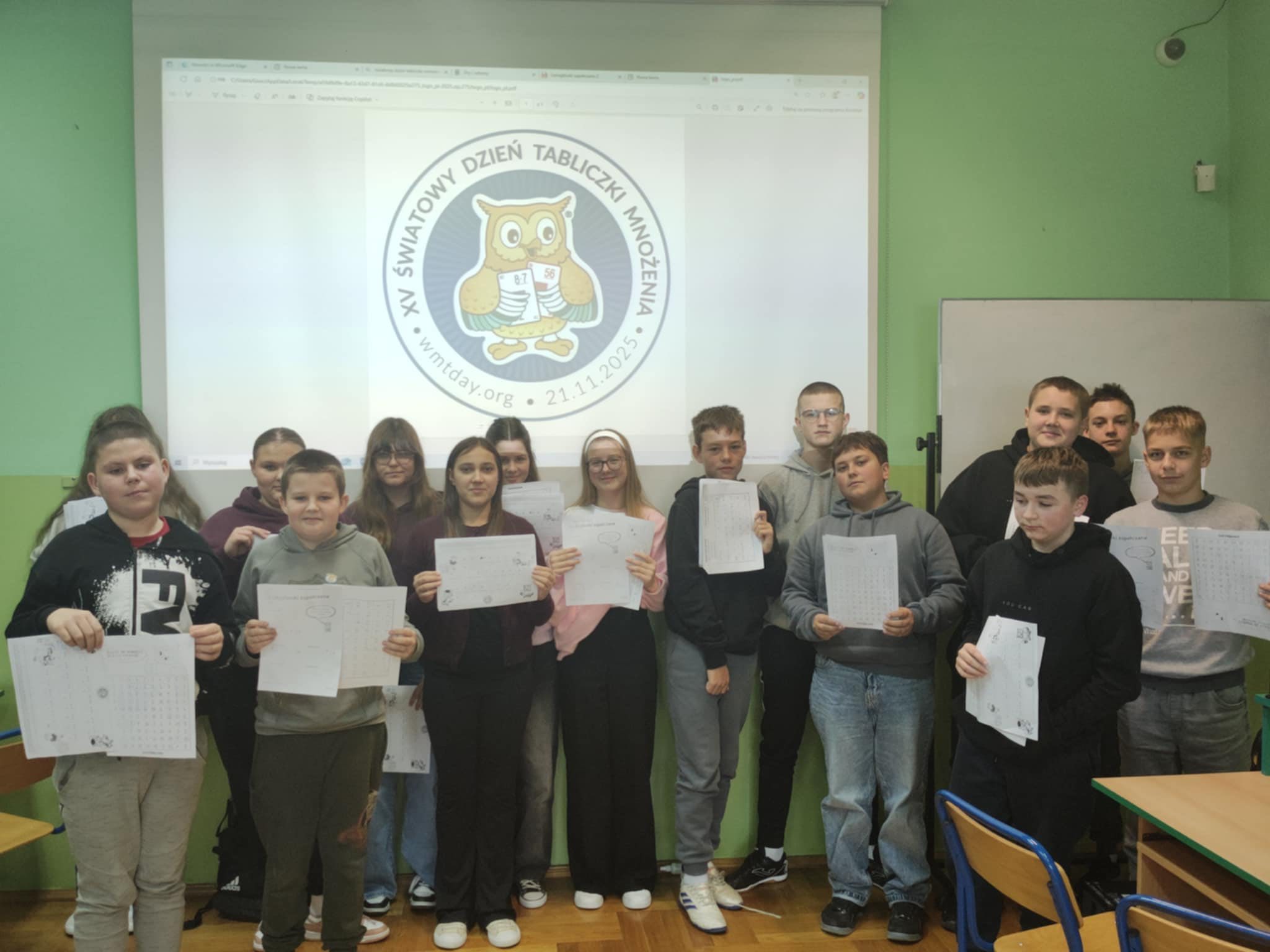 Uczniowie brali udział w różnych aktywnościach – rozwiązywali zadania, łamigłówki i krótkie quizy matematyczne. Dzięki wspólnej zabawie mogli sprawdzić swoją pamięć, poćwiczyć tabliczkę mnożenia oraz przekonać się, że matematyka może być ciekawa i przyjemna.