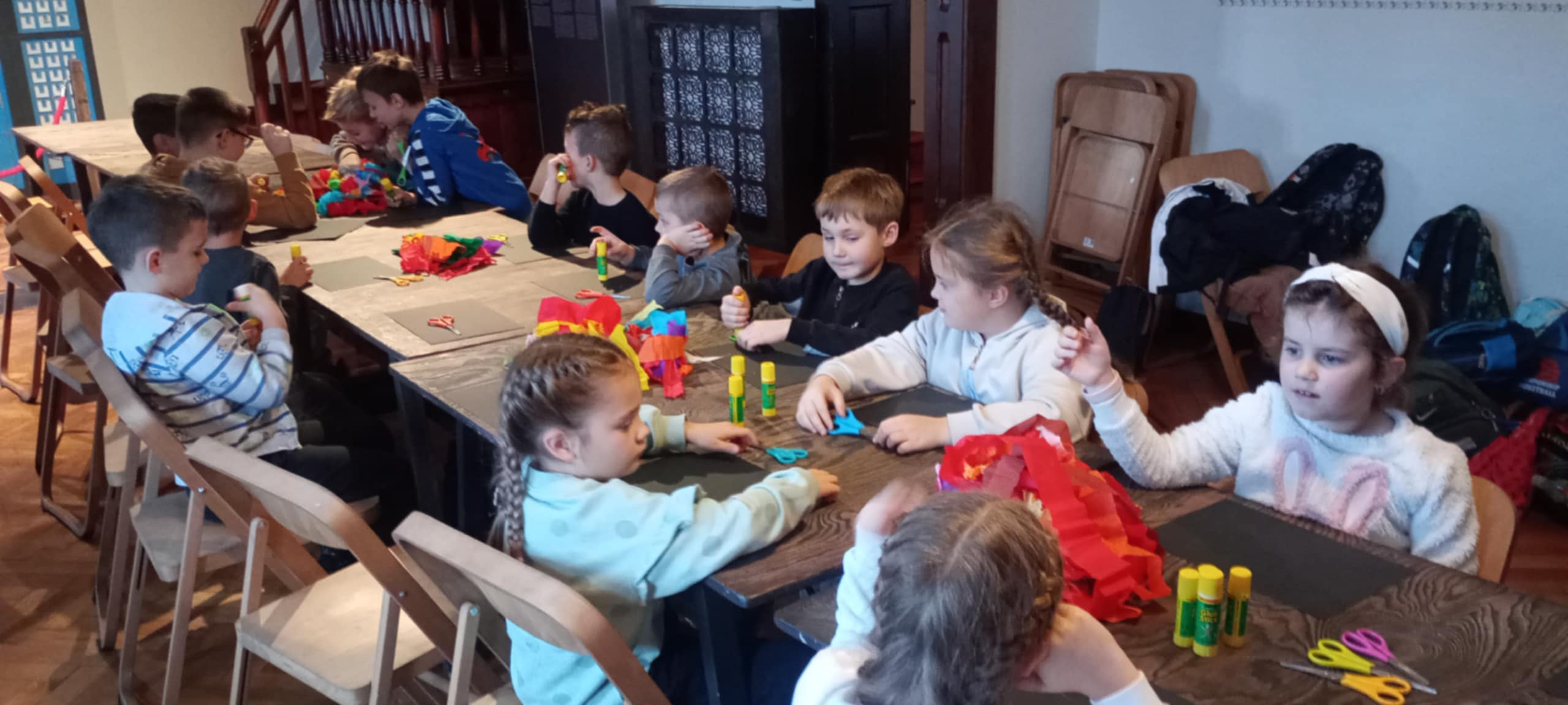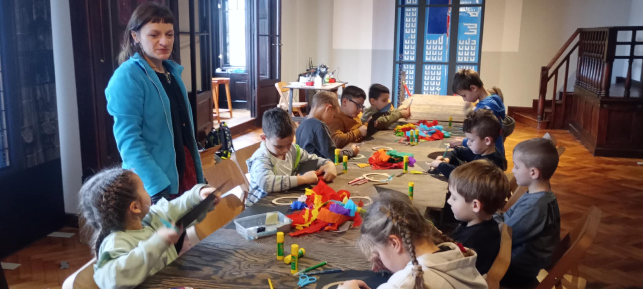 Po zwiedzaniu przyszedł czas na twórczą aktywność. W ramach warsztatów plastycznych każdy uczeń wykonał własną, świąteczną pracę – bombkę stworzoną metodą witrażu. Była to nie tylko świetna zabawa, lecz także okazja do rozwijania wyobraźni, kreatywności oraz zdolności manualnych.
