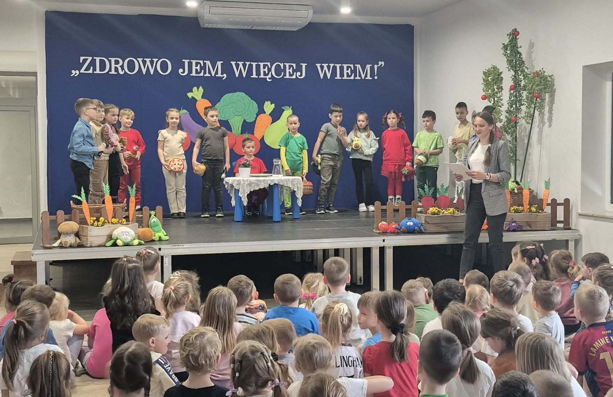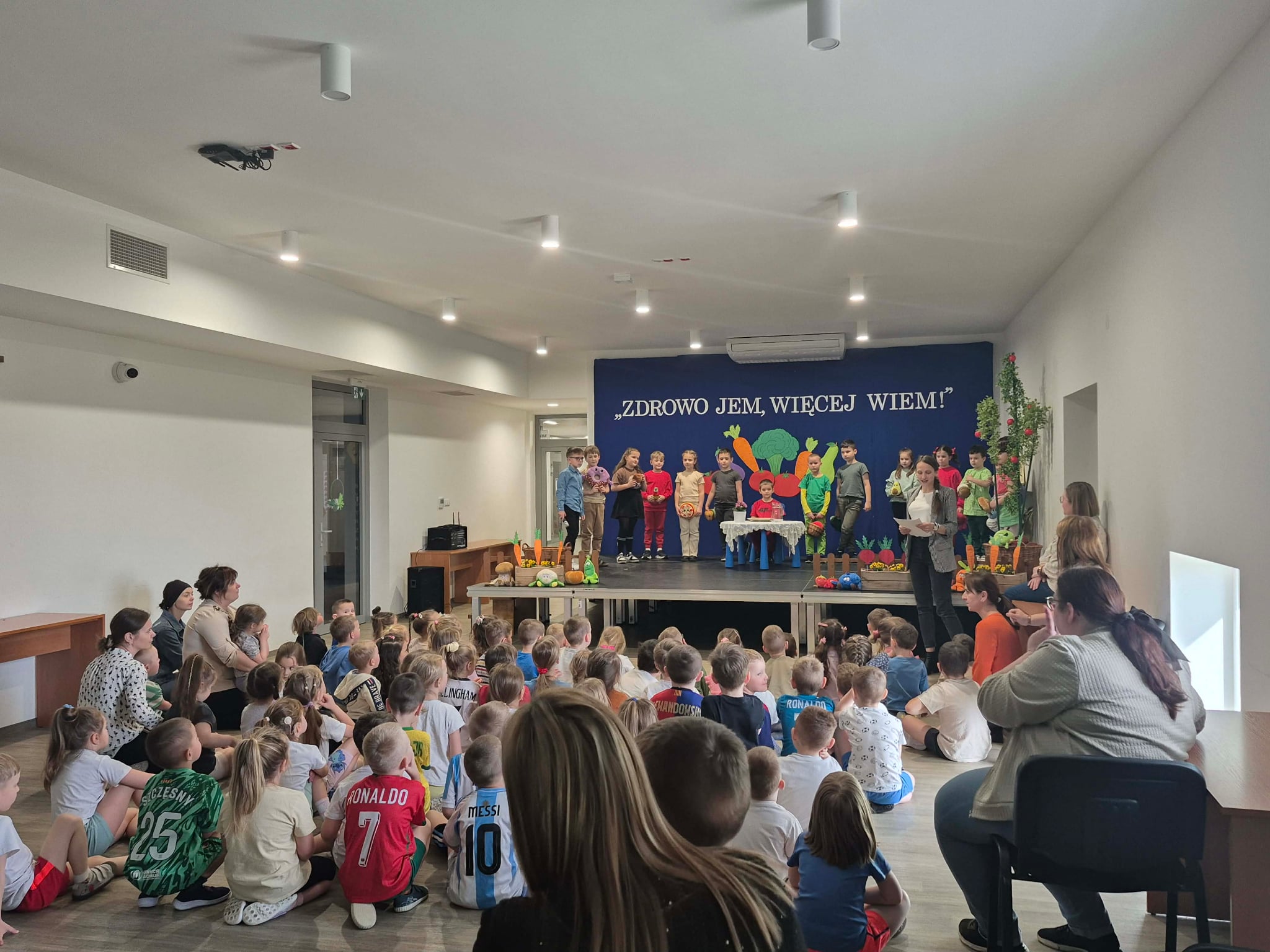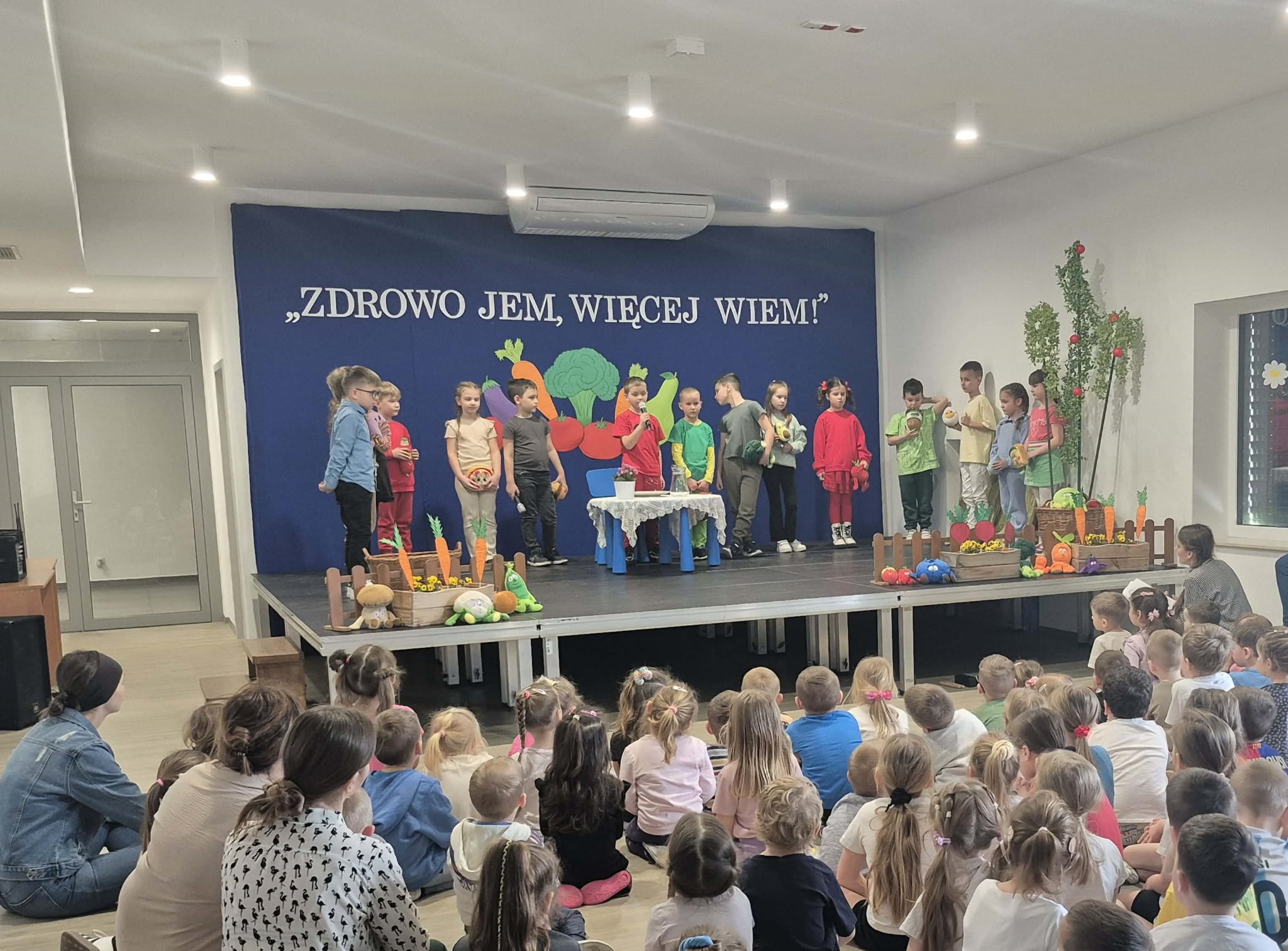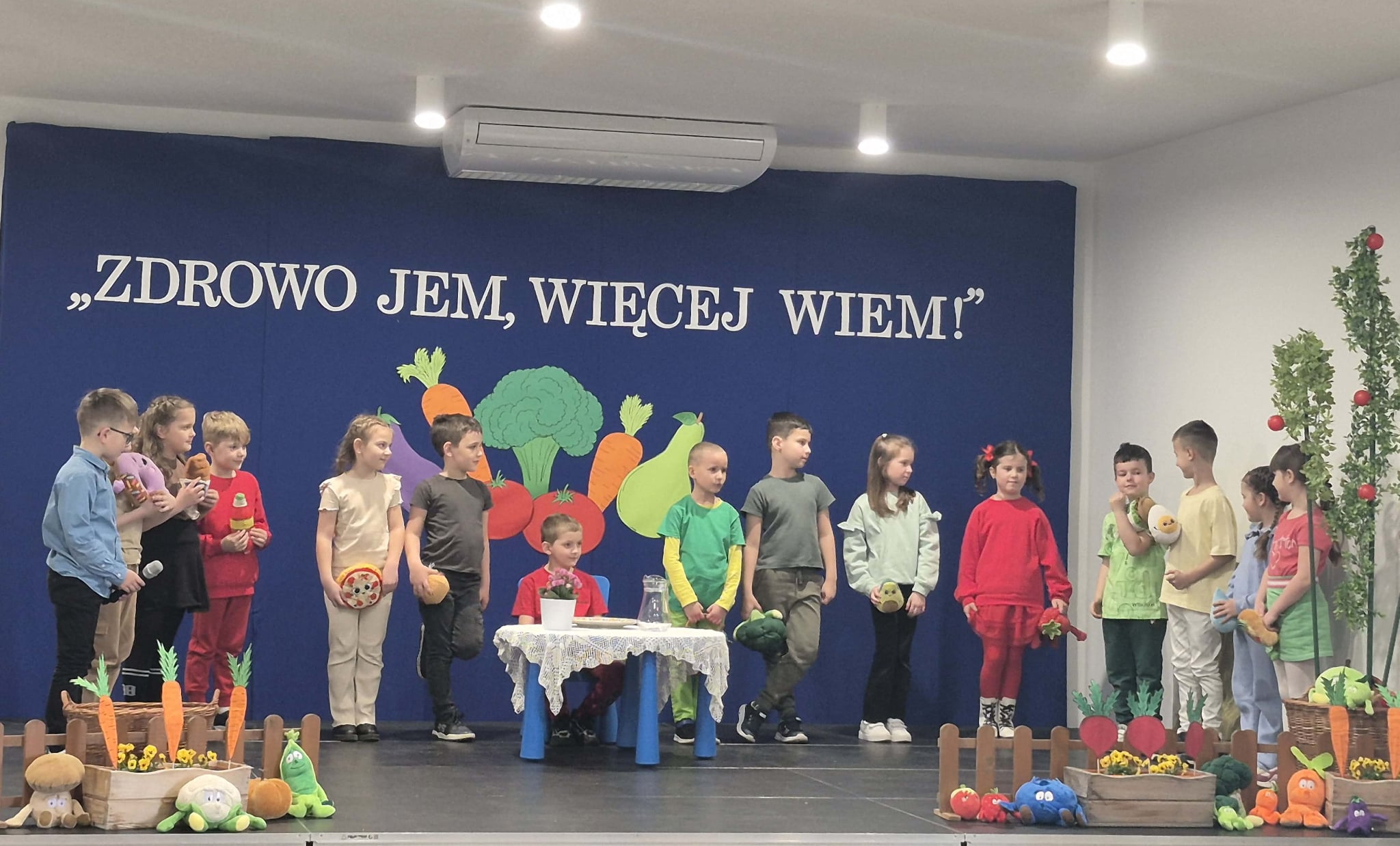 Na zakończenie uczniowie przypomnieli młodszym kolegom i koleżankom, że zdrowy styl życia to nie tylko właściwe odżywianie, ale także ruch i aktywność fizyczna, dlatego finałem występu był energetyczny taniec – cza-cza, który wzbudził wiele radości wśród widzów.