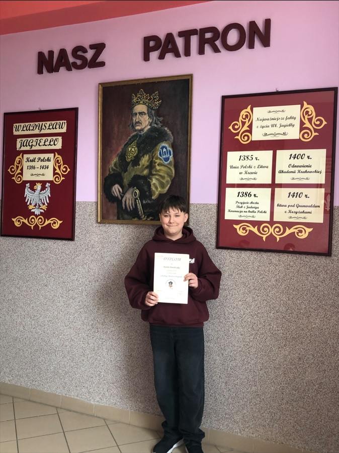 W marcu w naszej szkole odbył się szkolny konkurs ortograficzny skierowany do uczniów klas V – VIII. Ogółem w zmaganiach udział wzięło 18 uczestników. Zwycięzcą okazał się uczeń klasy VII b Karol, który otrzymał tytuł Szkolnego Mistrza Ortografii, dyplom oraz nagrodę rzeczową. Pozostałym uczestnikom wręczono drobne upominki. Wszystkim uczniom dziękujemy za udział w konkursie, życzymy wytrwałości w poznawaniu polskiej ortografii, a zwycięzcy gratulujemy.