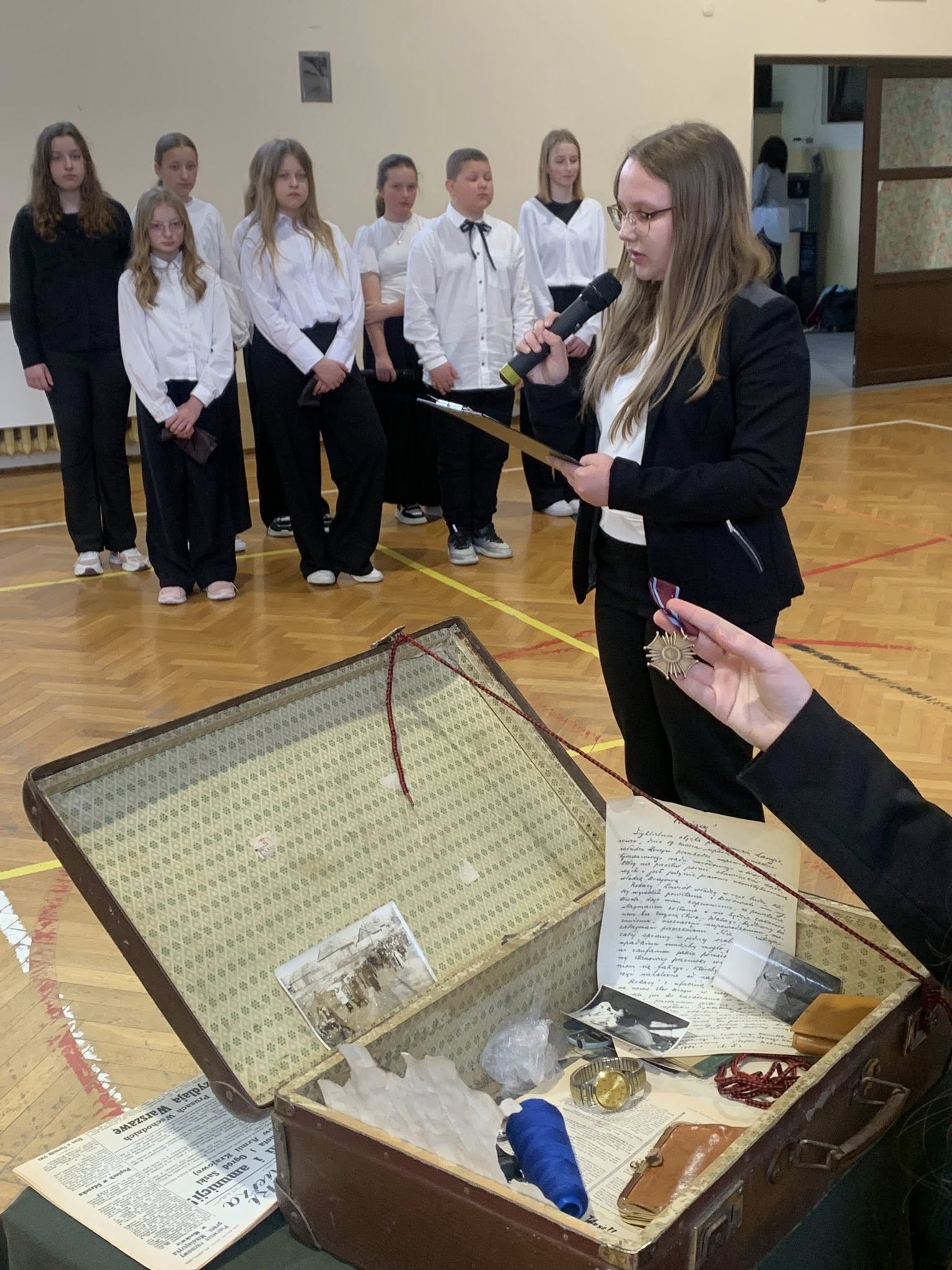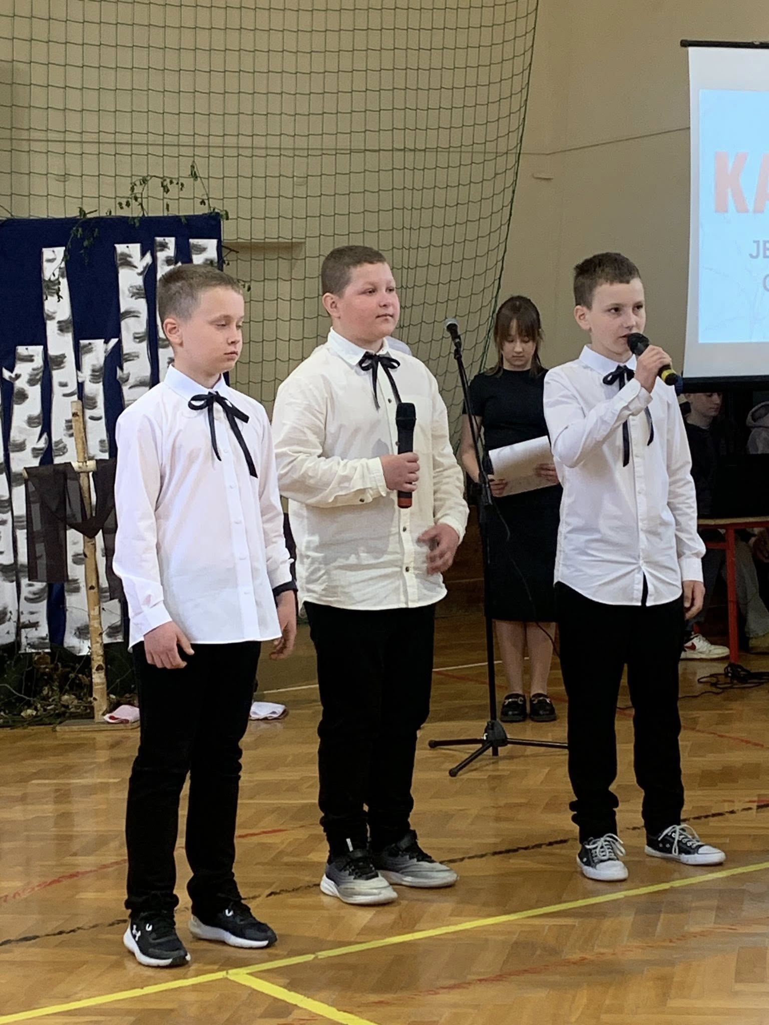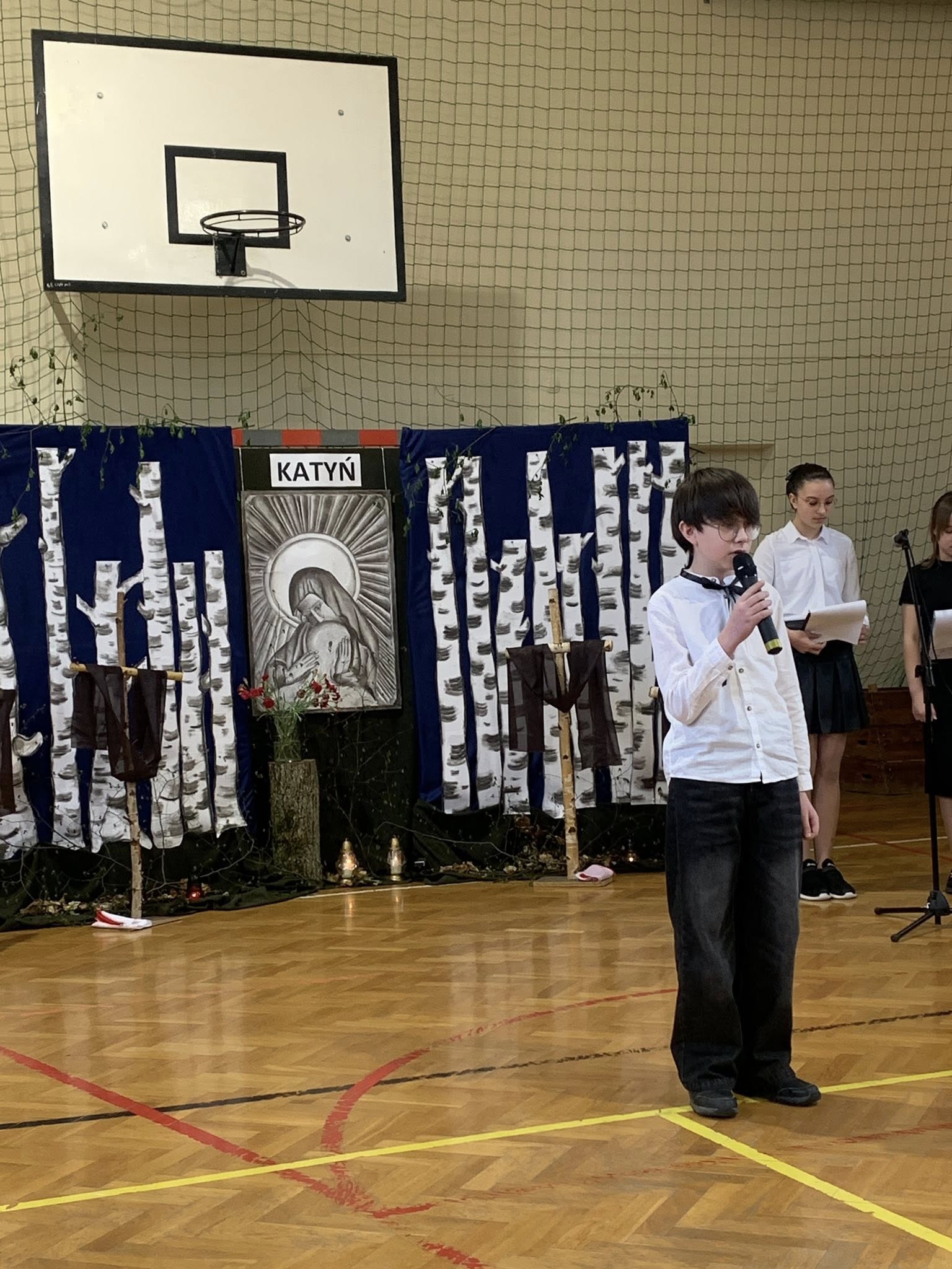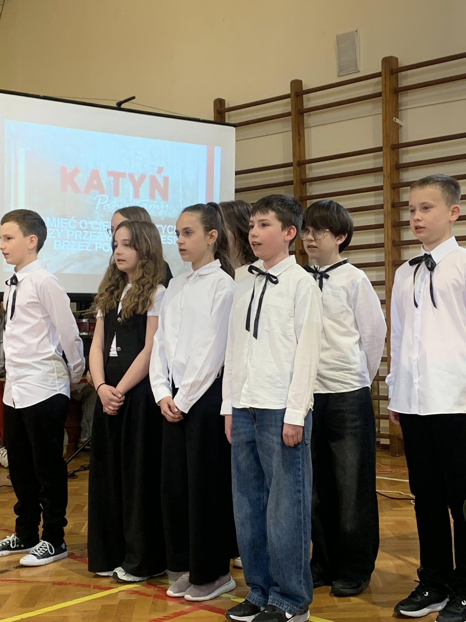 W środę 15 kwietnia społeczność naszej szkoły wzięła udział w akademii poświęconej pamięci polskich jeńców wojennych zamordowanych w 1940 roku w Katyniu, Charkowie, Miednoje i innych miejscach zbrodni. Wzruszający montaż słowno – muzyczny pt. „Katyń” przygotowali uczniowie klasy V a, V b oraz klasy VII b. Do aktu ludobójstwa ponad 22 tysięcy polskich obywateli: oficerów, policjantów, ale też lekarzy, naukowców, artystów, którego dopuściło się strzałem w tył głowy NKWD, Związek Radziecki przyznał się dopiero 13 kwietnia 1990 r. Prawda o jednym z najsmutniejszych wydarzeń w historii Polski nie może być zapomniana.