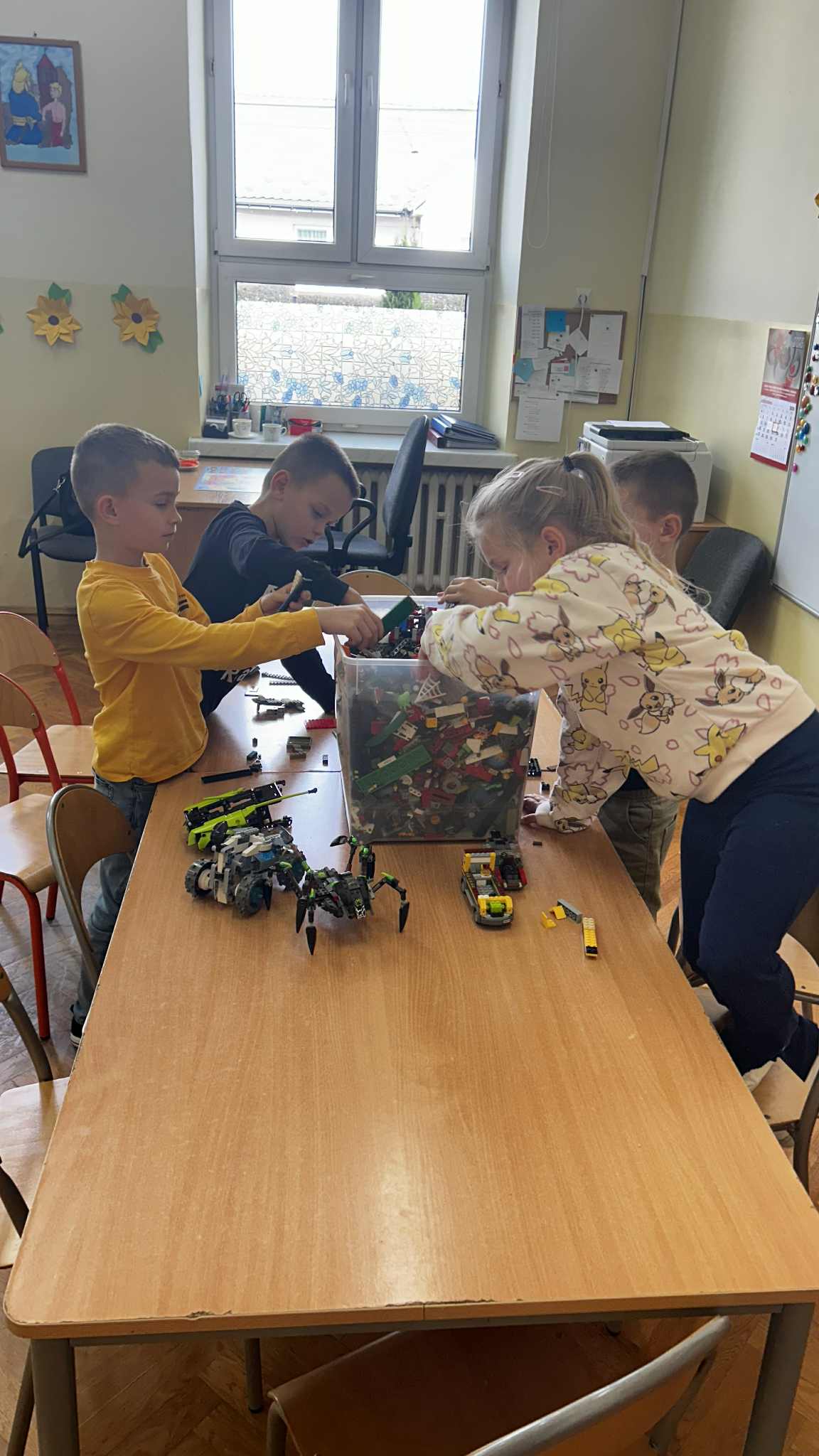 W ramach realizowanej na świetlicy szkolnej innowacji pedagogicznej „Młodzi konstruktorzy” zorganizowano kreatywny konkurs pod hasłem „Domek z klocków LEGO”. Celem inicjatywy było rozwijanie wyobraźni przestrzennej, zdolności manualnych, umiejętności planowania oraz współpracy w grupie. Uczniowie mieli za zadanie zaprojektować i zbudować domek według własnego pomysłu, wykorzystując dostępne zestawy klocków LEGO. Powstałe budowle zachwycały pomysłowością, starannością wykonania i różnorodnością form. Podczas konkursu panowała twórcza atmosfera, a uczestnicy wykazali się dużym zaangażowaniem i kreatywnością. Wszyscy uczestnicy otrzymali pamiątkowe dyplomy i słodki upominek. Tego typu działania nie tylko rozwijają zdolności konstrukcyjne dzieci, ale także uczą współpracy, cierpliwości i wiary we własne możliwości.