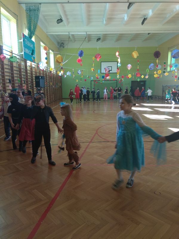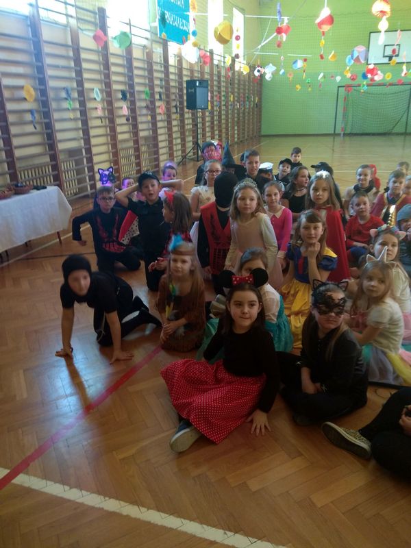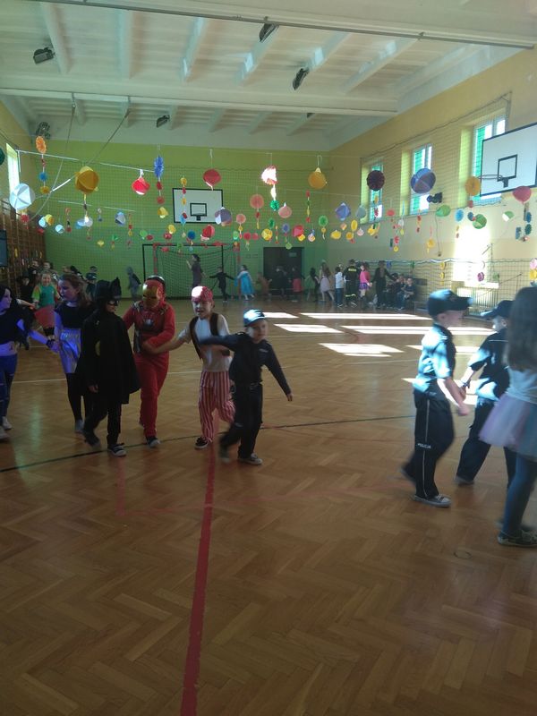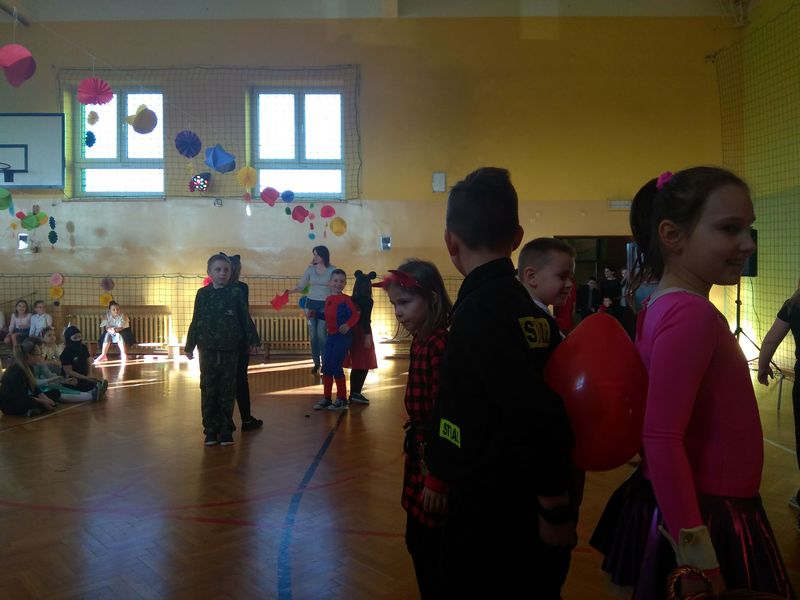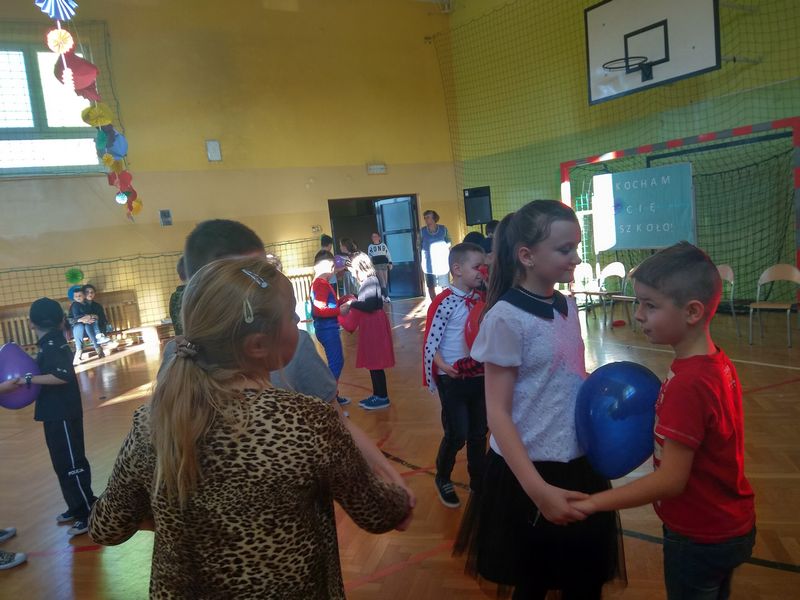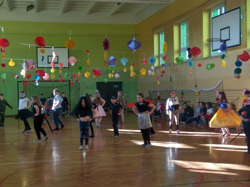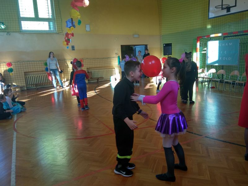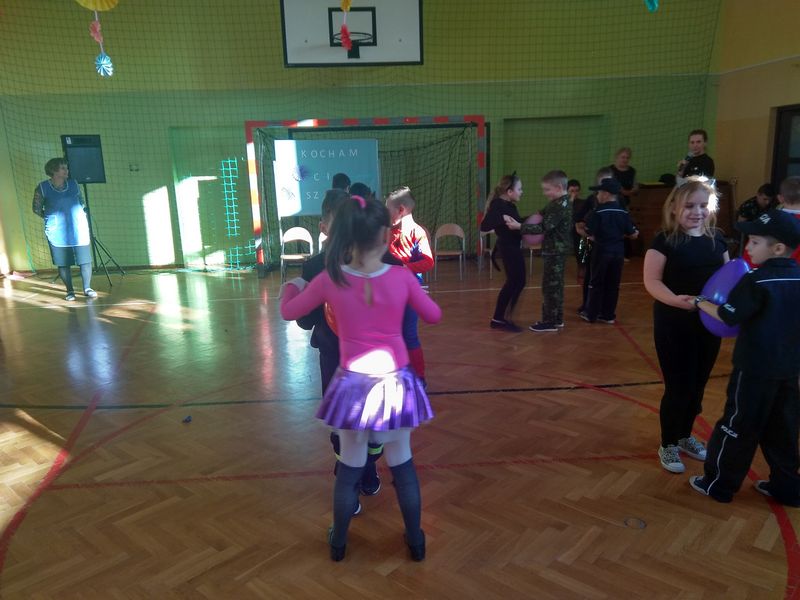 W dniu 7 lutego 2019 r. w naszej szkole odbyła się zabawa karnawałowa. Najwcześniej tańce rozpoczęły dzieci z klas młodszych. Wspaniale prezentowały się w swoich kostiumach nie tylko podczas wspólnych zabaw, ale także w trakcie konkursu na najciekawszy strój. Jury pod przewodnictwem pani dyrektor Barbary Kondziołki wyróżniło w tej kategorii 5 uczniów, którzy otrzymali słodkie nagrody. Dzieci brały również udział w konkurencji tanecznej z balonami. Ich starsi koledzy rywalizowali natomiast w specjalnym wydaniu „Kocham Cię szkoło” w kategorii „polszczyzna”. Przedstawiciele danej klasy musieli w jak najkrótszym czasie odgadnąć zagadkę i jej rozwiązanie ułożyć z liter, które mieli umieszczone na kamizelkach. W tym konkursie zwyciężyła klasa VII, drugie miejsce zajęła klasa Vb, a trzecia lokata przypadła klasie III b gimnazjum. Wszyscy uczestnicy otrzymali słodkie nagrody. Na bawiących się uczniów czekały również przygotowane przez rodziców ciasta, pizza oraz inne przekąski.