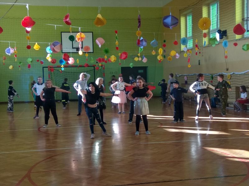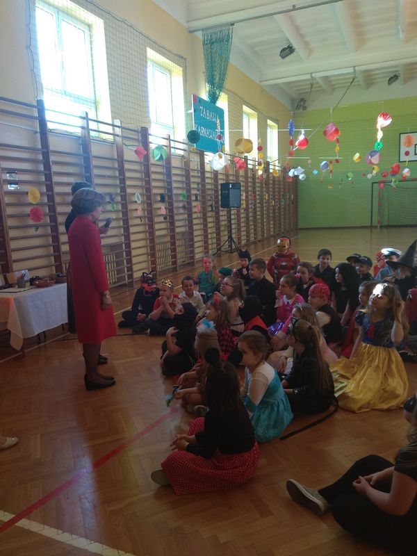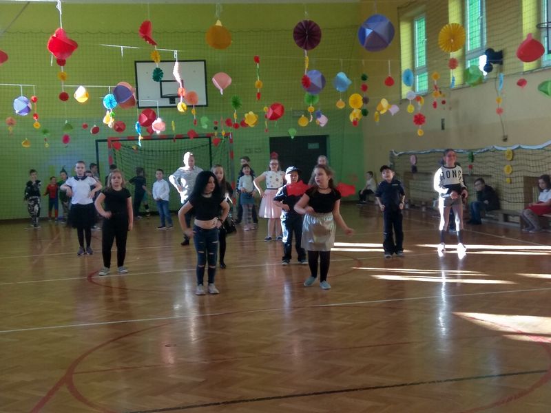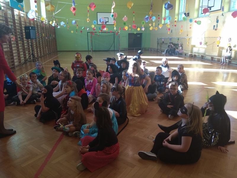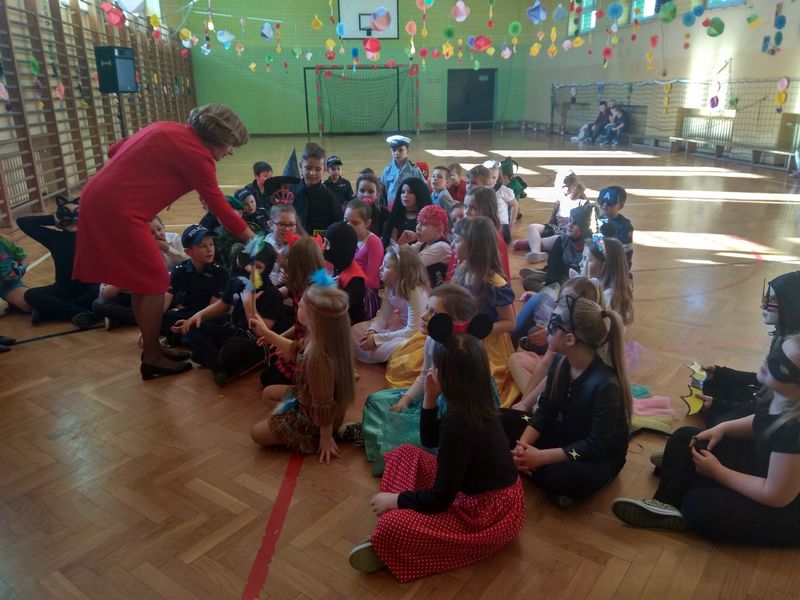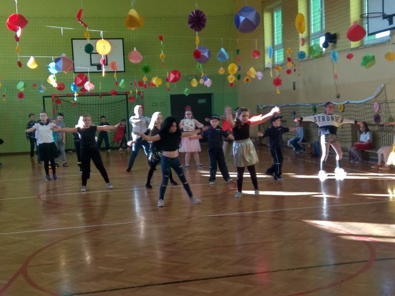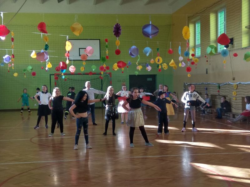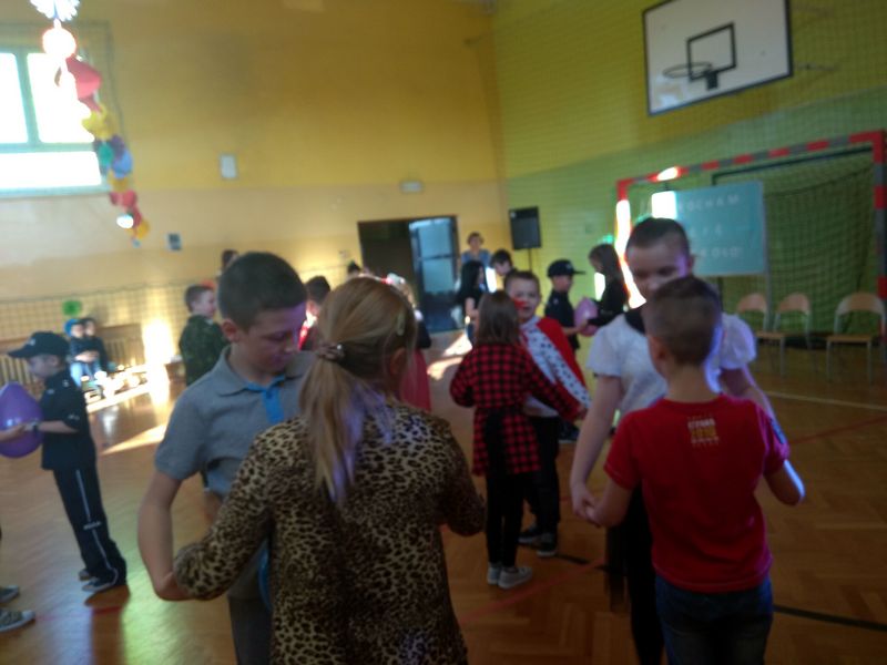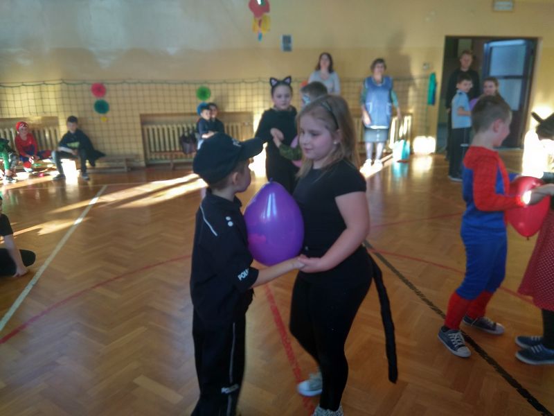 W dniu 7 lutego 2019 r. w naszej szkole odbyła się zabawa karnawałowa. Najwcześniej tańce rozpoczęły dzieci z klas młodszych. Wspaniale prezentowały się w swoich kostiumach nie tylko podczas wspólnych zabaw, ale także w trakcie konkursu na najciekawszy strój. Jury pod przewodnictwem pani dyrektor Barbary Kondziołki wyróżniło w tej kategorii 5 uczniów, którzy otrzymali słodkie nagrody. Dzieci brały również udział w konkurencji tanecznej z balonami. Ich starsi koledzy rywalizowali natomiast w specjalnym wydaniu „Kocham Cię szkoło” w kategorii „polszczyzna”. Przedstawiciele danej klasy musieli w jak najkrótszym czasie odgadnąć zagadkę i jej rozwiązanie ułożyć z liter, które mieli umieszczone na kamizelkach. W tym konkursie zwyciężyła klasa VII, drugie miejsce zajęła klasa Vb, a trzecia lokata przypadła klasie III b gimnazjum. Wszyscy uczestnicy otrzymali słodkie nagrody. Na bawiących się uczniów czekały również przygotowane przez rodziców ciasta, pizza oraz inne przekąski.