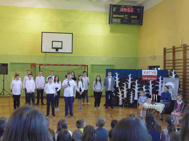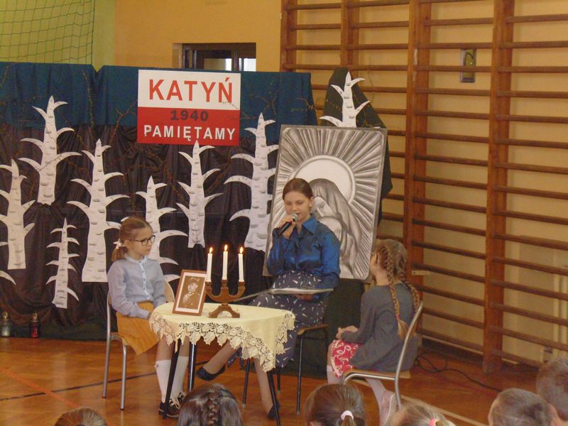 5 kwietnia 2019 r. w naszej szkole odbył się uroczysty apel z okazji 79. rocznicy zbrodni katyńskiej przygotowany przez uczniów klas VI i VII. Obok przypomnianych faktów historycznych pojawiły się fragmenty poezji i pieśni patriotycznych będące wyrazem pamięci o zamordowanych w 1940 r. ponad 21 tys. Polaków, w tym elity wojska i policji.