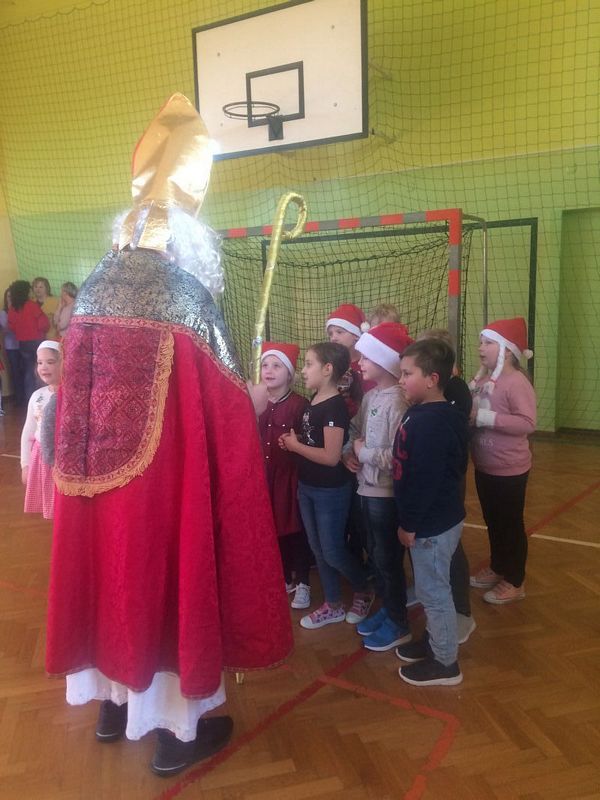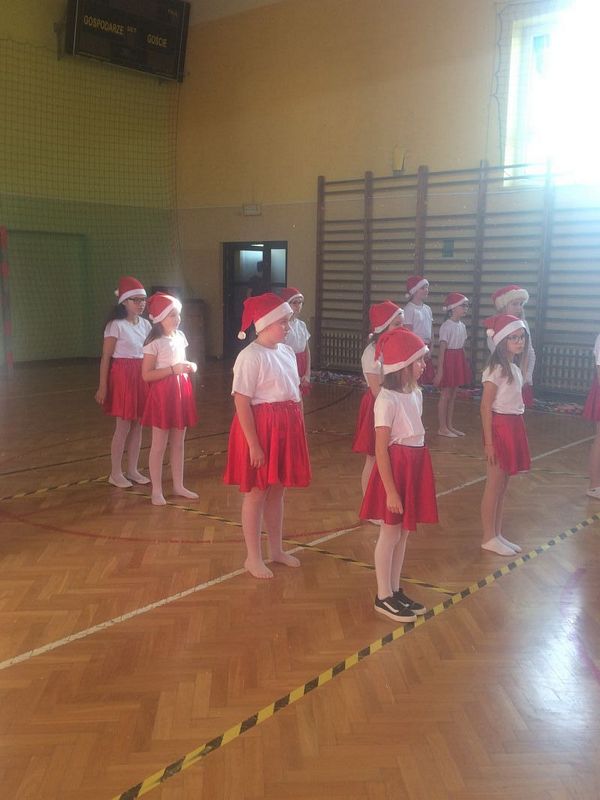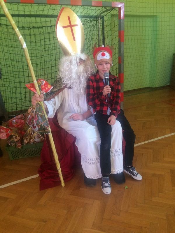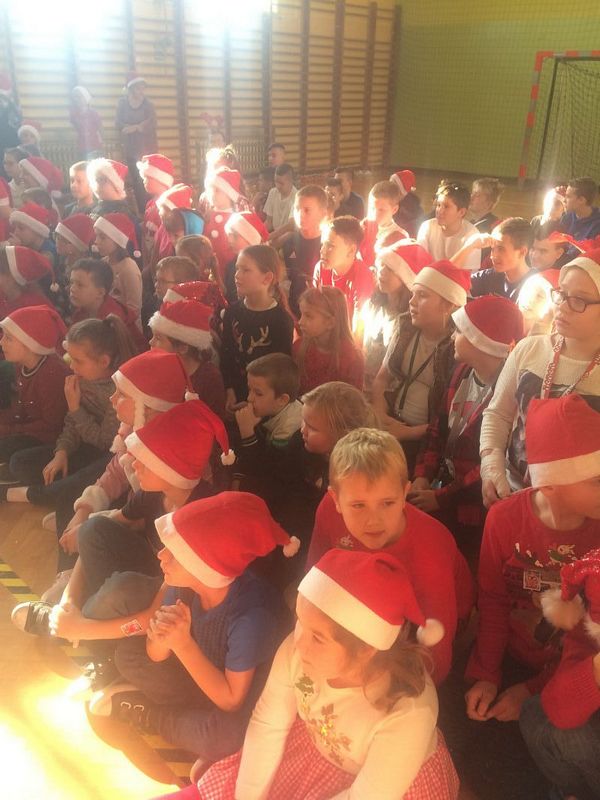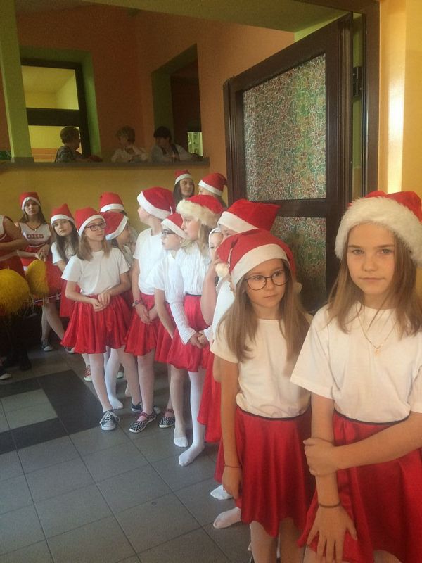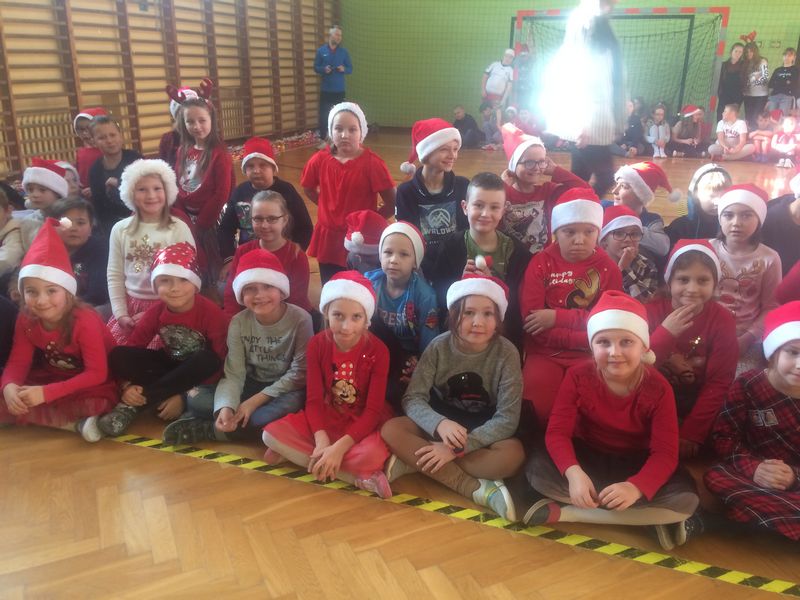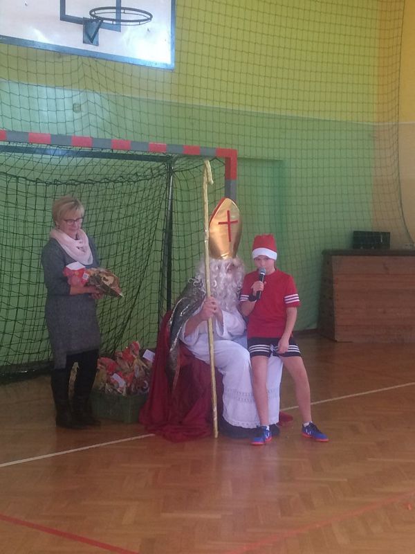 6 grudnia w naszej szkole odbył się coroczny Sportowy Turniej Mikołajkowy. Uczniowie klas IV- VIII rywalizowali w dwóch konkurencjach: wykonanie najdłuższego łańcucha świątecznego i rozegranie turnieju piłki nożnej. Po podsumowaniu wyników na salę zeszły najmłodsze klasy i wszyscy oczekiwali nadejścia św. Mikołaja. Nasz dostojny Gość został powitany świątecznymi tańcami przez szkolny zespół cheerleaderek. Wszystkie klasy zostały obdarowane słodkimi prezentami i tym miłym akcentem zakończyły się obchody mikołajek w naszej szkole.