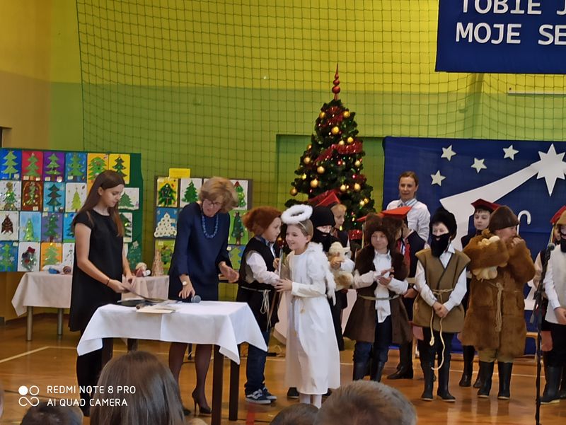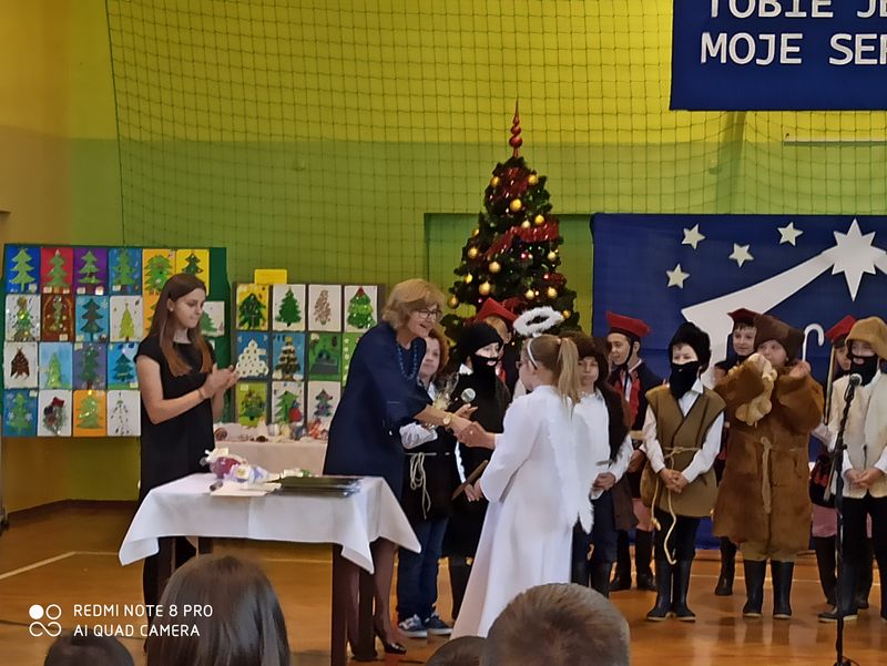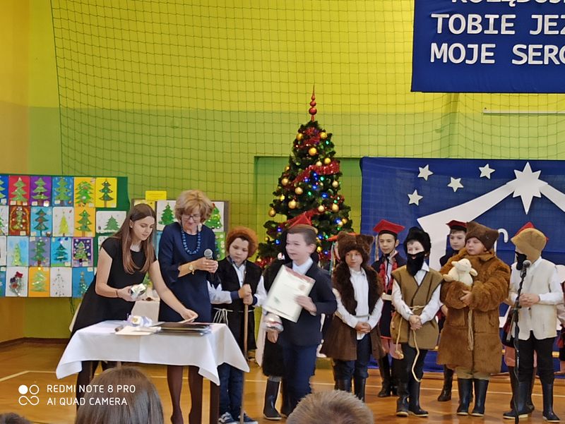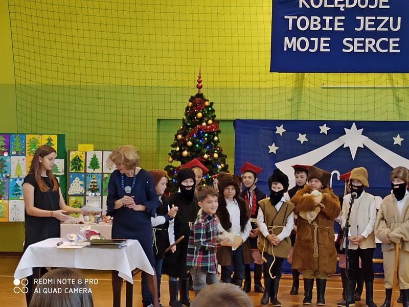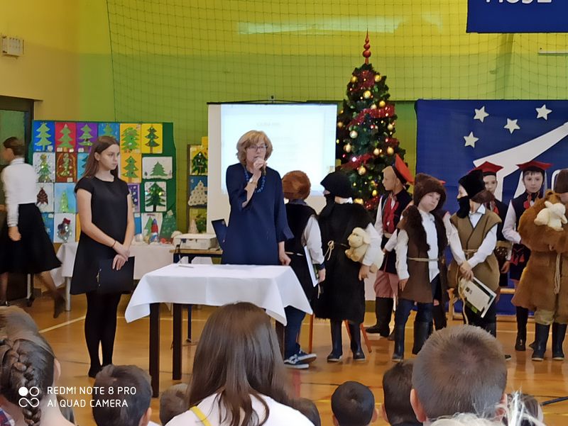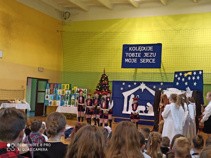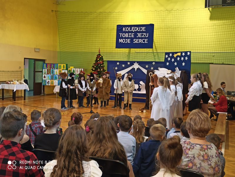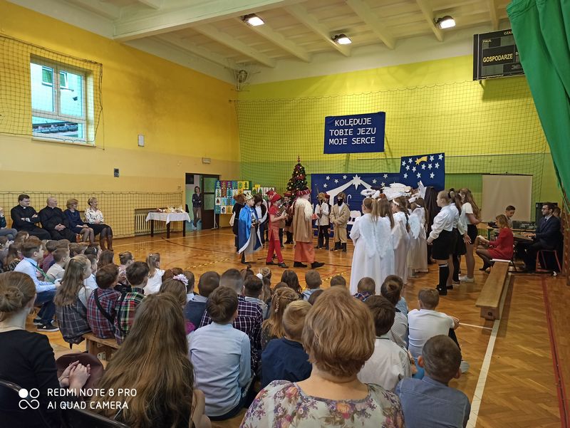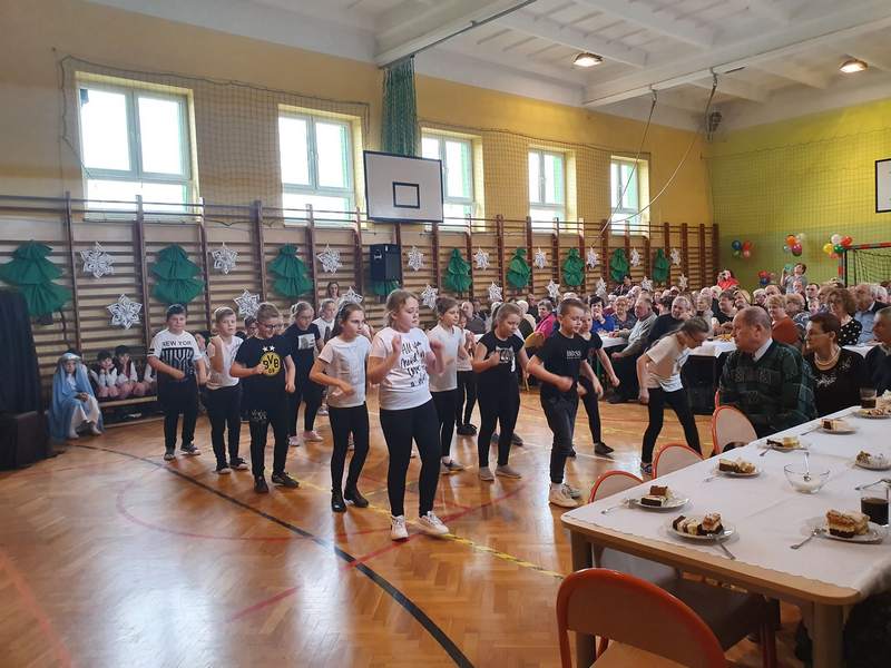 20 grudnia 2019 r. w naszej szkole odbyło się uroczyste spotkanie świąteczne, podczas którego zostało zaprezentowane widowisko o tematyce bożonarodzeniowej. Główne role odegrali w nim uczniowie klas IIIa i IIIb. Ubrani w przepiękne stroje przypomnieli historię związaną z przyjściem na świat Jezusa i zaśpiewali najpiękniejsze kolędy. Jasełka zakończyła pastorałka „Biegną mali pastuszkowie”. Następnie pani Dyrektor złożyła wszystkim życzenia świąteczne, po czym zebrani na sali uczniowie i nauczyciele odśpiewali kilka kolęd przy akompaniamencie pana Jakuba Kądziołki. Po zakończeniu spotkania odbyły się wigilie klasowe. Dzień ten był wolny od zajęć dydaktycznych.
