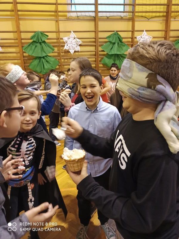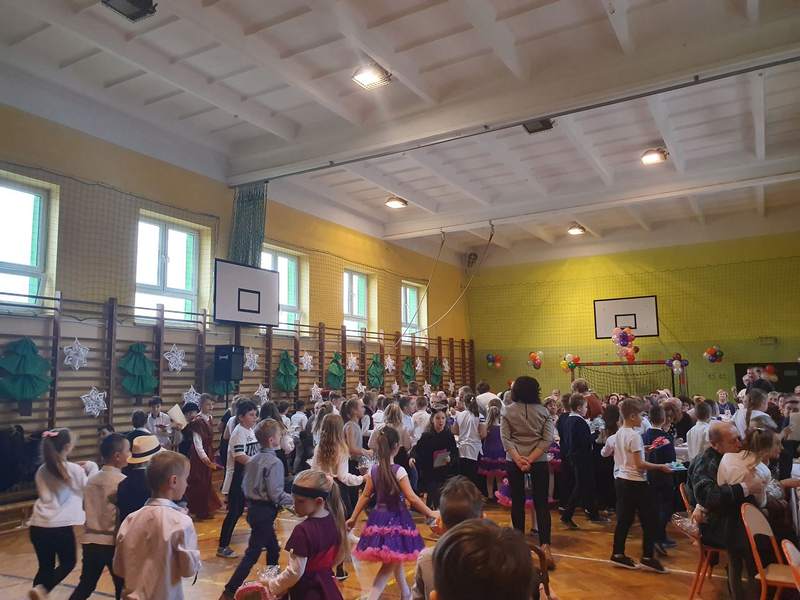 22 stycznia odbyła się w naszej szkole zabawa karnawałowa. Najpierw bawili się uczniowie klas I – III, a następnie ich starsi koledzy z klas IV – VIII. Przedstawiciele poszczególnych klas mogli wziąć udział w różnorodnych konkursach przygotowanych przez Samorząd Uczniowski. Odważni próbowali swych sił w biegu z piłeczką pingpongową, wyścigach w workach czy jedzeniu babeczek z zawiązanymi oczyma. Uczestnicy nagradzani byli słodkimi upominkami. Ciepły poczęstunek zapewniła w ten dzień Rada Rodziców.