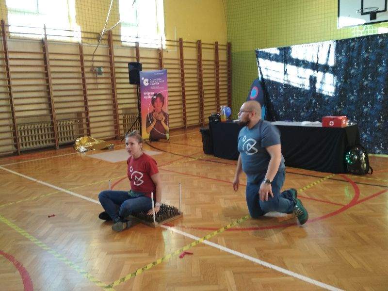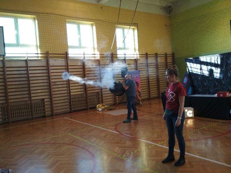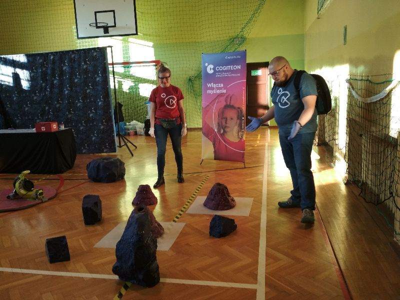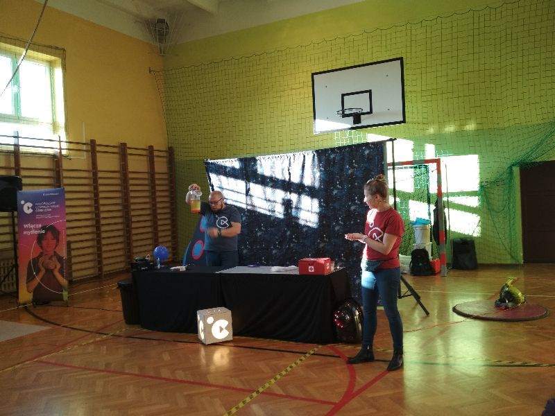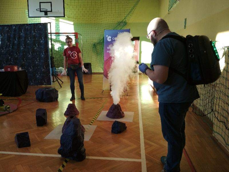14 stycznia naszą szkołę odwiedzili pracownicy Małopolskiego Centrum Nauki Cogiteon w ramach realizowanego przez tę instytucję Mobilnego Projektu Edukacyjnego „NAUKOWIEJ”. Wraz z uczniami szkół Gminy Gnojnik obejrzeliśmy emocjonujący pokaz popularnonaukowy „Wyprawa na inną planetę”. Prowadzący w ciekawy sposób przekazywali wiedzę z chemii, fizyki, biologii i techniki, przeprowadzając efektowne eksperymenty z wykorzystaniem wody utlenionej, oleju czy sody oczyszczonej. Na oczach widzów powstawały, m.in. obwarzanki z dymu, poduszkowce, chemiczna gaśnica i zapalniczka. Warto dodać, że wiele zaprezentowanych doświadczeń można przeprowadzić w warunkach domowych, do czego zachęcali uczniów prowadzący. Wiedza książkowa przekazana w interesujący sposób oraz dużo dobrej zabawy to niewątpliwe atuty tego nietypowego spotkania z nauką.