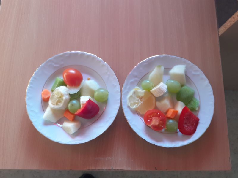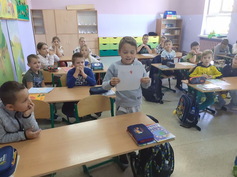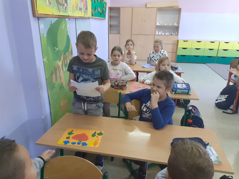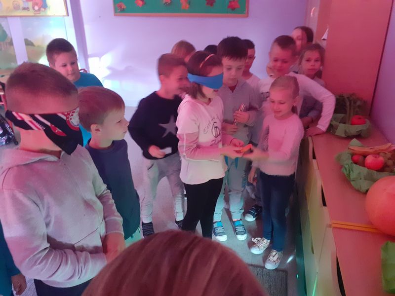 2. Zagadki owocowo-warzywne – uczniowie układali krótkie rymowanki-zagadki o warzywach i owocach. Nauczyciel przydzielił dzieciom warzywo lub owoc, o którym mają ułożyć zagadkę. Drogą głosowania odbył się wybór tej najlepszej. Wszystkie zostały zebrane w klasową księgę zagadek.