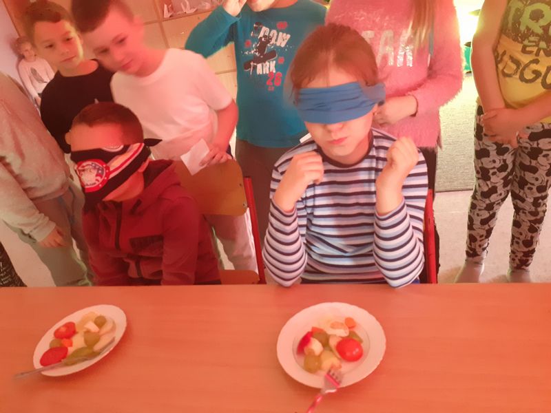 1. „Smacznie – zdrowo – kolorowo”- dzieci uczyły się rozpoznawania owoców i warzyw, badali ich cechy różnymi zmysłami (wzrok, dotyk, smak) oraz zapoznawali się z ich wartością odżywczą. Uczniowie poznali również pięć grup kolorystycznych owoców oraz zaznajomili się z wybranymi witaminami i wskazywali ich wpływ na organizm człowieka. Podsumowaniem było wykonanie złotych medali owocowo-warzywnych.