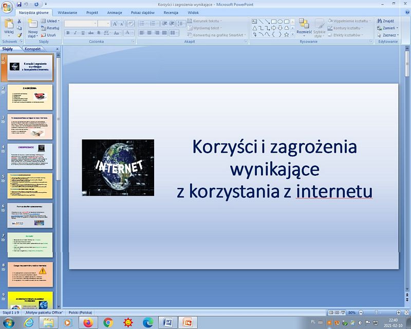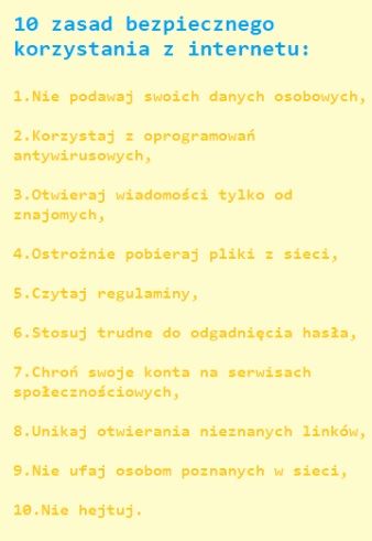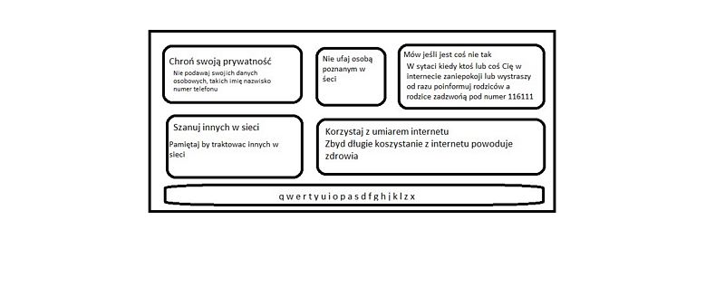 Dzień Bezpiecznego Internetu jest obchodzony w całej Europie w pierwszej połowie lutego. Został ustanowiony z inicjatywy Komisji Europejskiej, aby zwrócić uwagę na kwestię bezpiecznego dostępu dzieci i młodzieży do zasobów internetowych. W tym roku Dzień Bezpiecznego Internetu obchodzony był 9 lutego. Nasza szkoła również włączyła się w tę ważną akcję. Na lekcjach wychowawczych oraz informatyce odbyły się pogadanki, zostały zaprezentowane filmiki i animacje związane z tematyką bezpieczeństwa w sieci. Uczniowie wszystkich klas chętnie włączyli się w tę akcję. Powstało wiele prac, w których uchwycili najważniejsze zasady bezpiecznego korzystania z Internetu. Uczniowie klasy II a oraz III wykonali plakaty w tradycyjnej formie, a uczniowie klas IV–VIII plakaty w programie Paint i Gimp, prezentacje multimedialne oraz animacje w programie Scratch.
