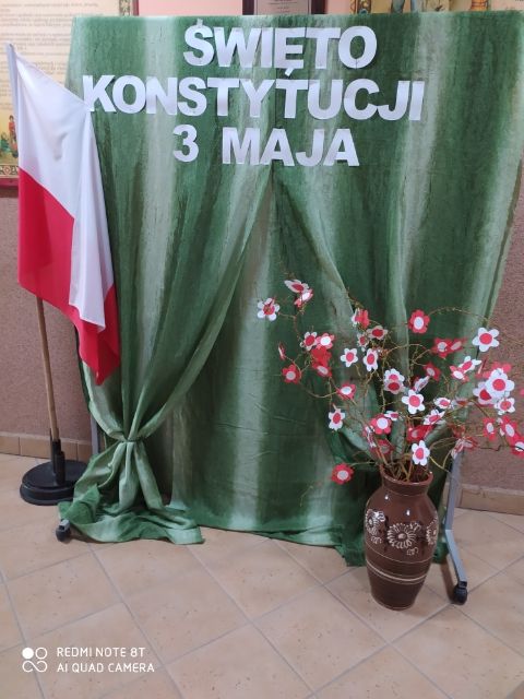 Wychowawcy wszystkich klas przypomnieli uczniom o zbliżającej się rocznicy uchwalenia Konstytucji. Podczas lekcji wychowawczych przedstawili prezentację multimedialną dotyczącą okoliczności uchwalenia w 1791 roku ustawy zasadniczej, której celem miało być uratowanie Rzeczypospolitej przed upadkiem. Prezentacja, dostosowana do wieku odbiorców, została również udostępniona klasom I-III. Młodsi uczniowie, którzy uczęszczali w ostatnim tygodniu do szkoły, zaprezentowali się na tle okolicznościowej dekoracji.