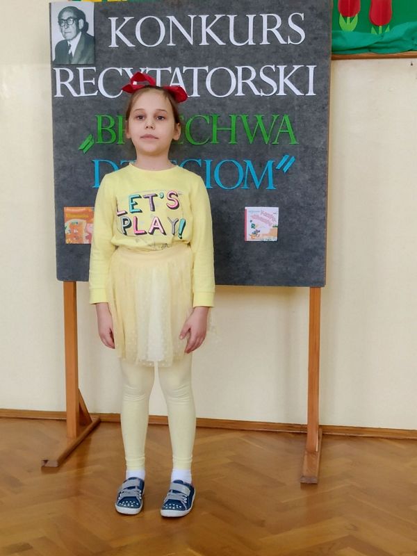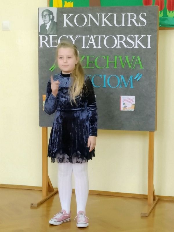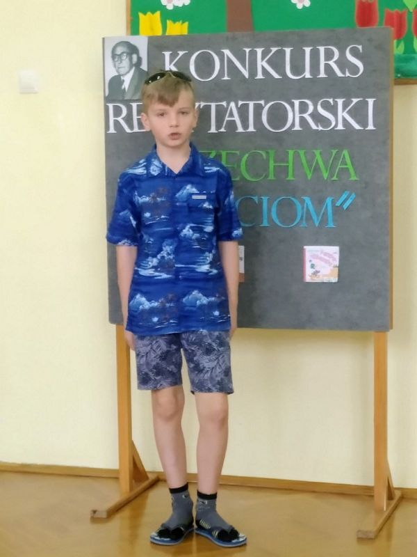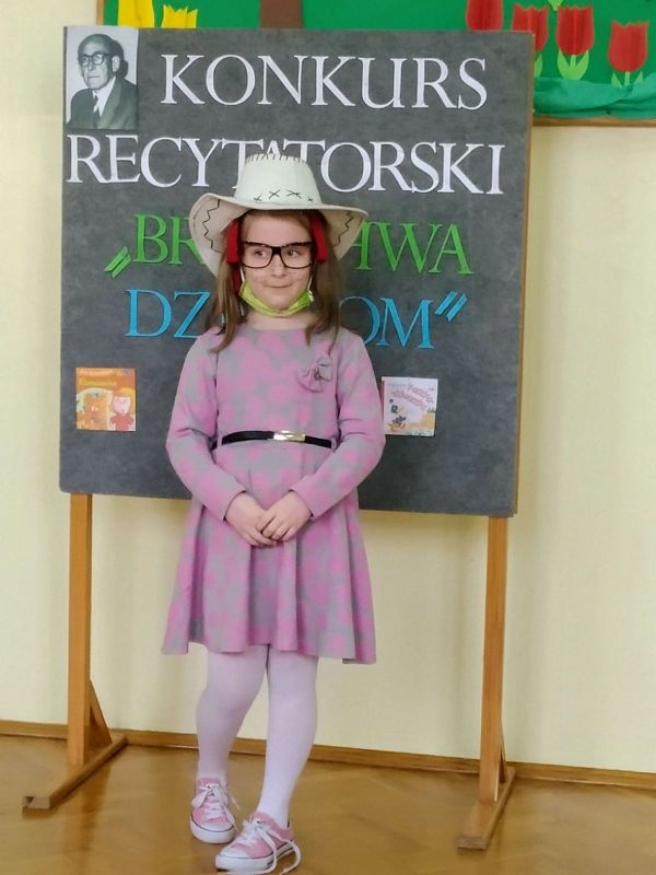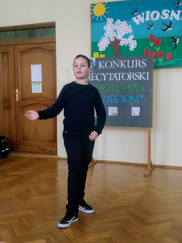 11 marca 2021 r. w naszej szkole odbył się szkolny konkurs recytatorski pod hasłem „Brzechwa dzieciom”. Wzięli w nim udział uczniowie klas I–III. Celem konkursu było zapoznanie z twórczością J. Brzechwy, rozwijanie zainteresowań i talentów dzieci, zachęcanie do występów na scenie, a także pokonywanie nieśmiałości. Uczestnicy zostali wyłonieni podczas eliminacji klasowych. Klasę pierwszą reprezentowali: Laura Mech i Hubert Opoka, klasę 2a: Lena Kostuch i Dawid Dobranowski, klasę 2b: Martyna Grzegórzek i Aleksandra Kukla, klasę 3: Aleksander Kuna oraz Bartłomiej Bednarek.